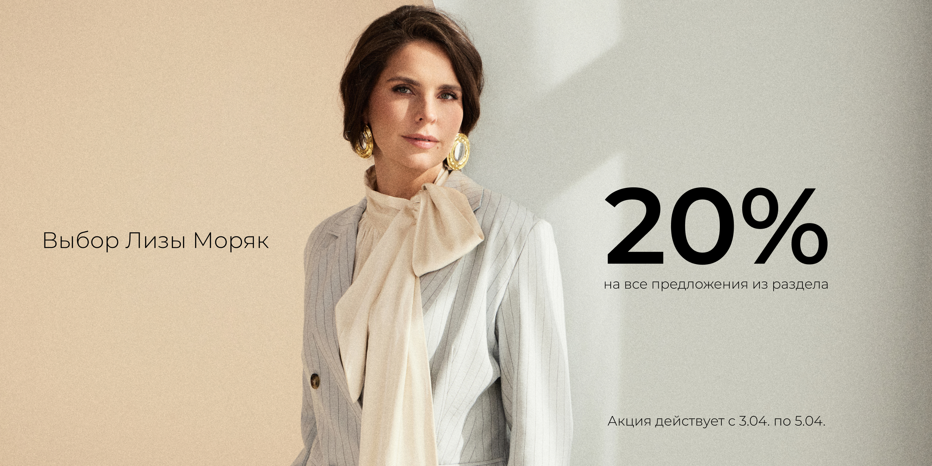 В период с 3 по 5 апреля на все позиции в разделе "Выбор Лизы Моряк" будет действовать дополнительная скидка -20%.