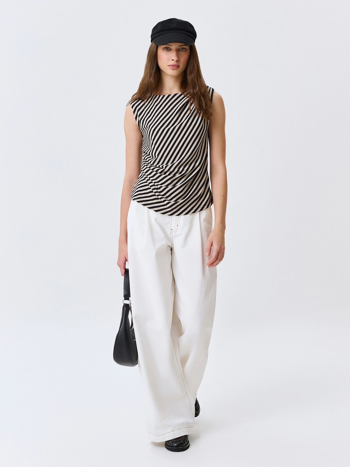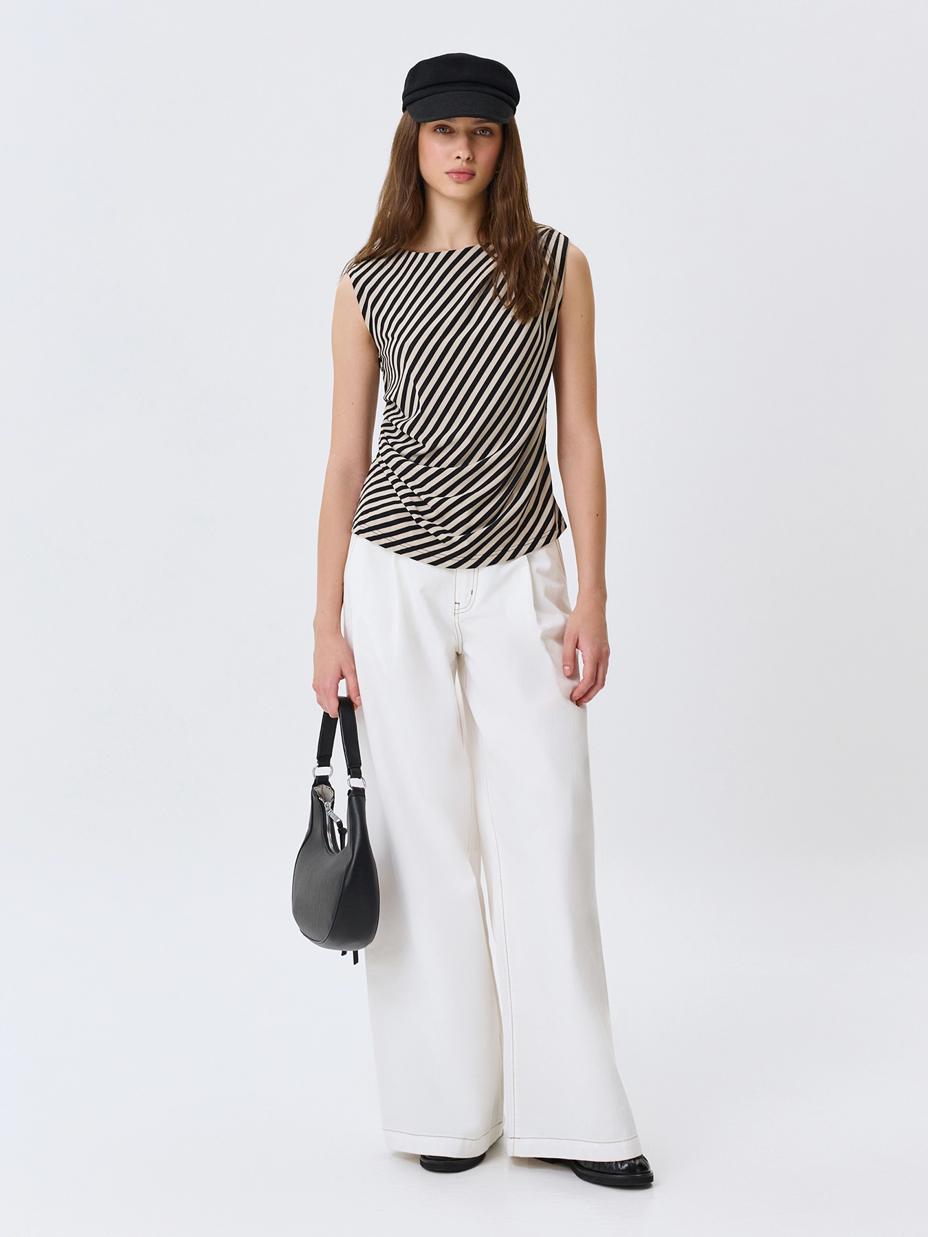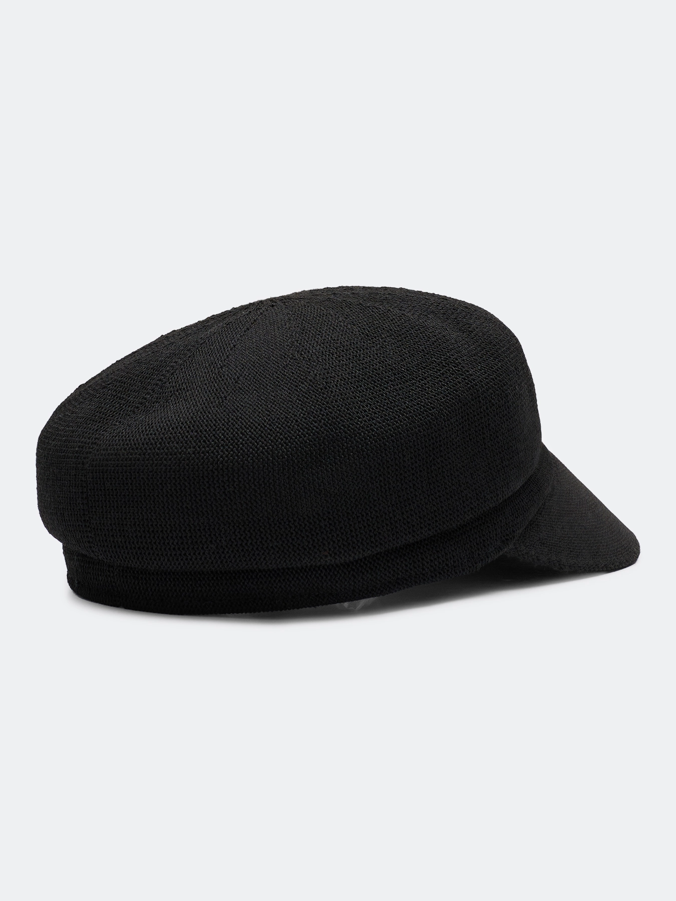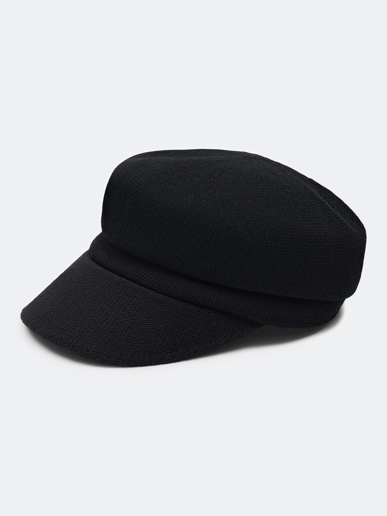 Элегантная вязаная кепи. Широкий изогнутый козырек немного опущен вниз.