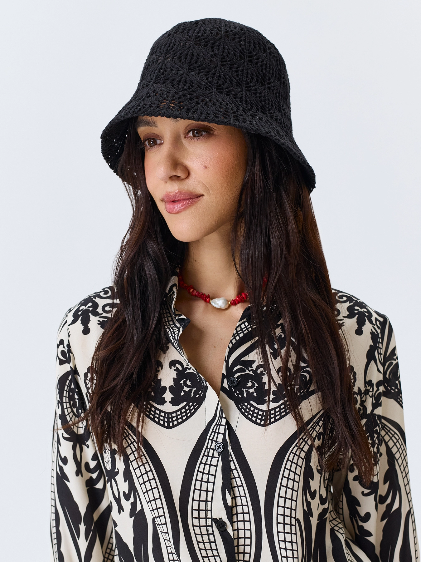 Хлопковая ажурная панама в морском стиле. Закругленная тулья и короткие опущенные поля.