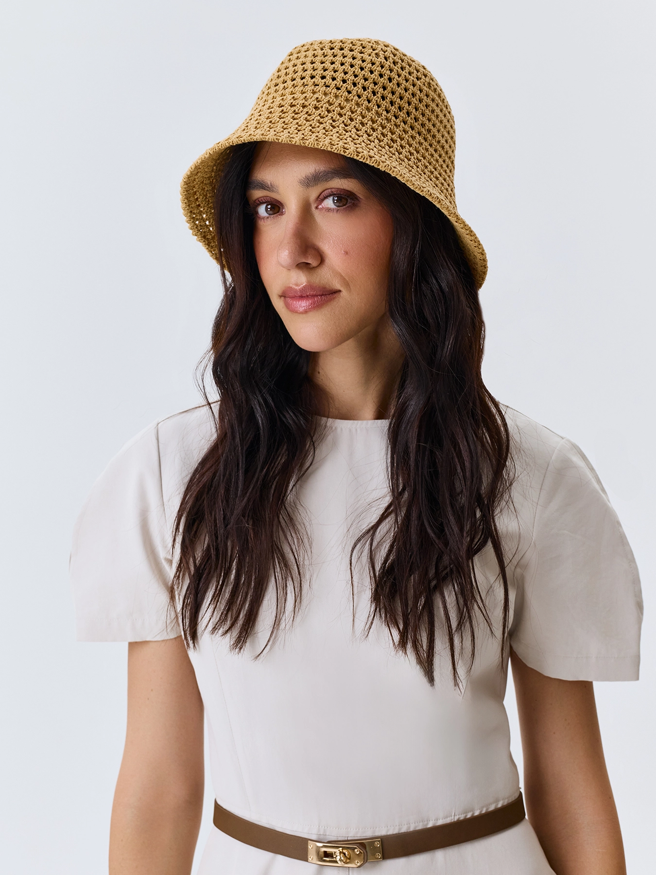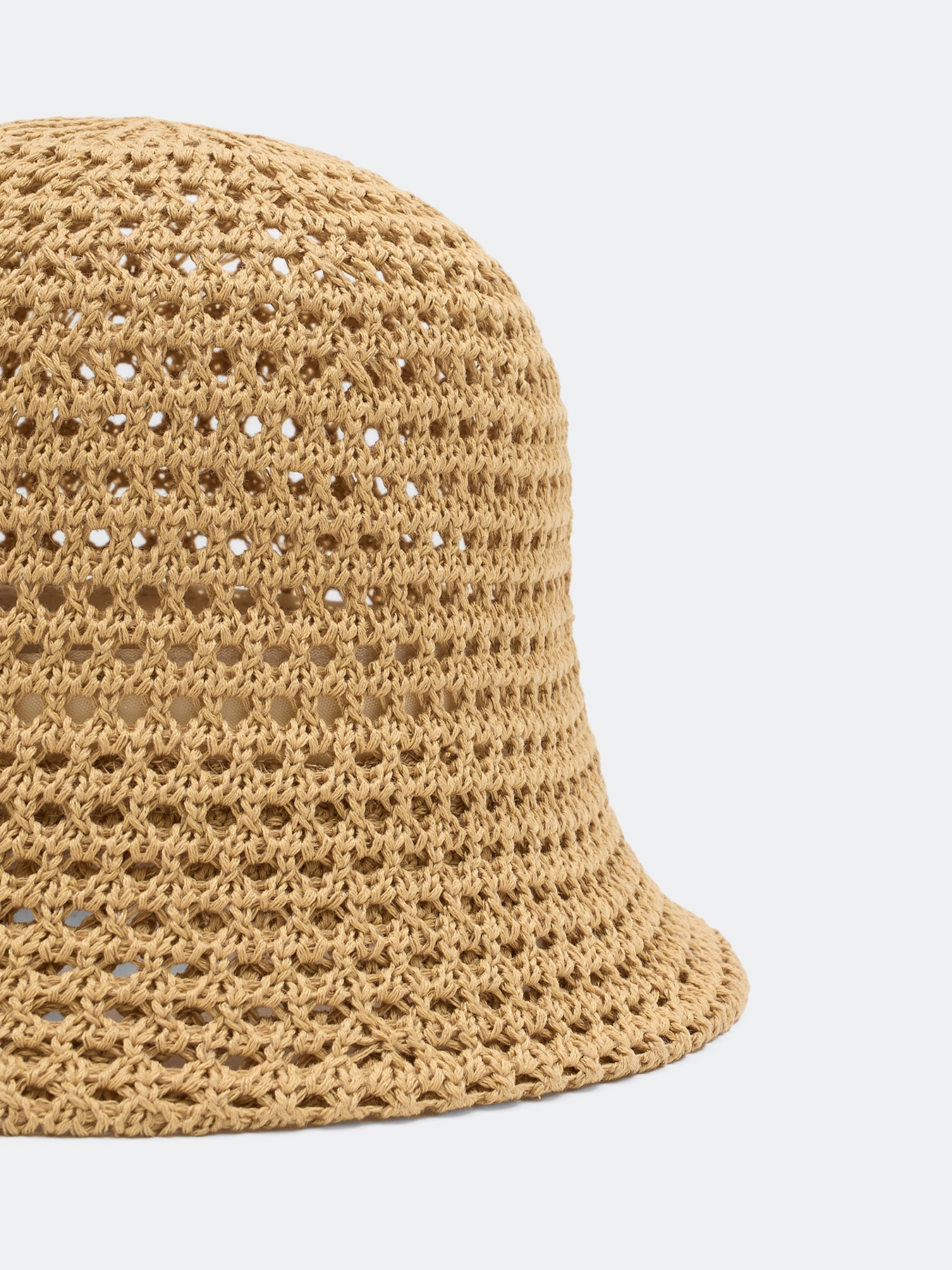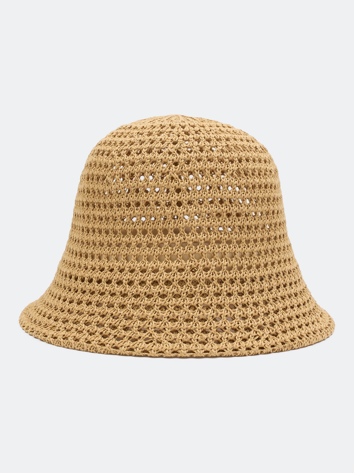 Классическая плетеная панама в морском стиле. Закругленная тулья и короткие опущенные поля.