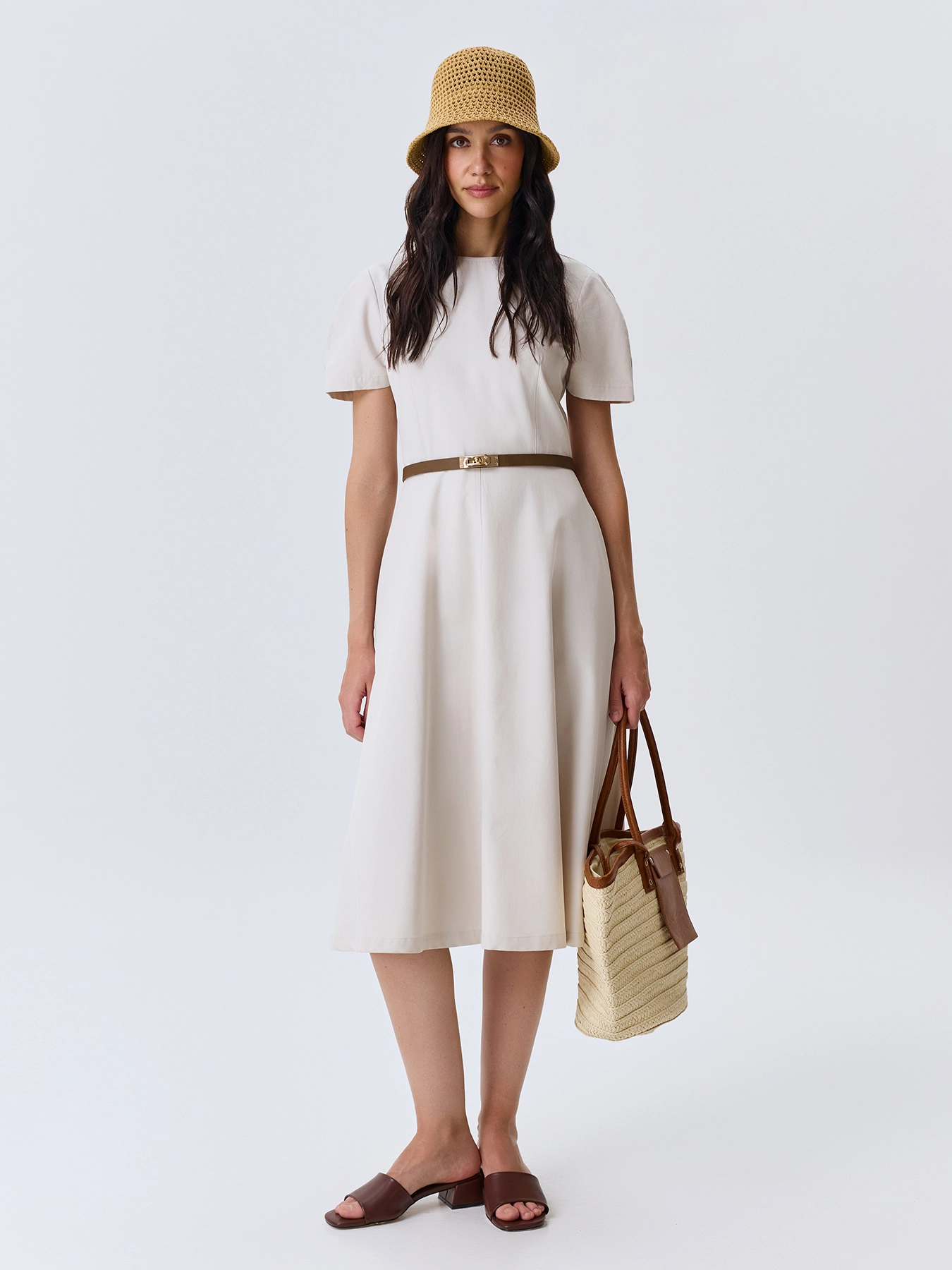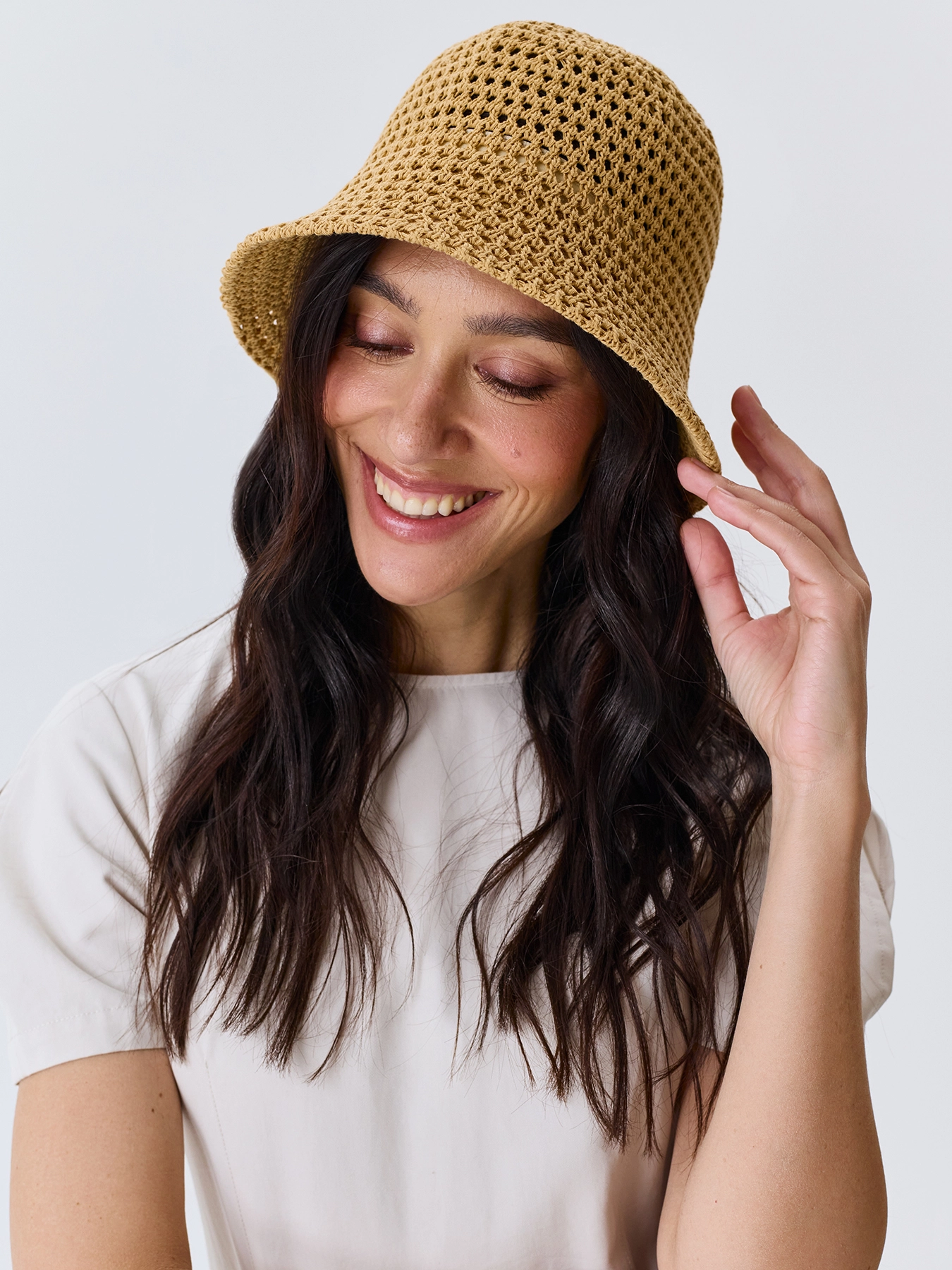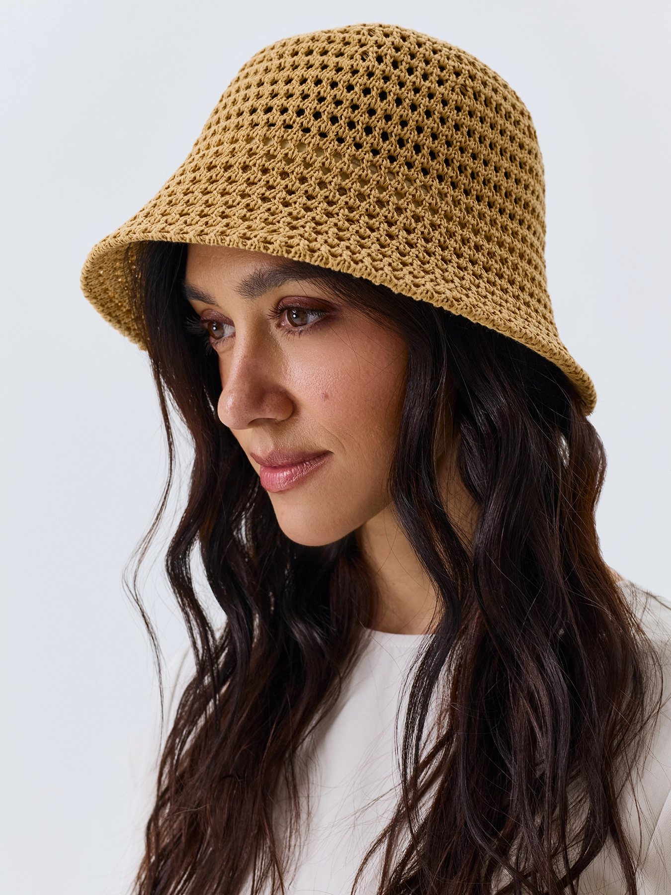 Классическая плетеная панама в морском стиле. Закругленная тулья и короткие опущенные поля.