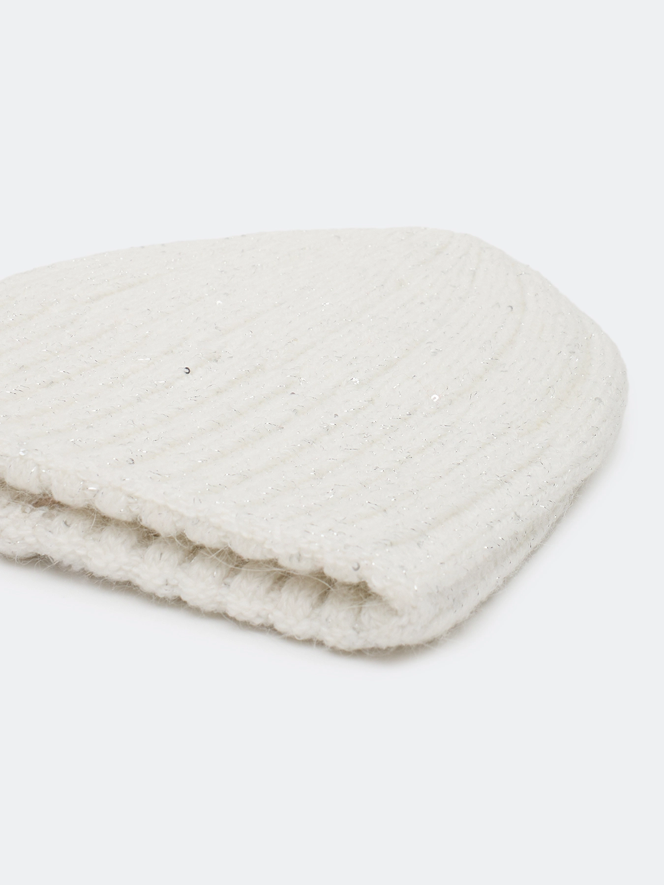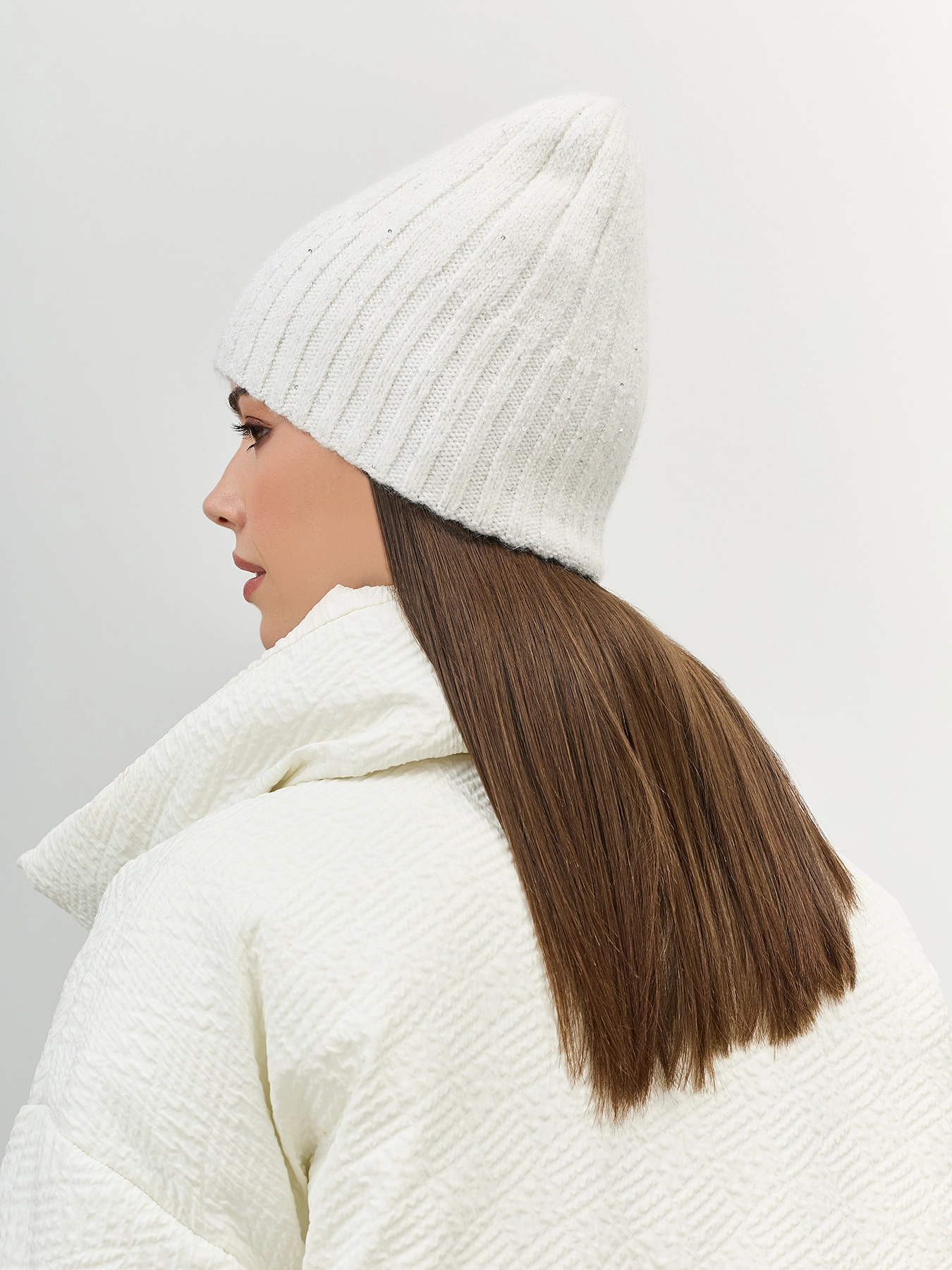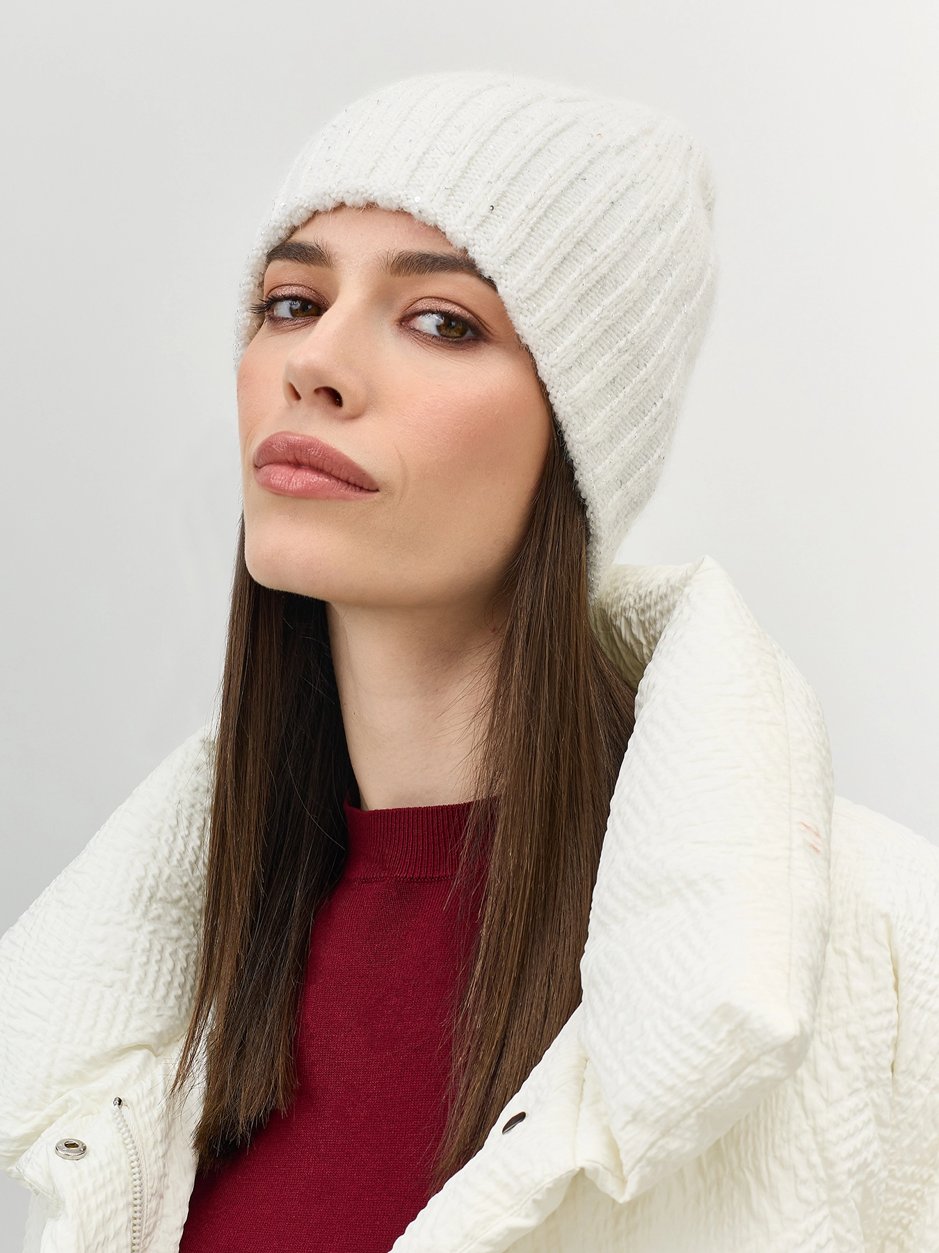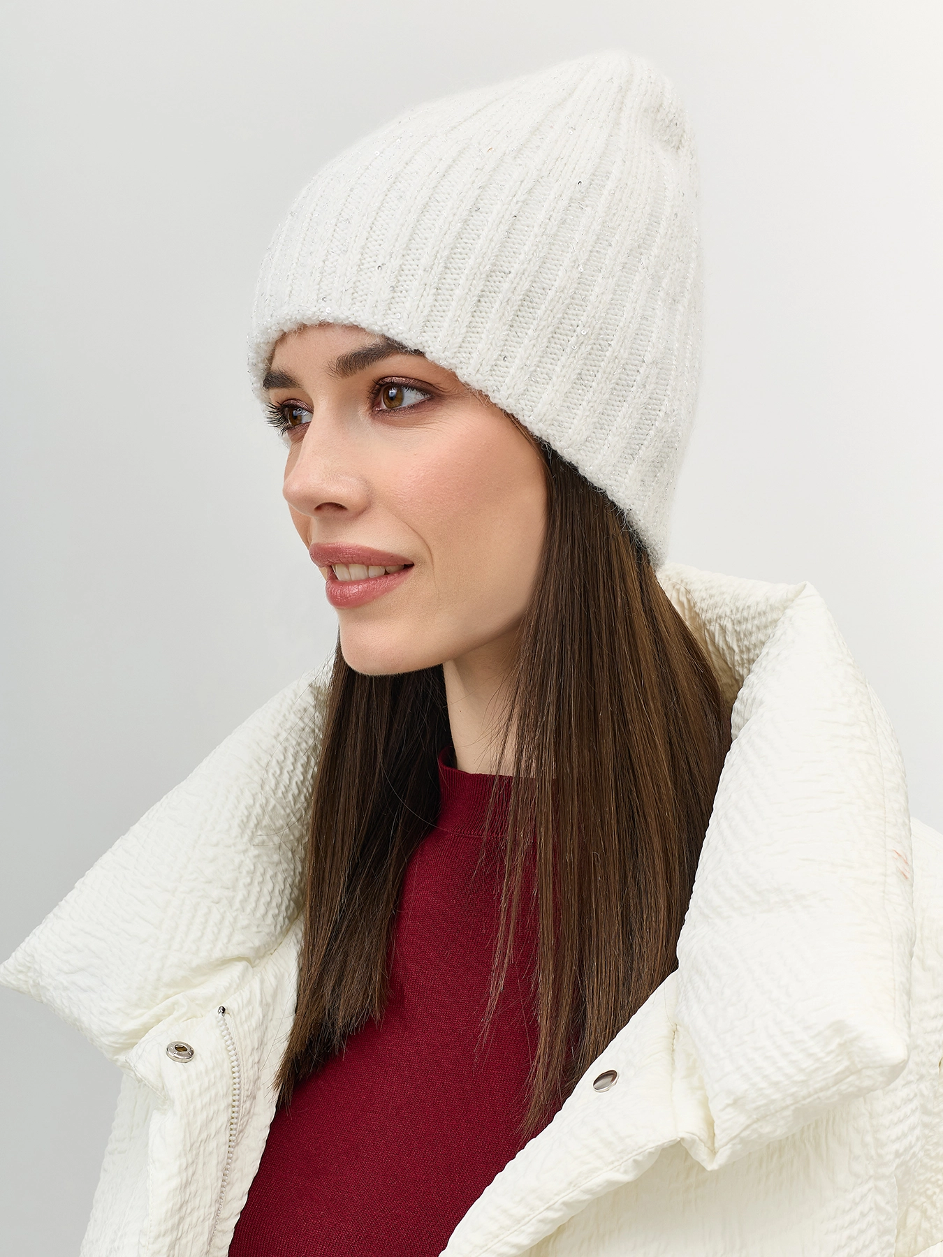 Шапка бини в широкий рубчик с ангорой вискозой в составе. Широкий риб-манжета.