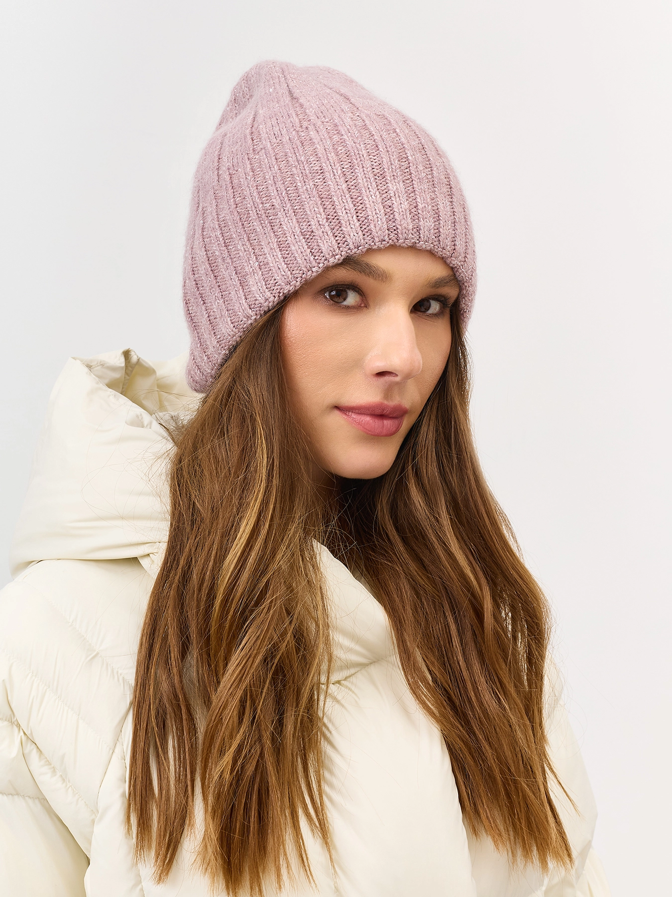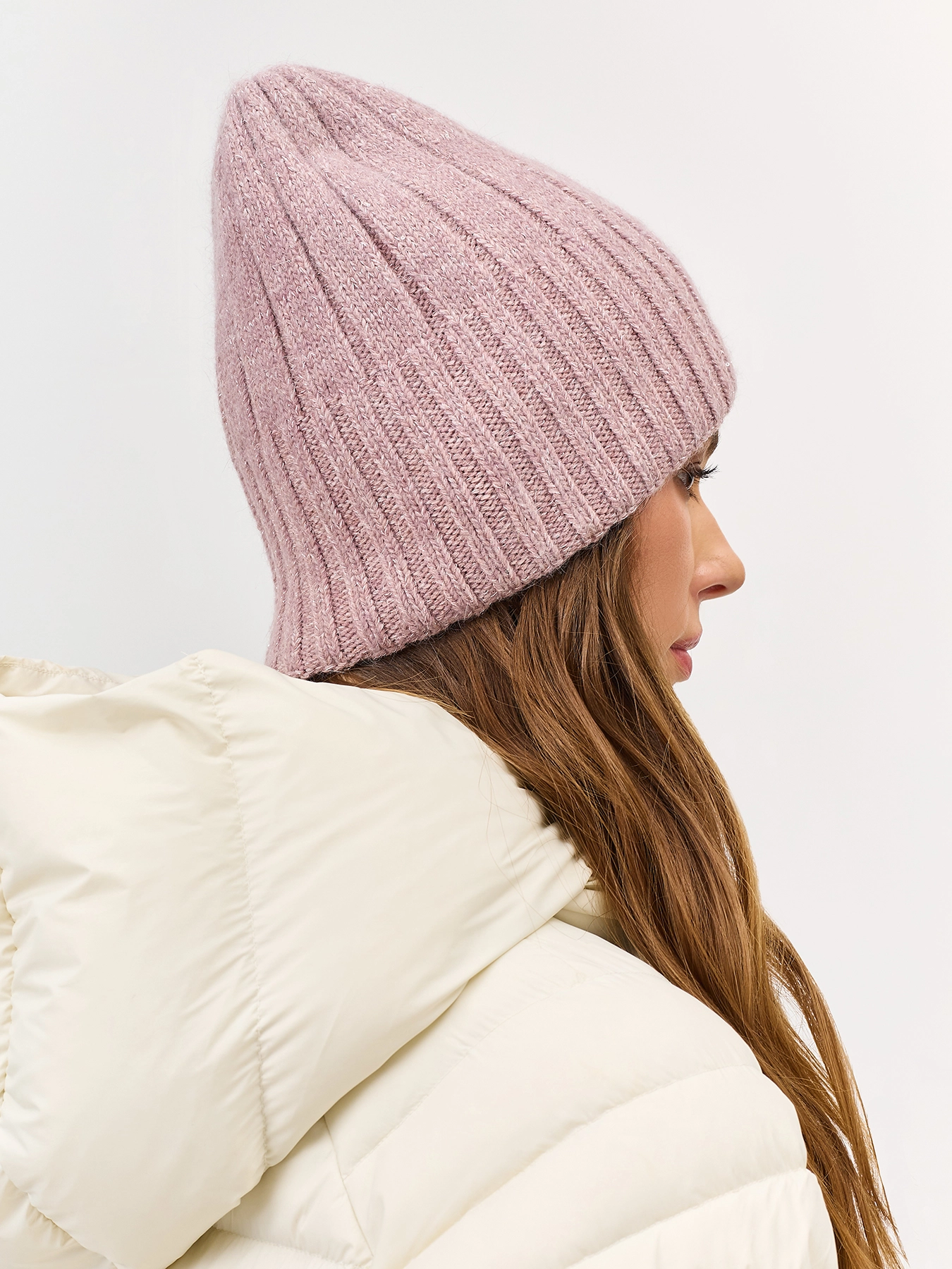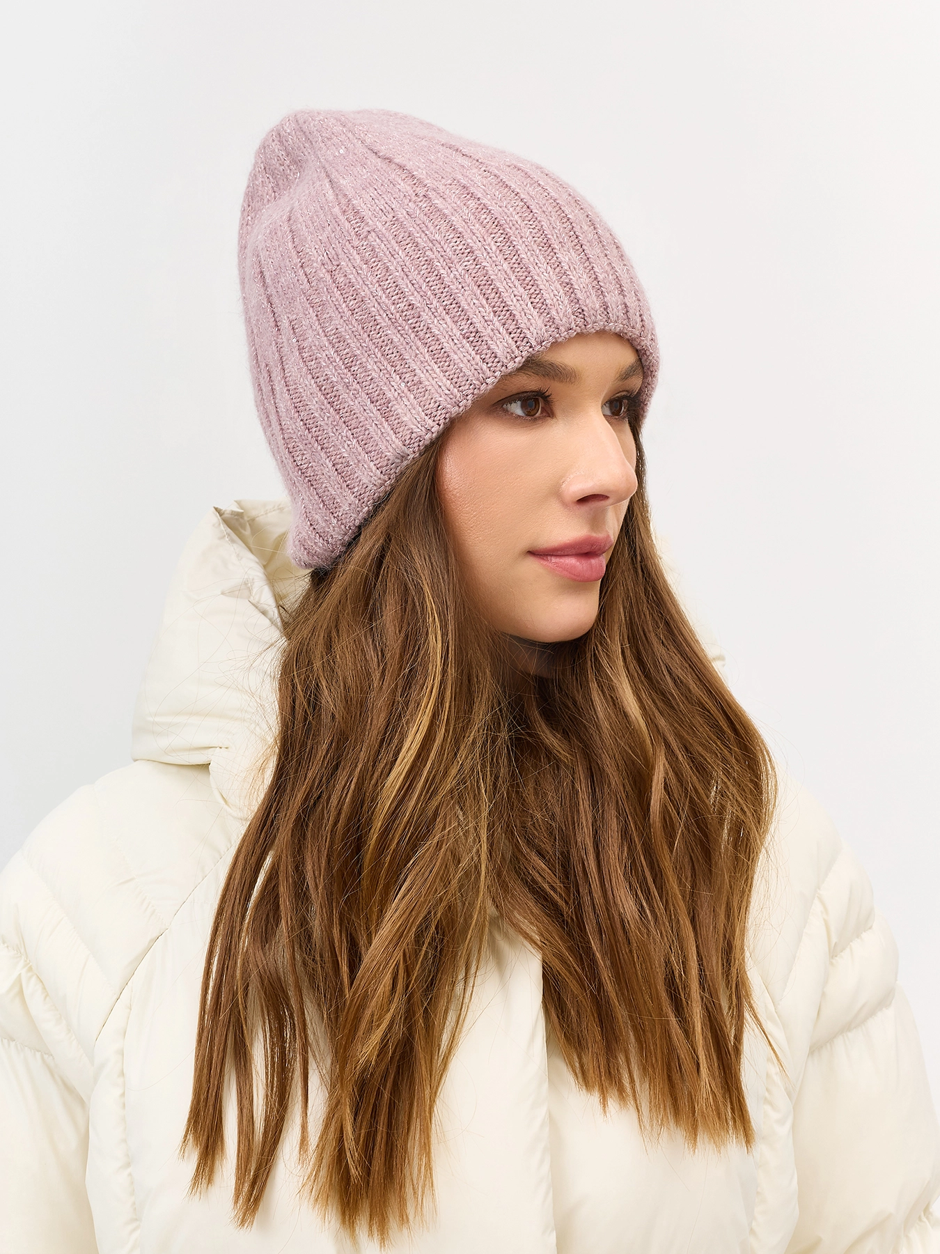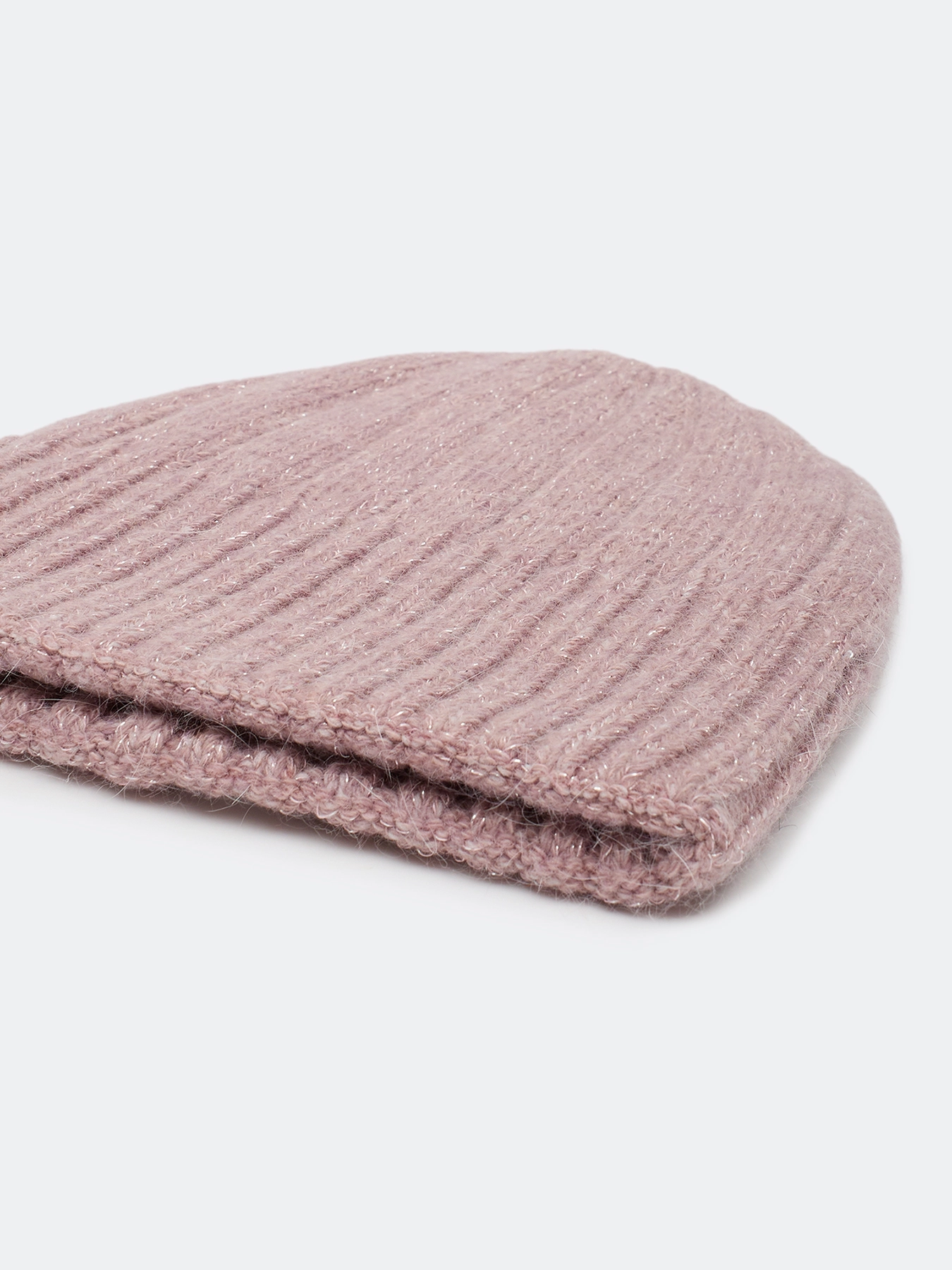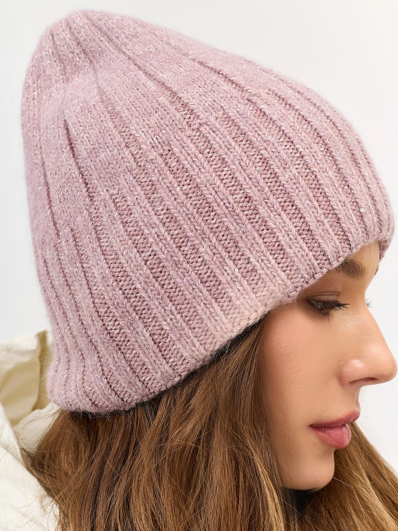 Шапка бини в широкий рубчик с ангорой вискозой в составе. Широкий риб-манжета.