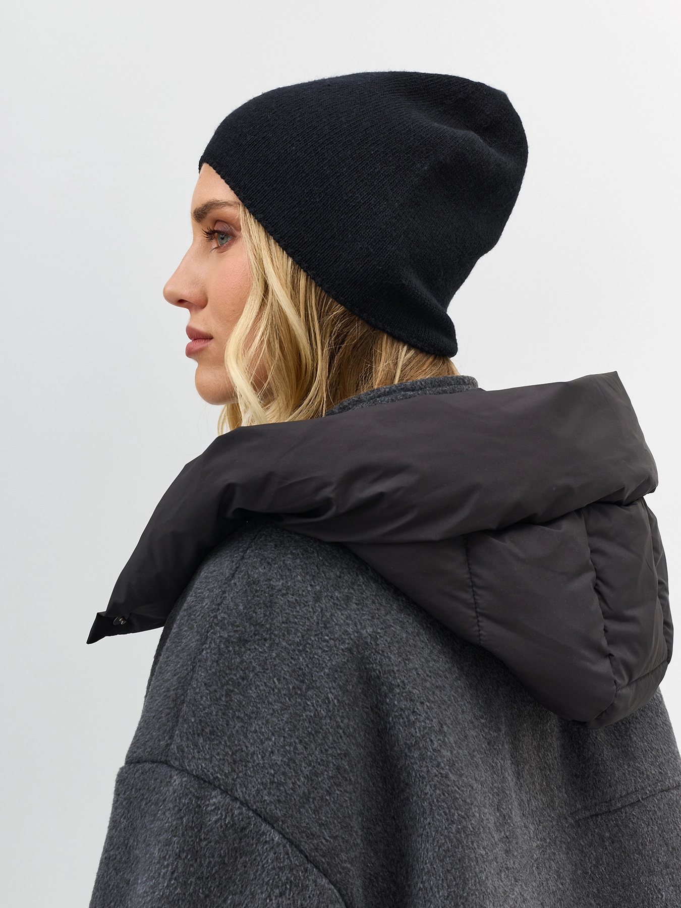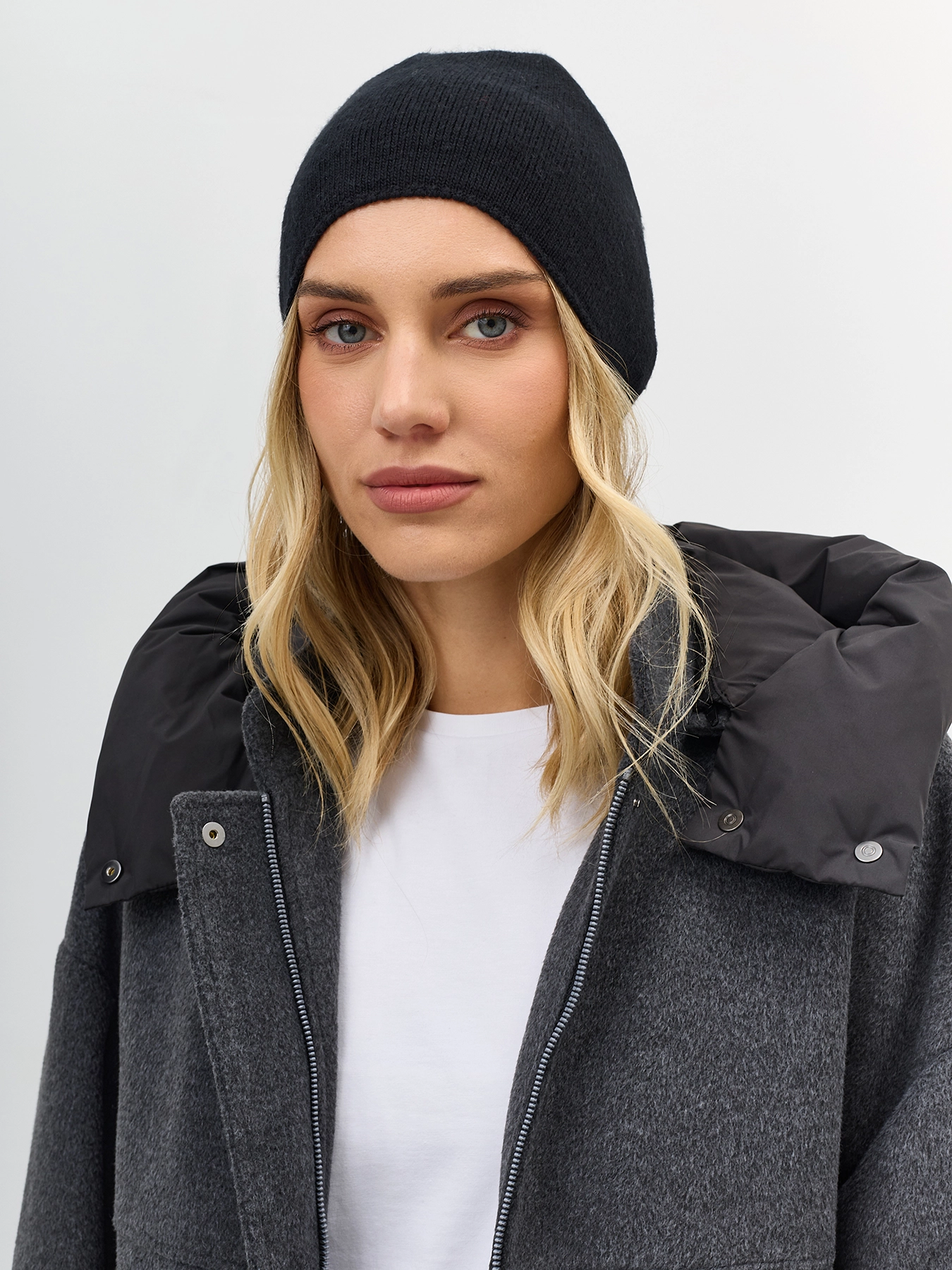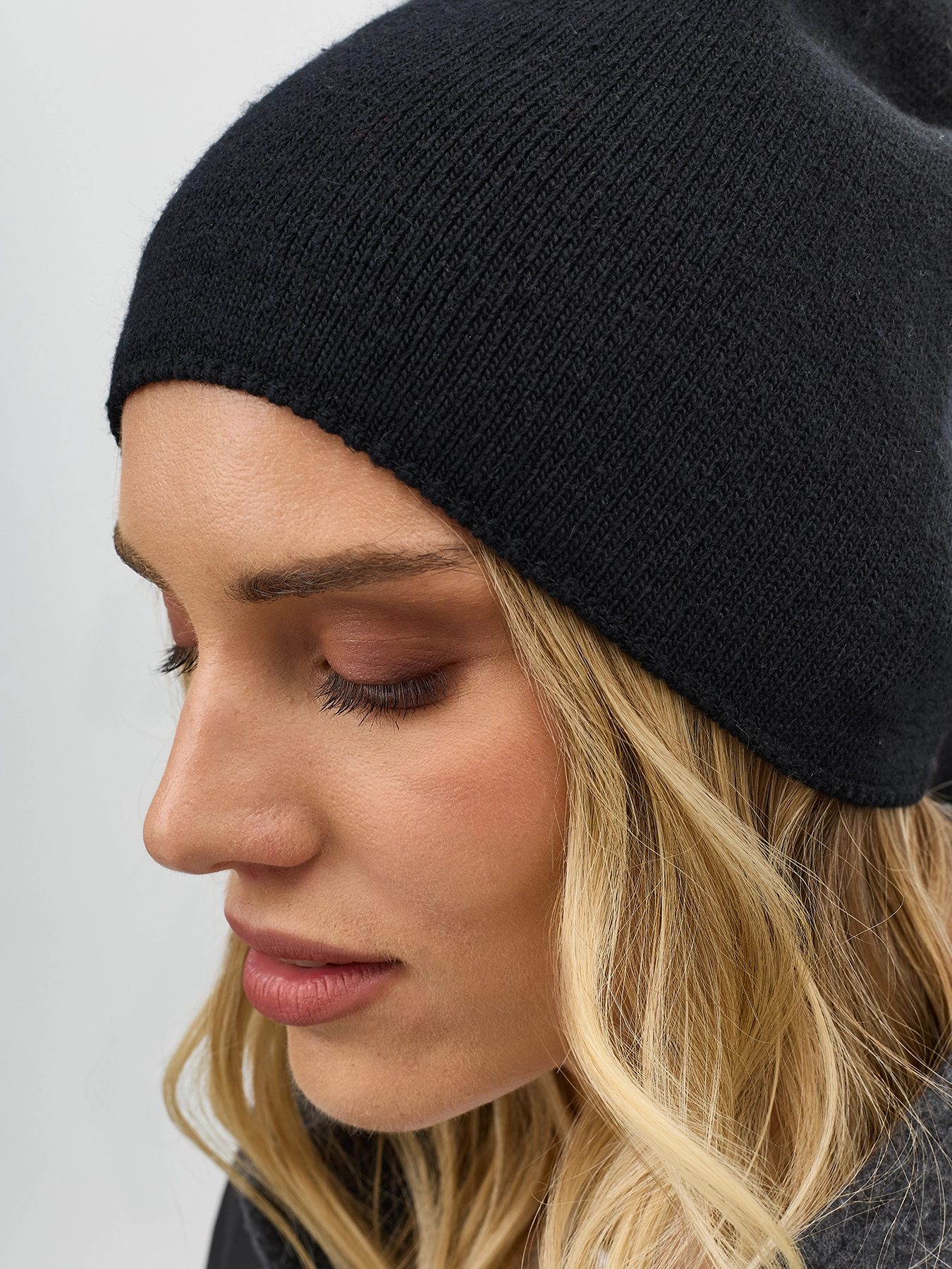 Шапка без отворота в мелкий рубчик из вискозы и ангоры.