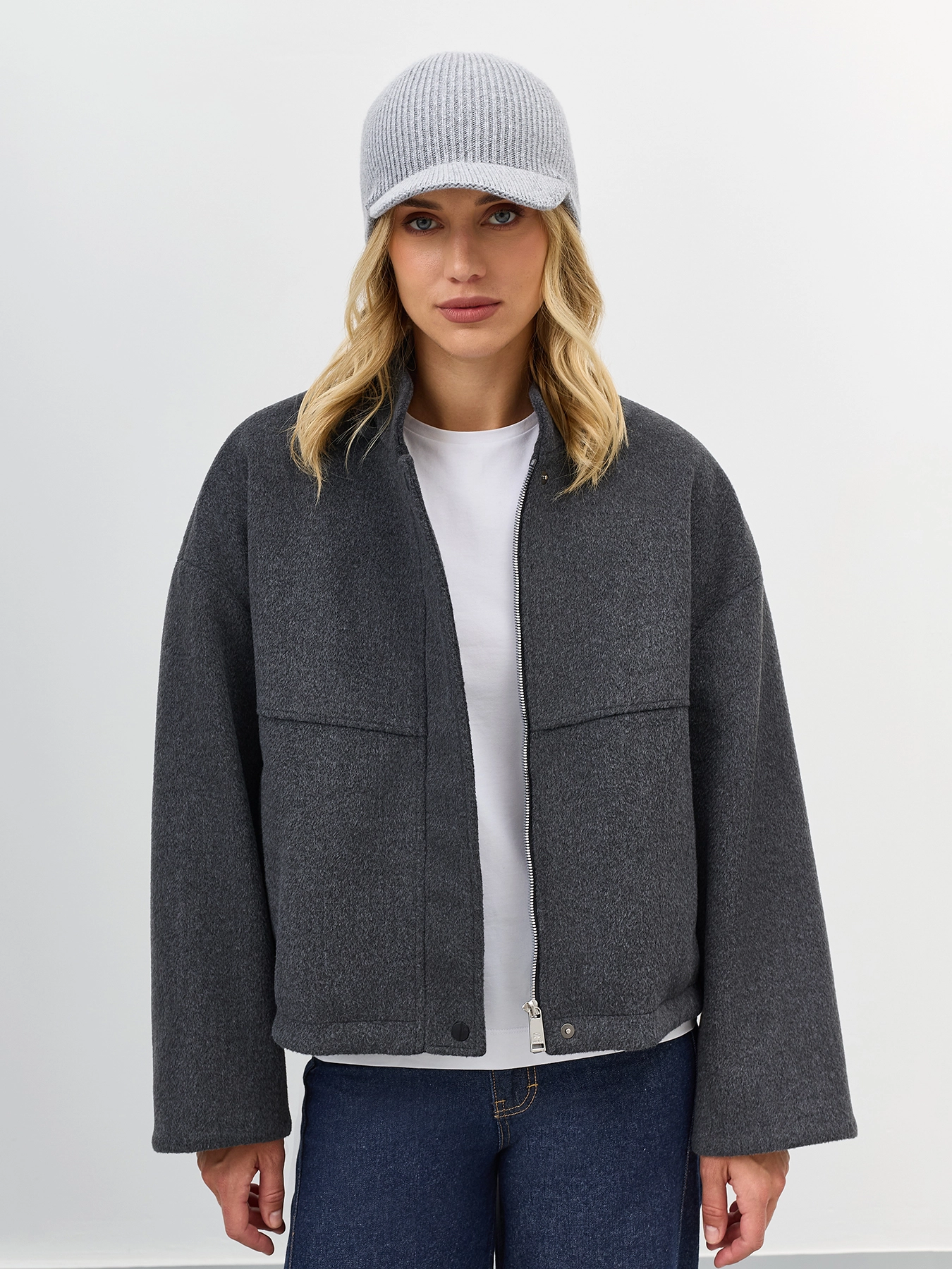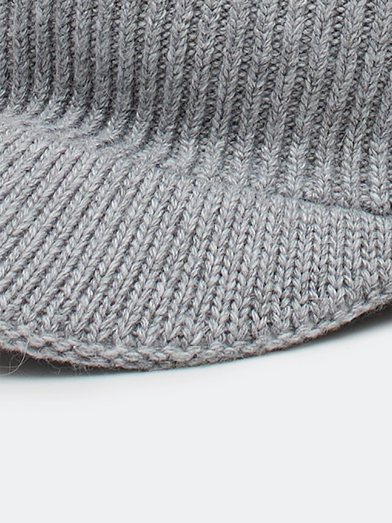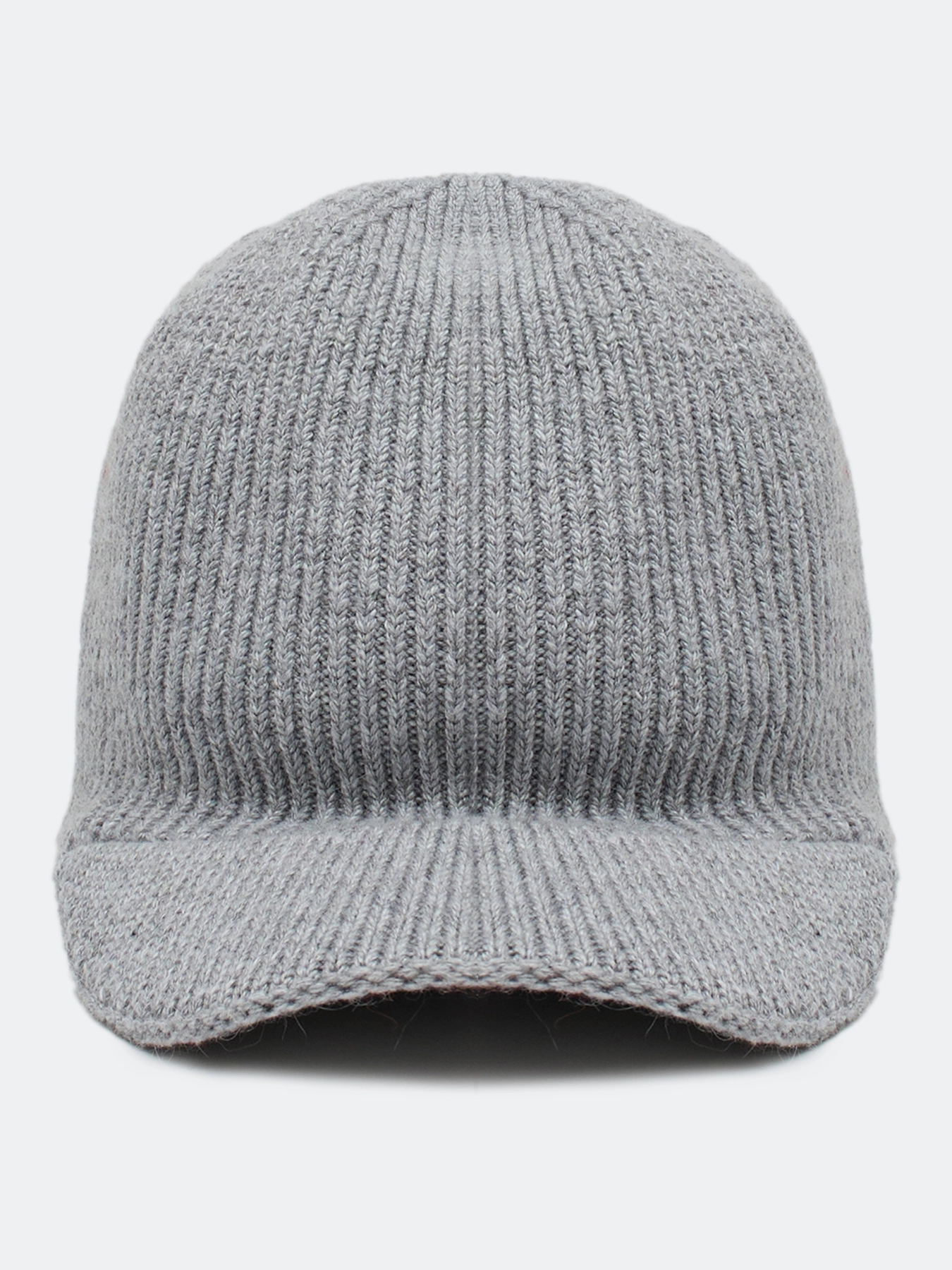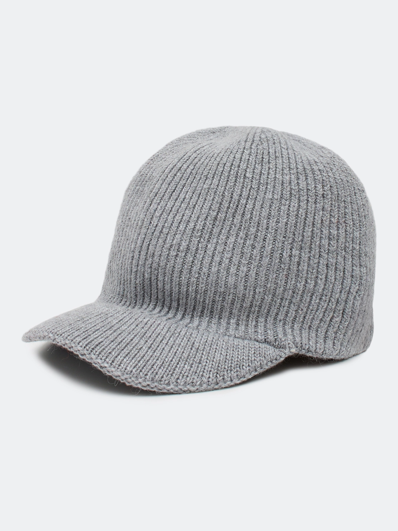 Вязаная кепка в рубчик с изогнутым козырьком. В составе вискоза и ангора.