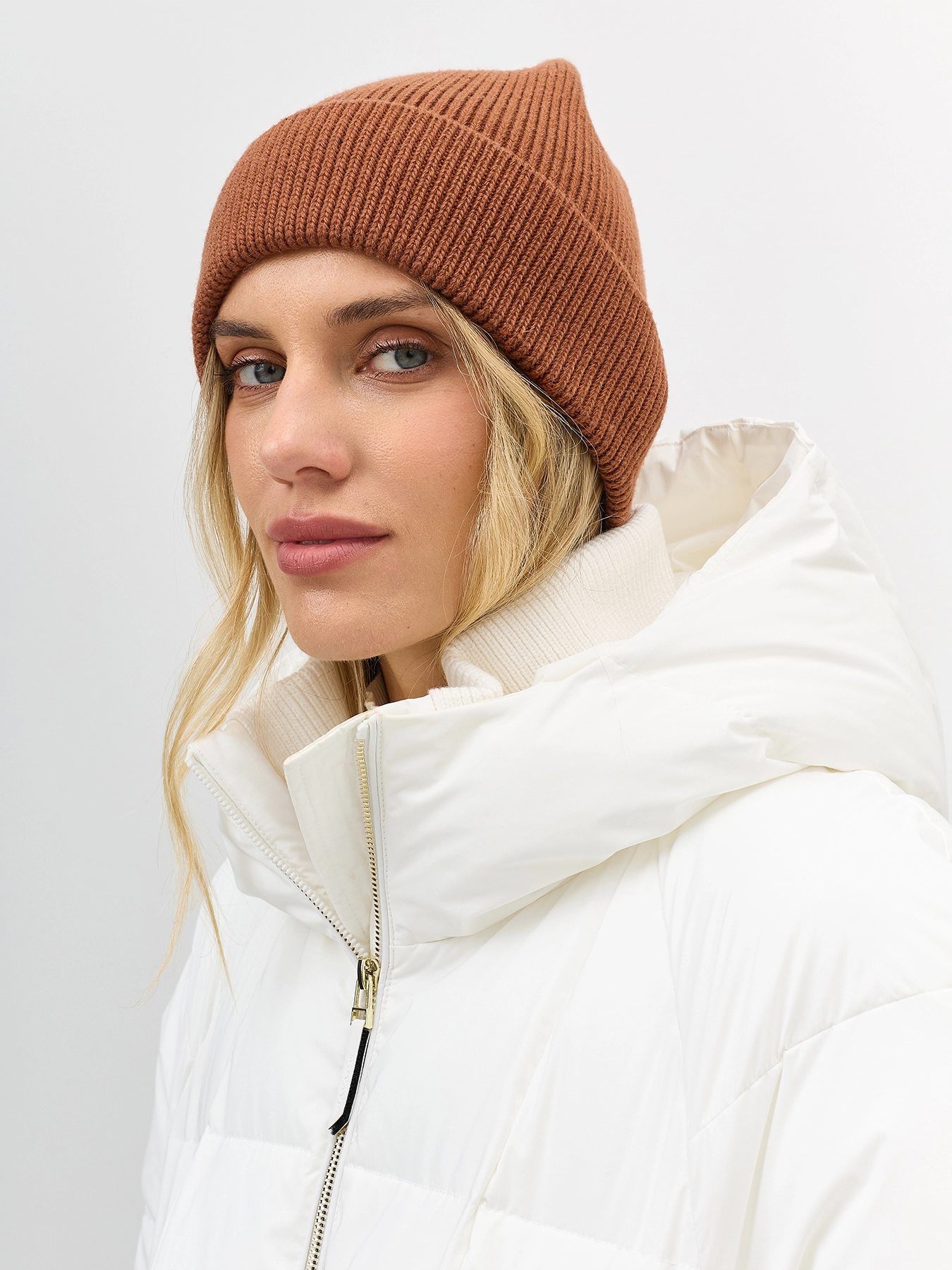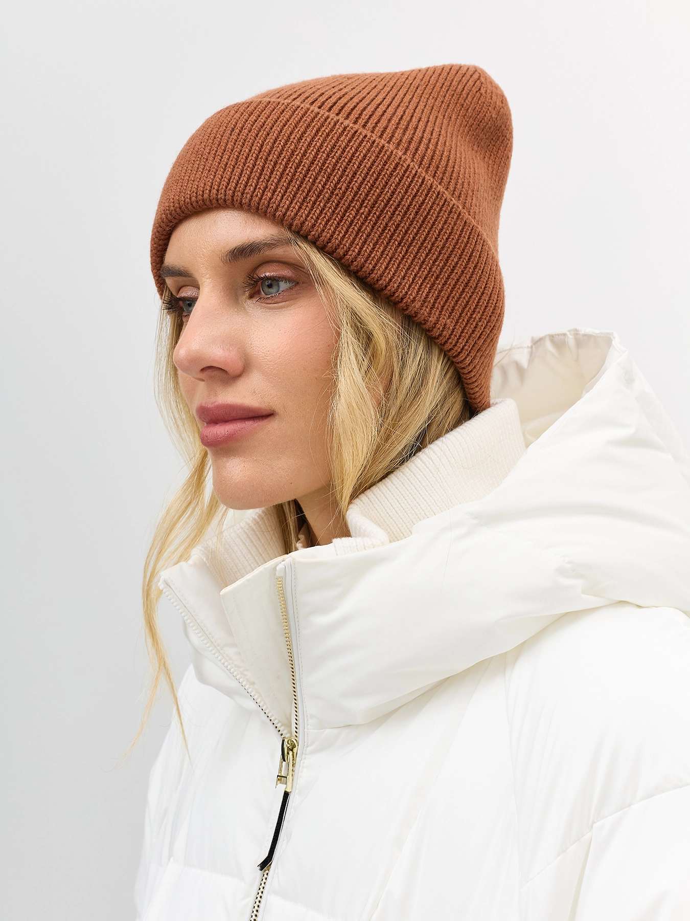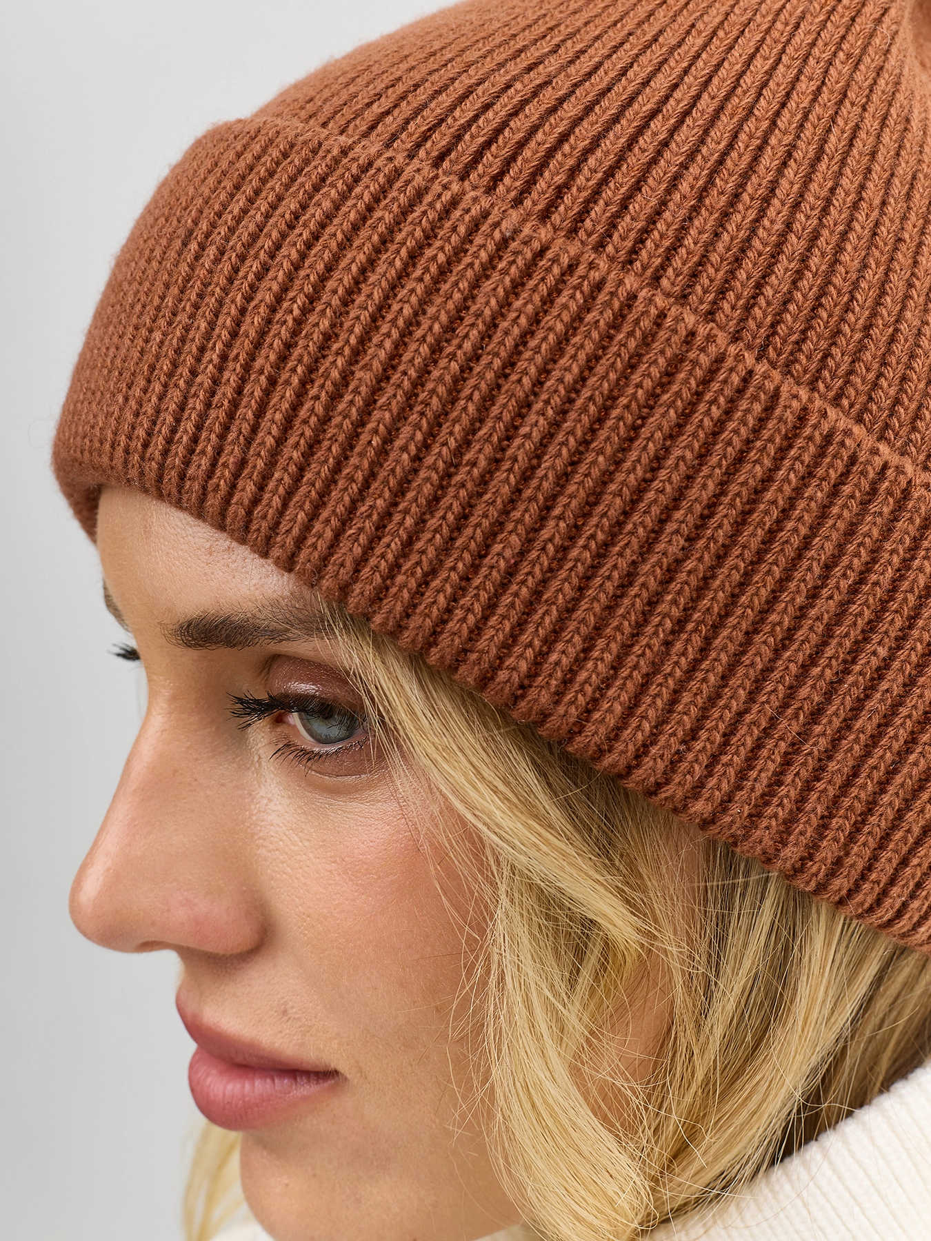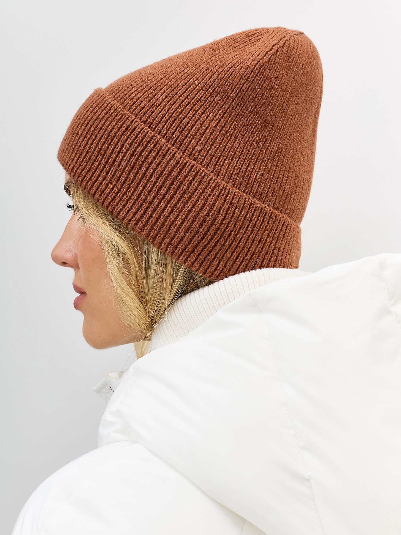 Яркая шапка бини в рубчик с отворотом. В составе вискоза и шерсть. Комплект с шарфом SVG302589 и перчатками SVG602589