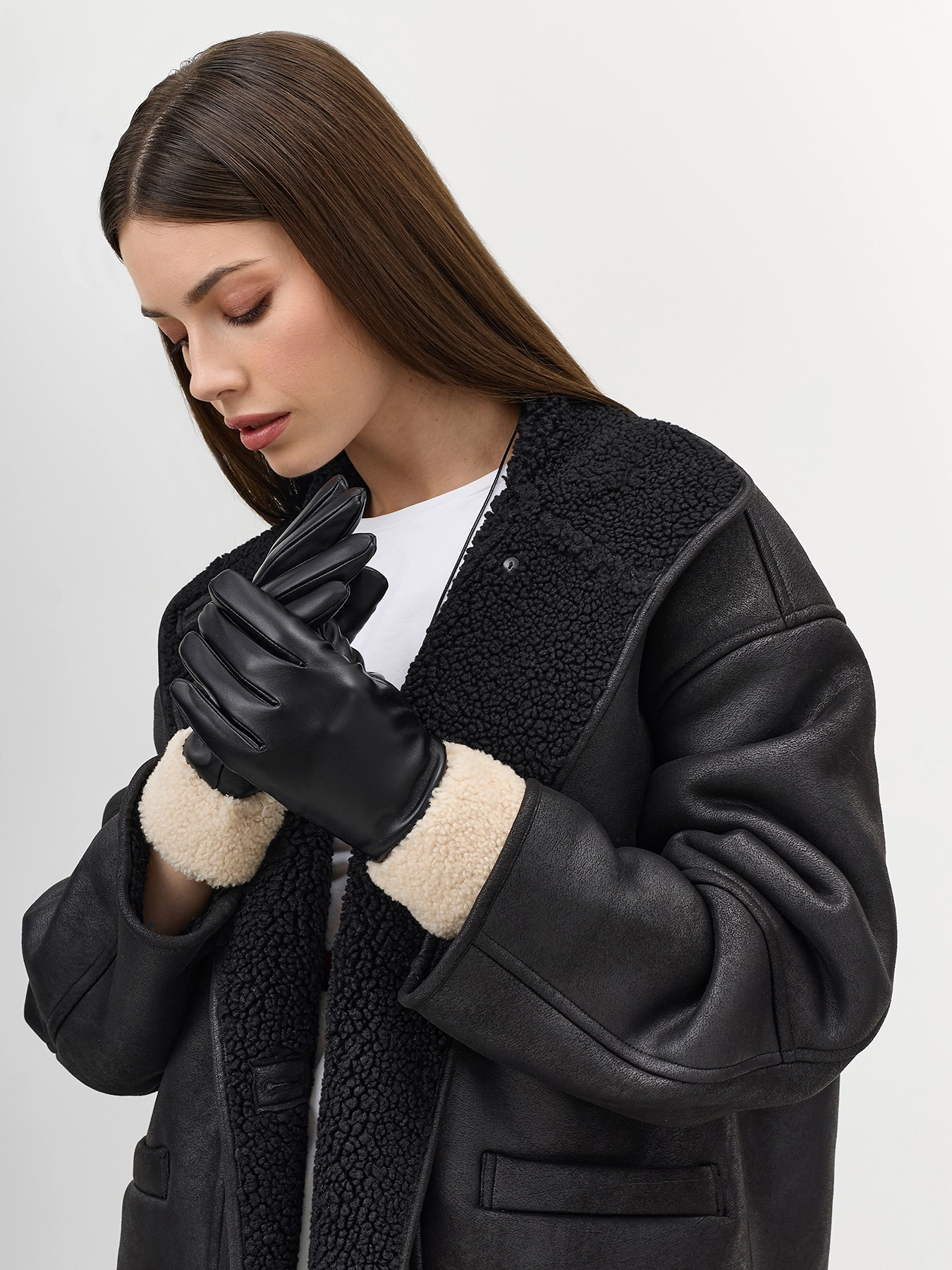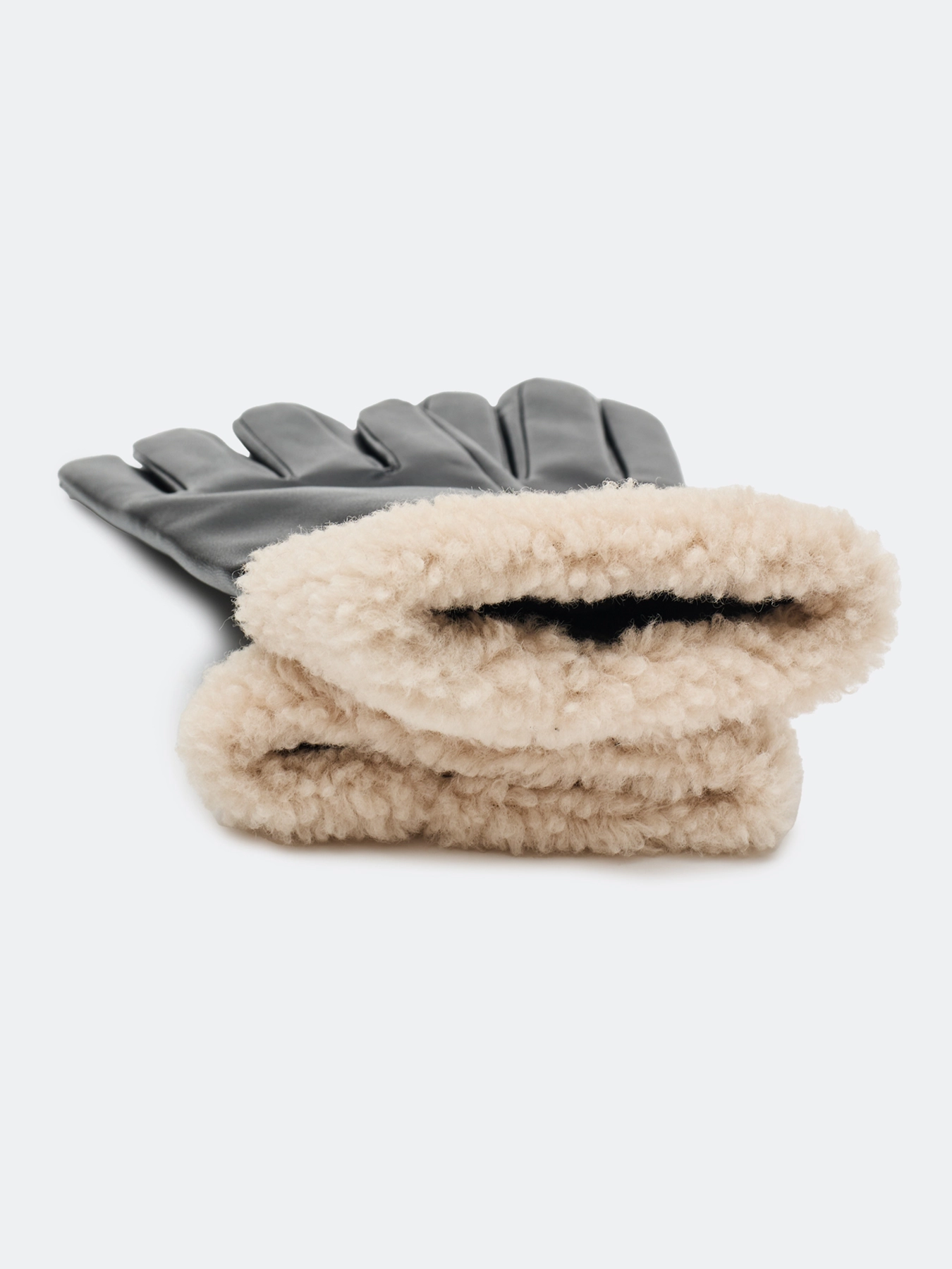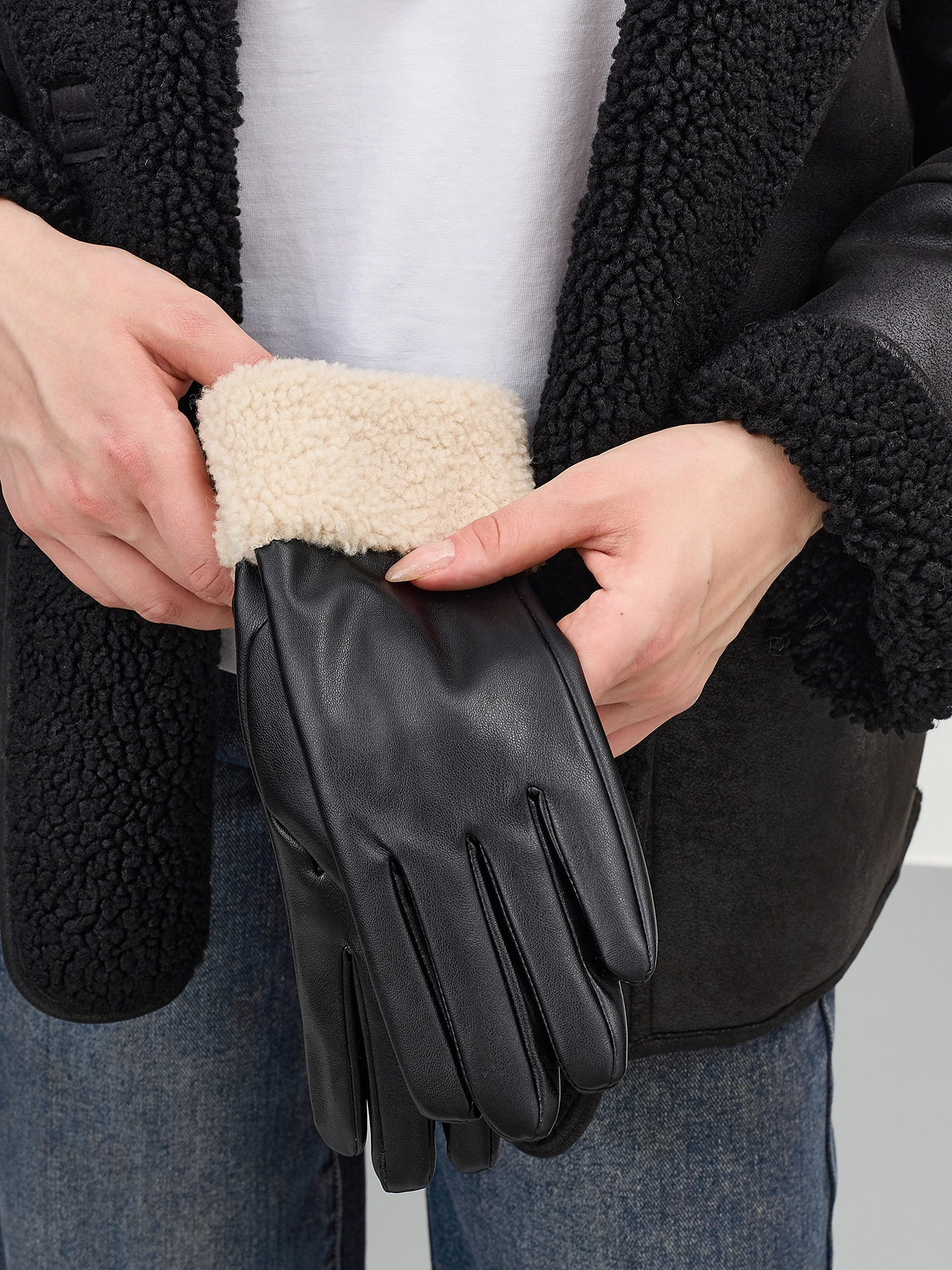 Перчатки из мягкой эко кожи. Теплая текстильная подкладка. Манжеты из искусственного меха.