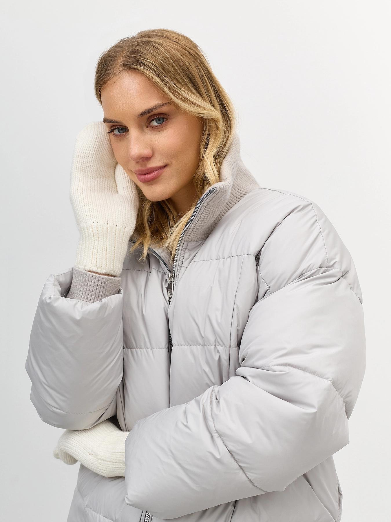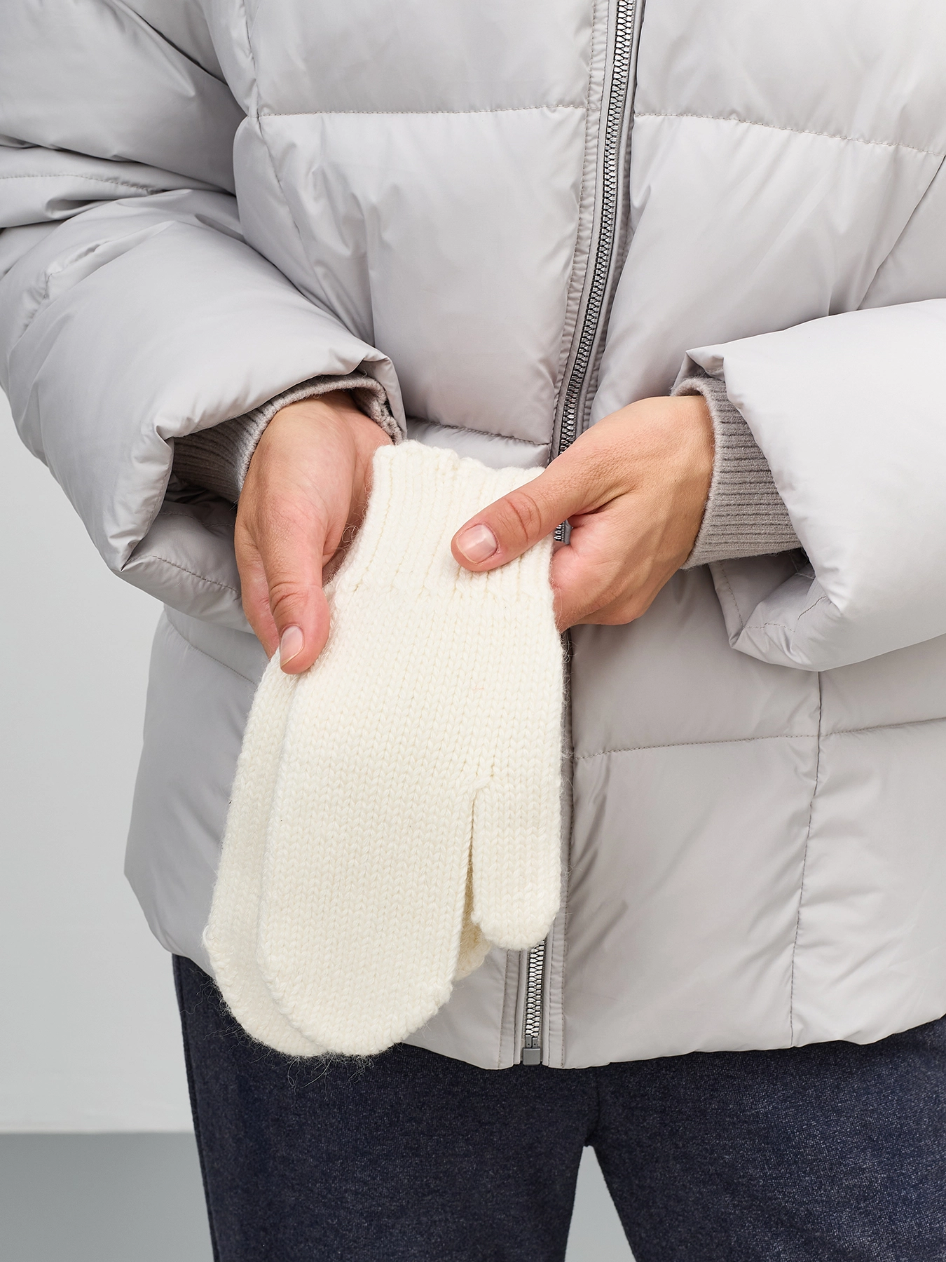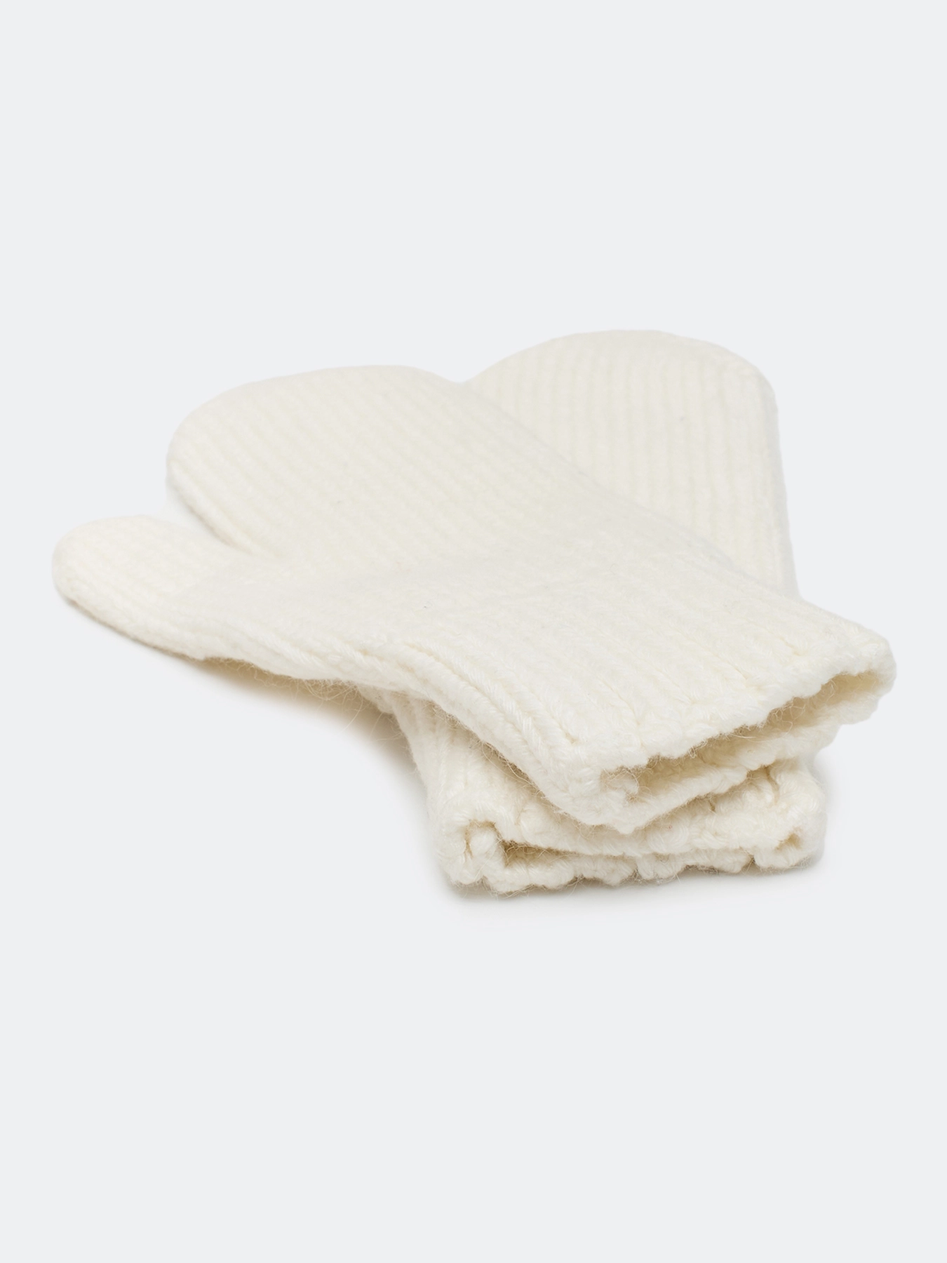 Теплые вязаные варежки с добавлением ангоры. Плотно держатся на запястье благодаря резинке. Комплект с шапкой SVG402549