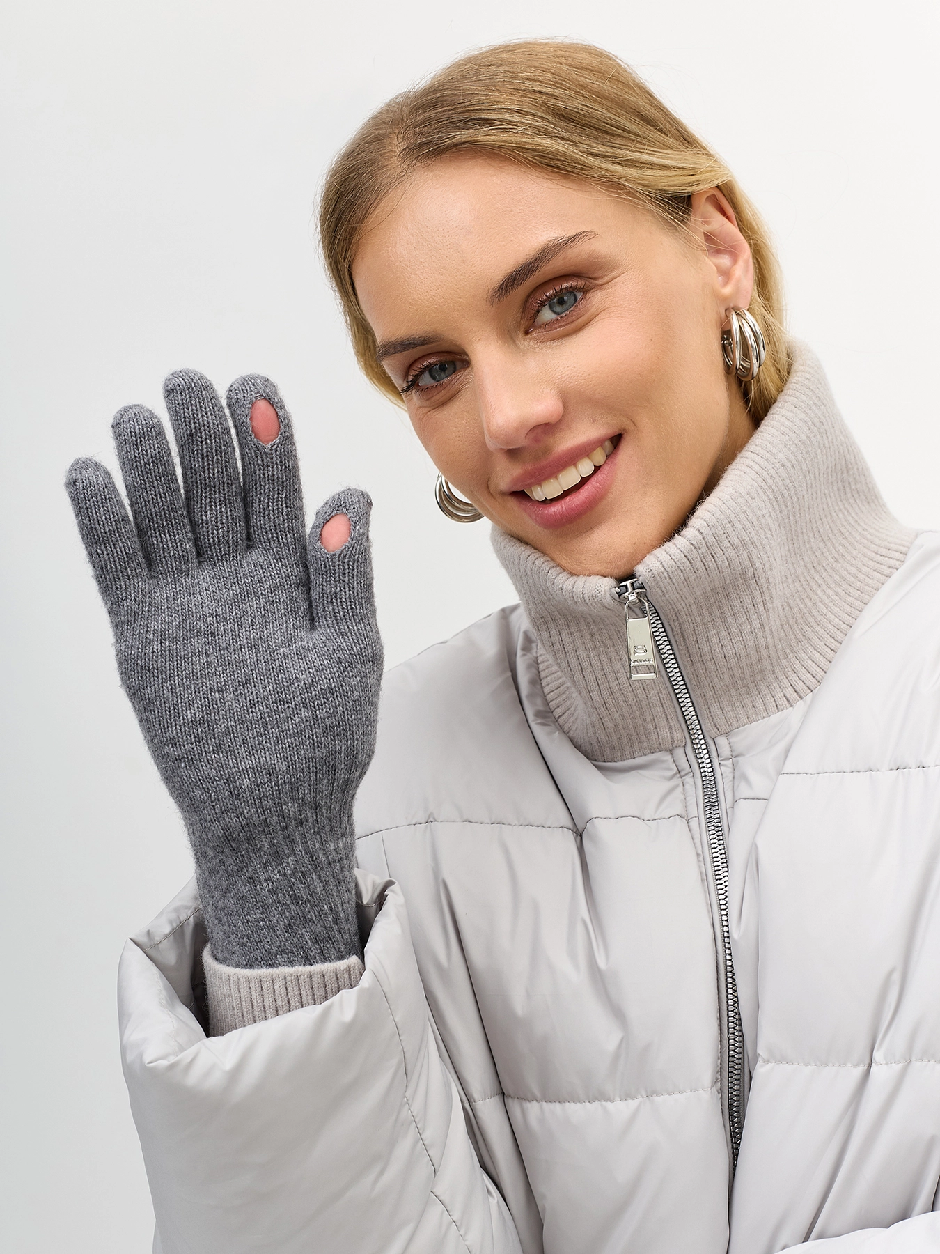 Теплые вязаные перчатки с хлопком и шерстью в составе. Плотно держатся на запястье благодаря резинке.