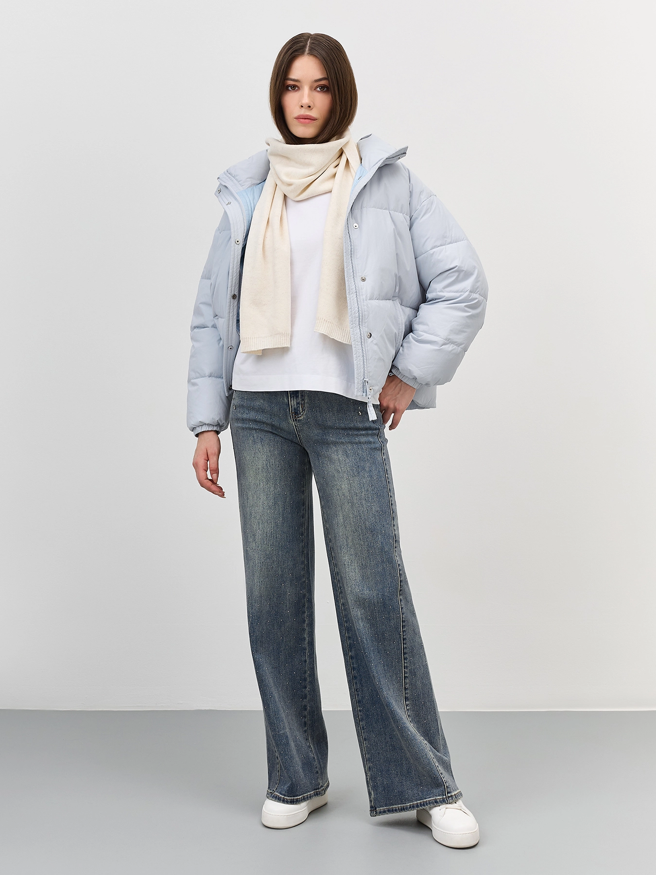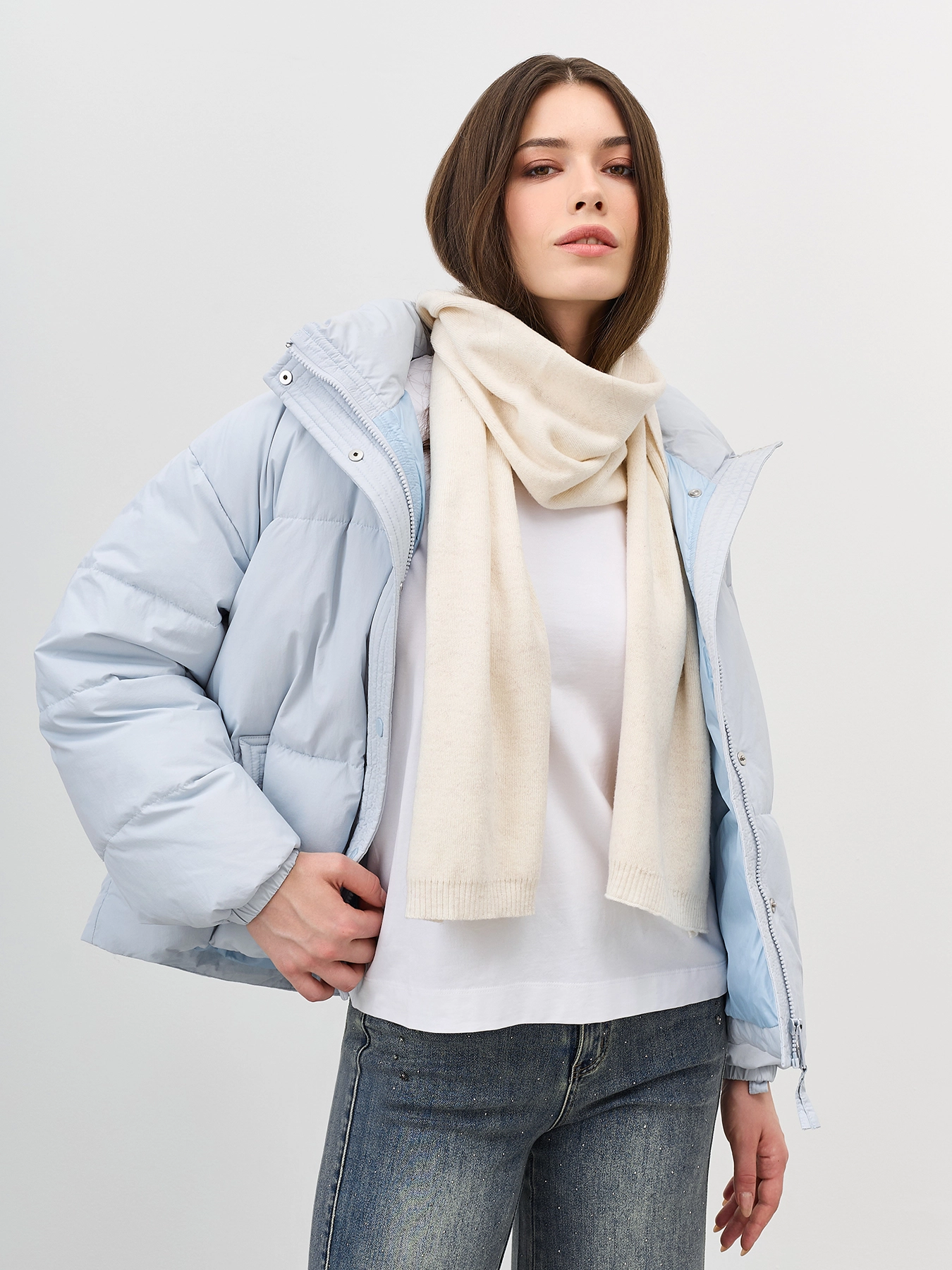 Молочный шарф из смесовой вискозы