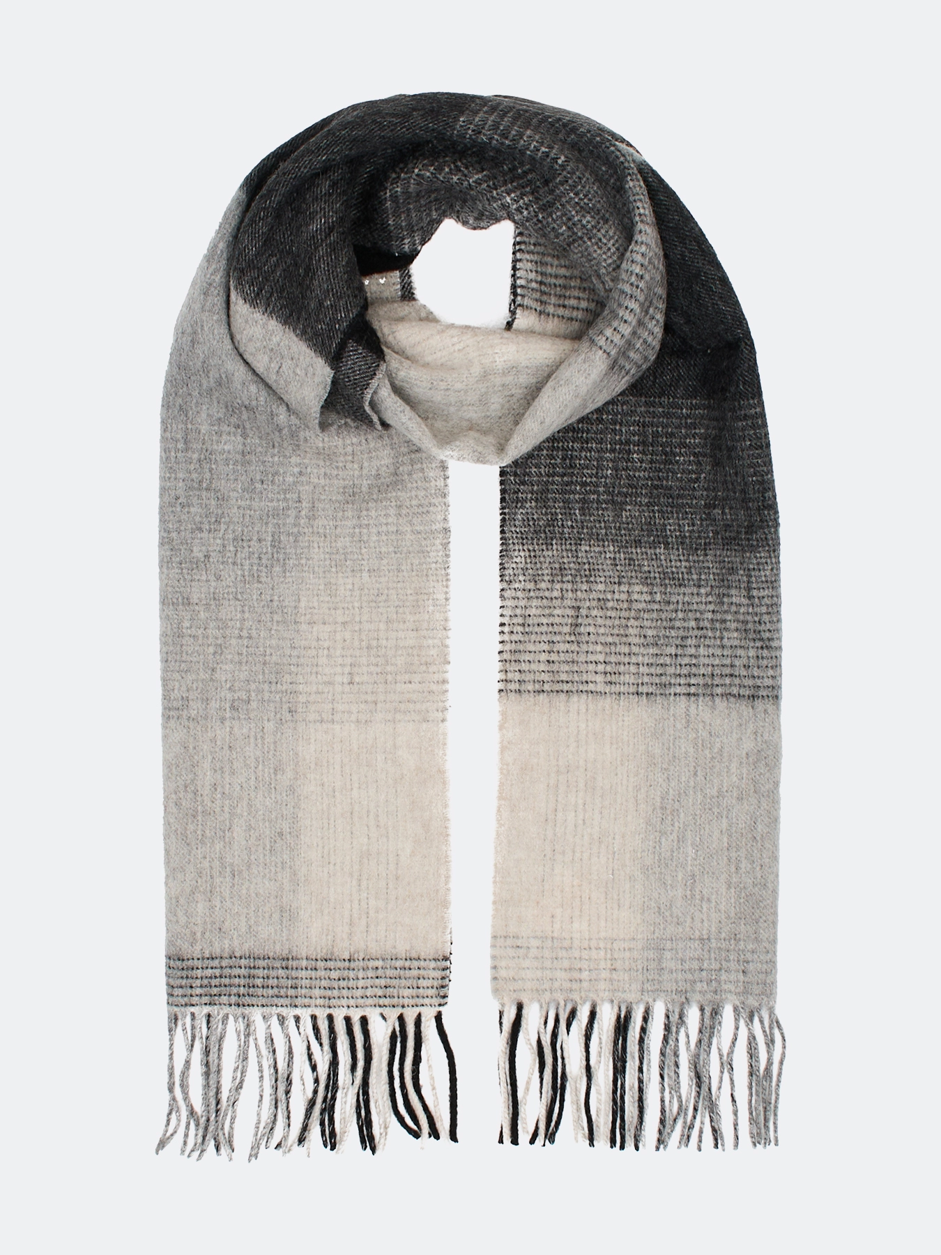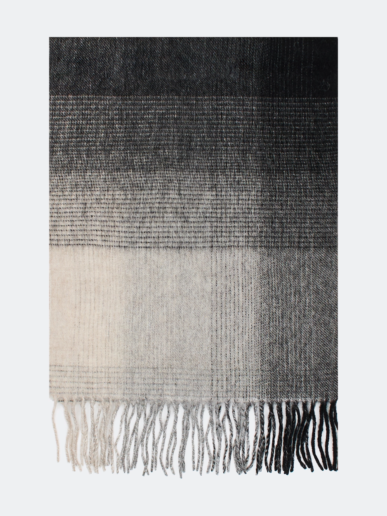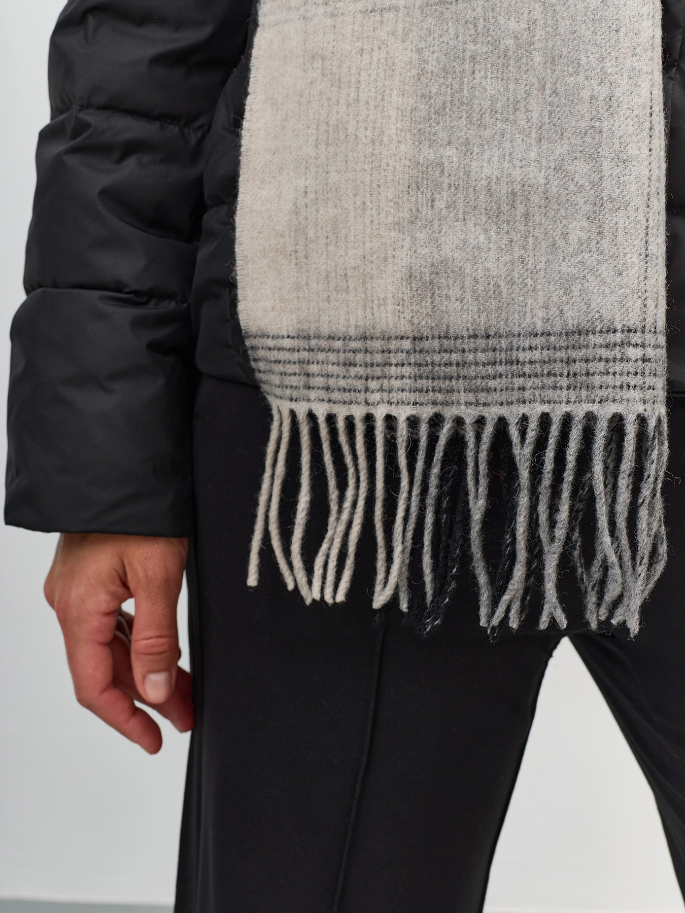 Шарф из 100% шерсти с клетчатым принтом и бахромой по краю. Прямоугольная форма, one size