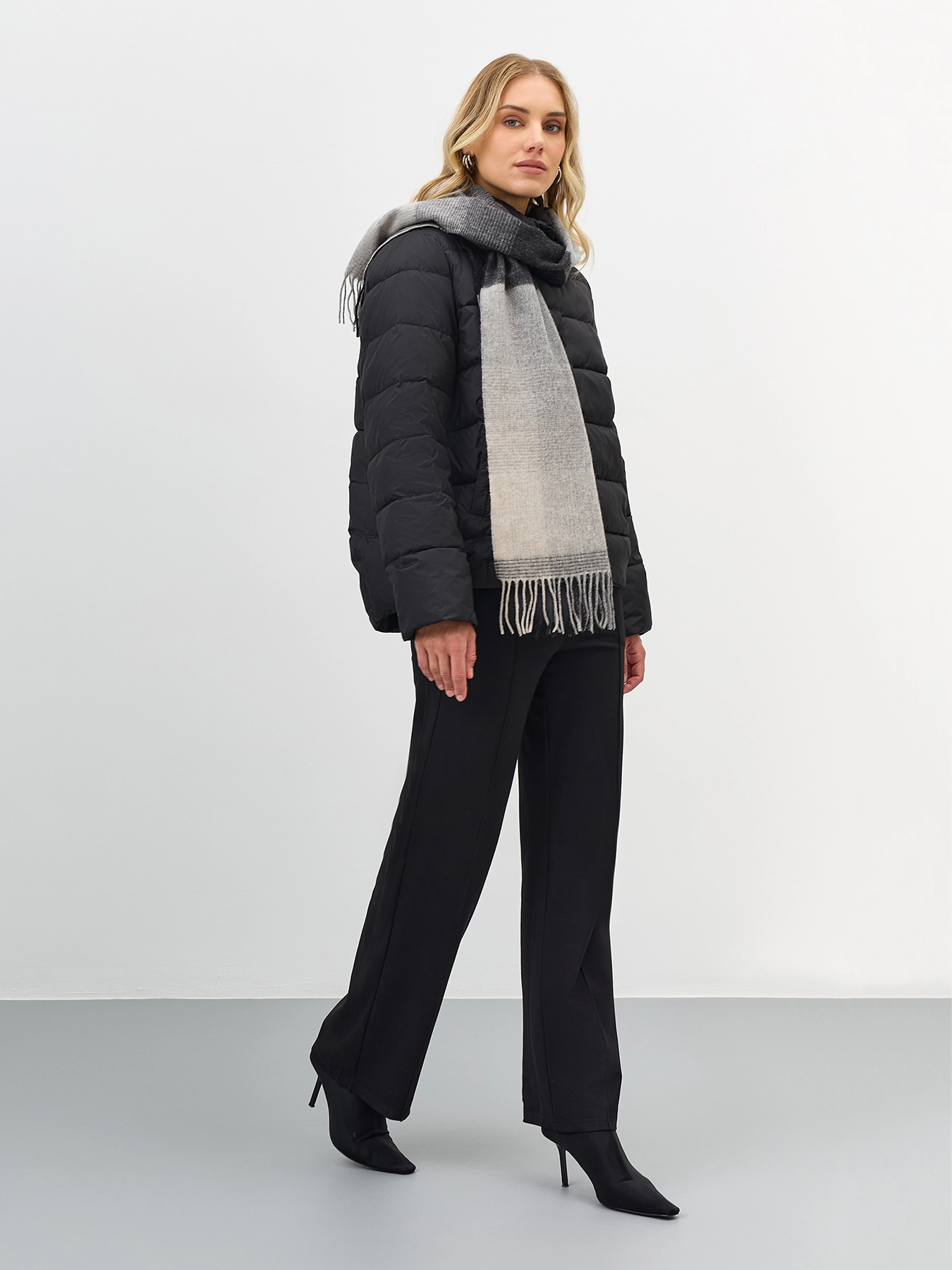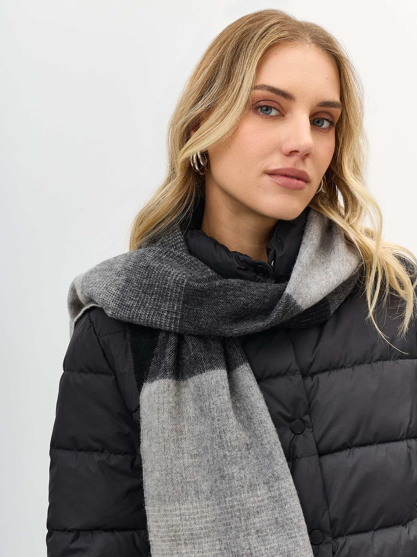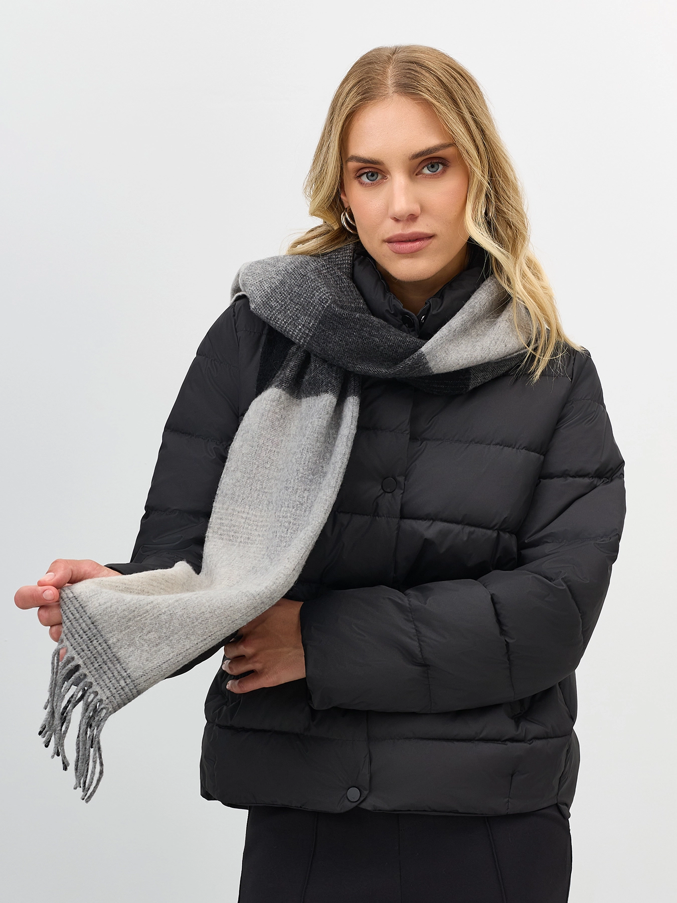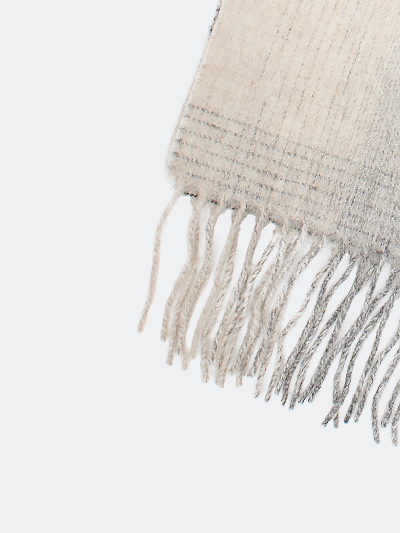 Шарф из 100% шерсти с клетчатым принтом и бахромой по краю. Прямоугольная форма, one size