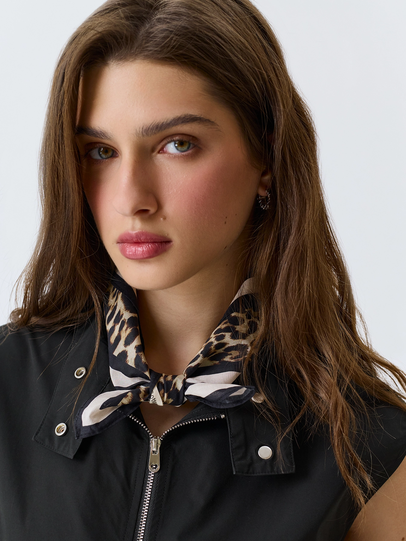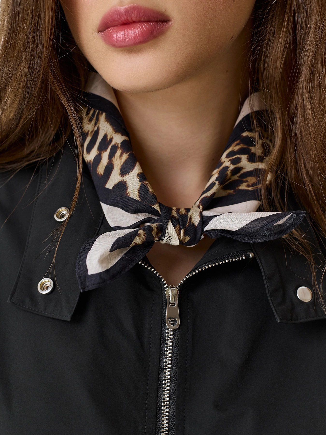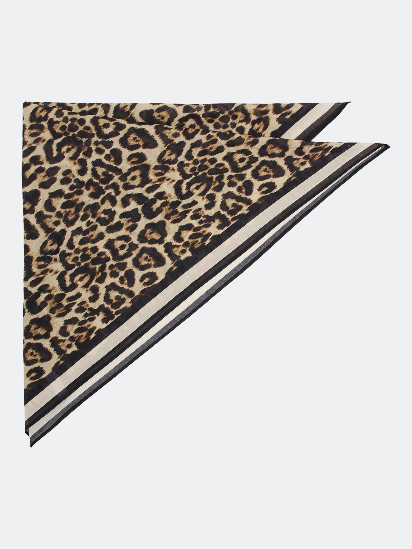 Легкий шейный платок с анималистичным принтом. В составе 100% хлопок. Можно повязать на сумку, использовать как бандану или повязать на шею.