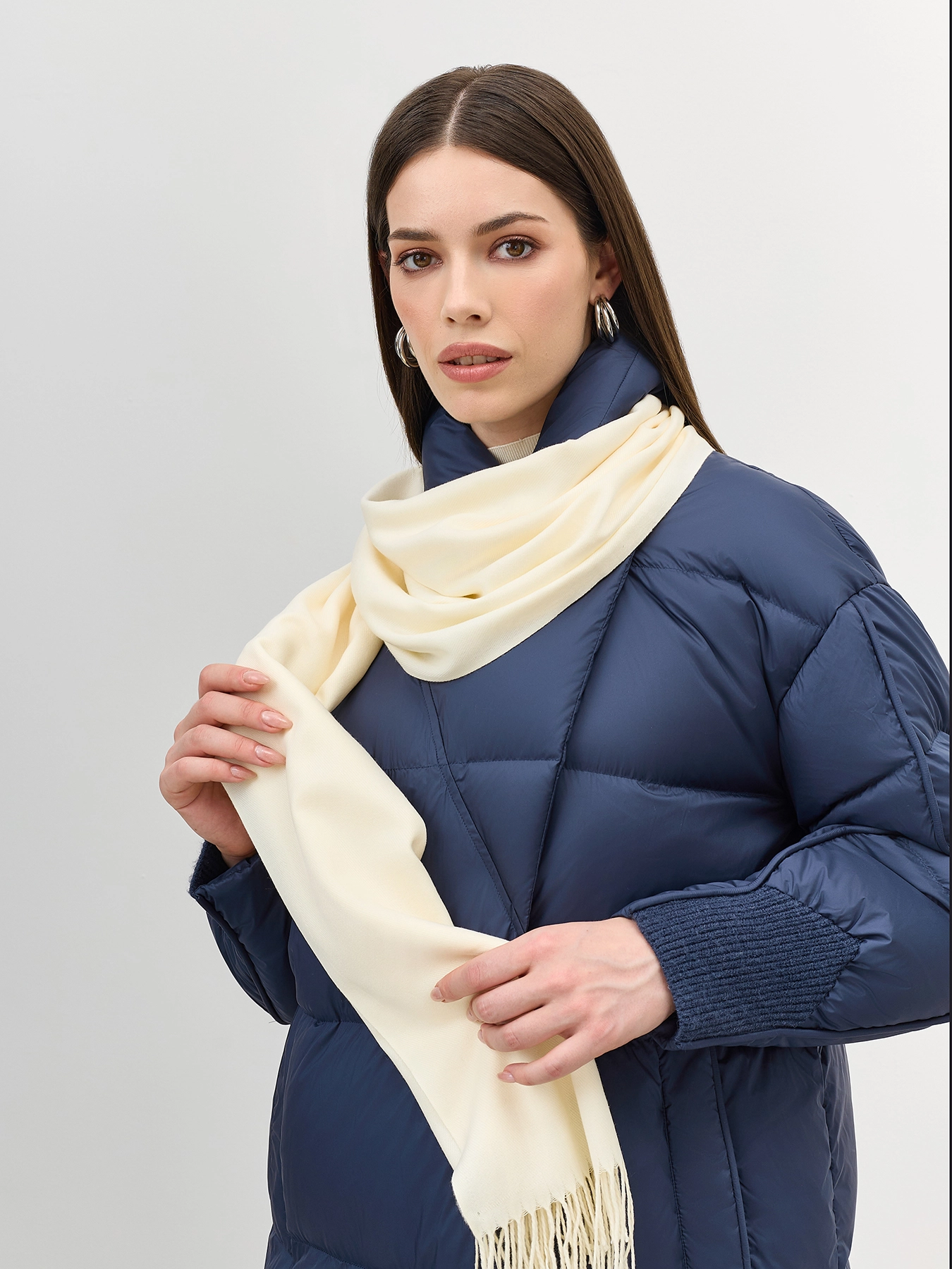 Тонкий палантин с бахромой