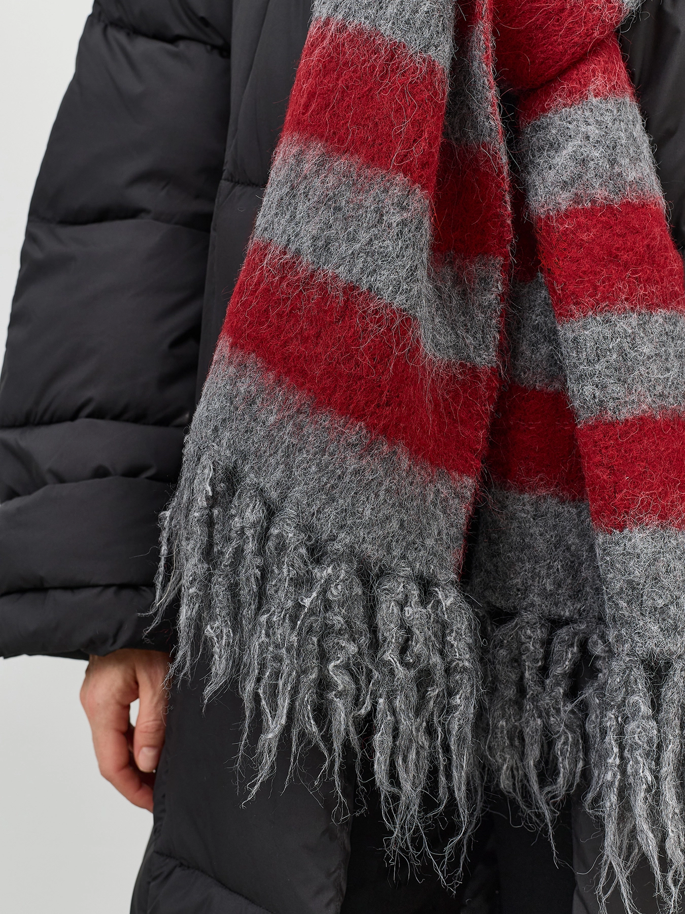 Шарф SAVAGE – это стильный и практичный аксессуар, который станет незаменимым спутником в холодное время года. Изготовленный из мягкой и уютной смеси полиэстера, нейлона и шерсти, он обеспечит вам тепло и комфорт в самые морозные дни. Яркий красный цвет в полоску придает шарфу яркий и стильный вид, а бахрома добавляет ему игривости и шарма. Этот большой и теплый шарф станет прекрасным подарком для любимой, мамы или коллеги на день рождения, день матери или день учителя. Он прекрасно дополнит любой зимний образ, добавив ему нотку элегантности и уюта.