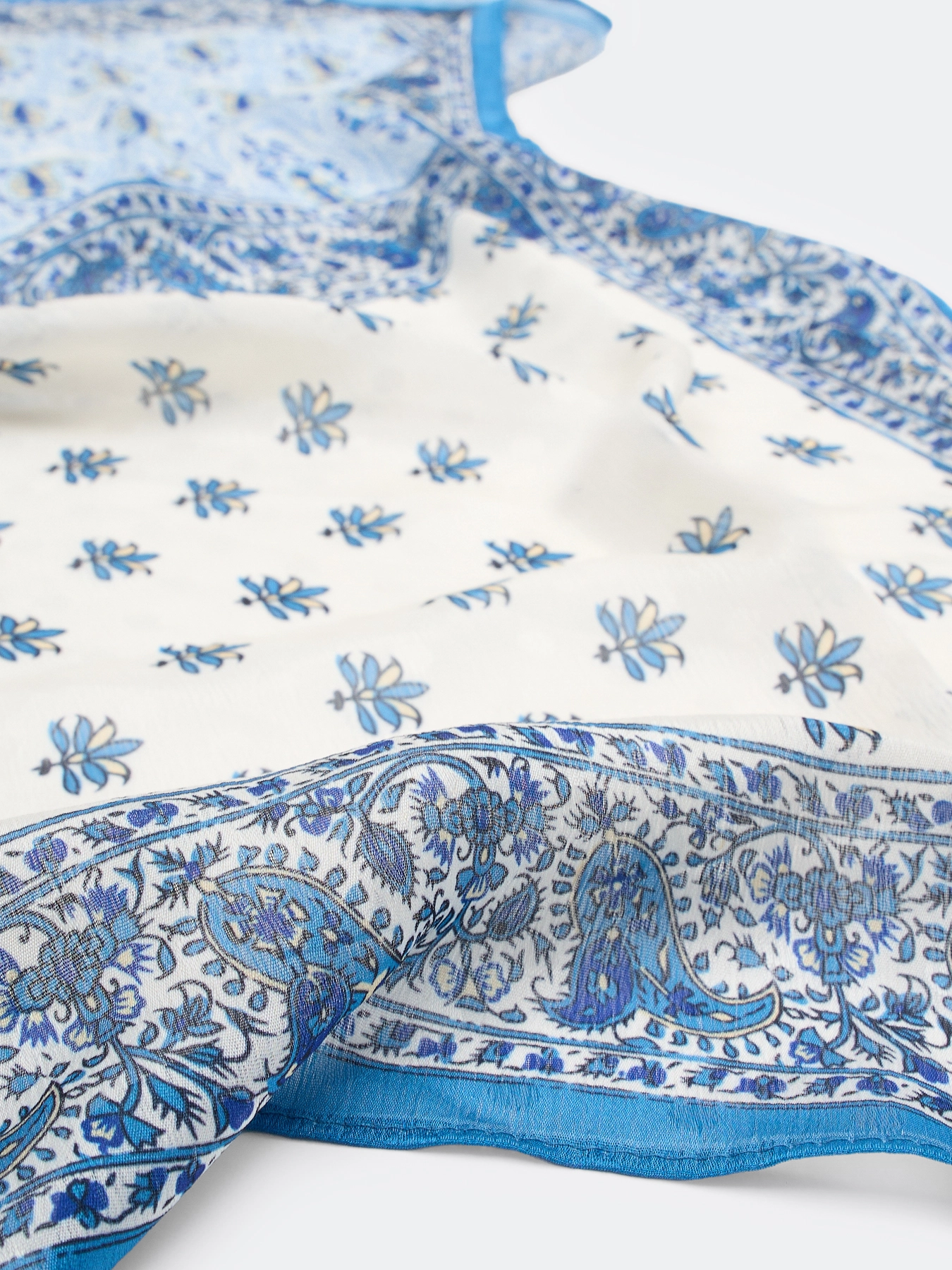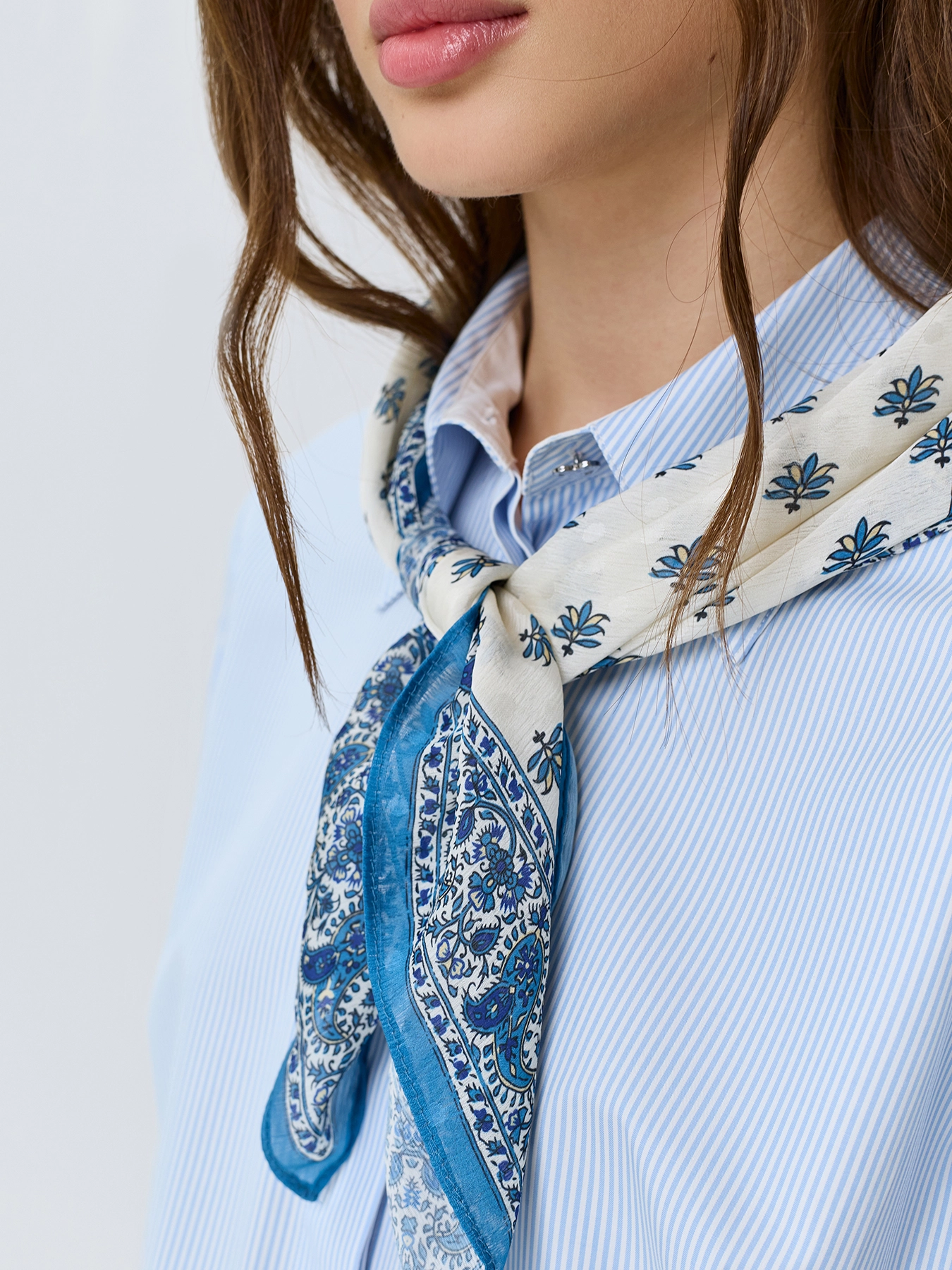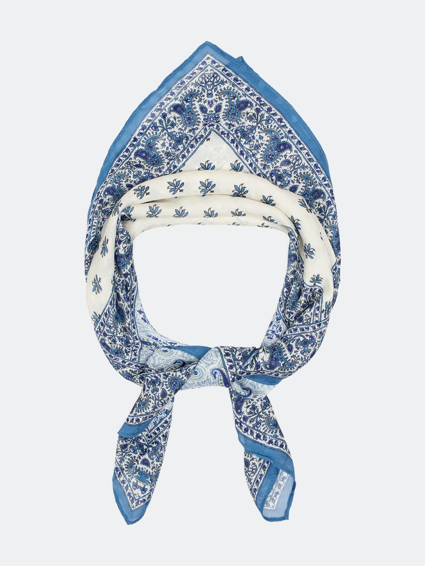 Легкий шейный платок с этническим принтом. Можно повязать на сумку, использовать как бандану или повязать на шею.