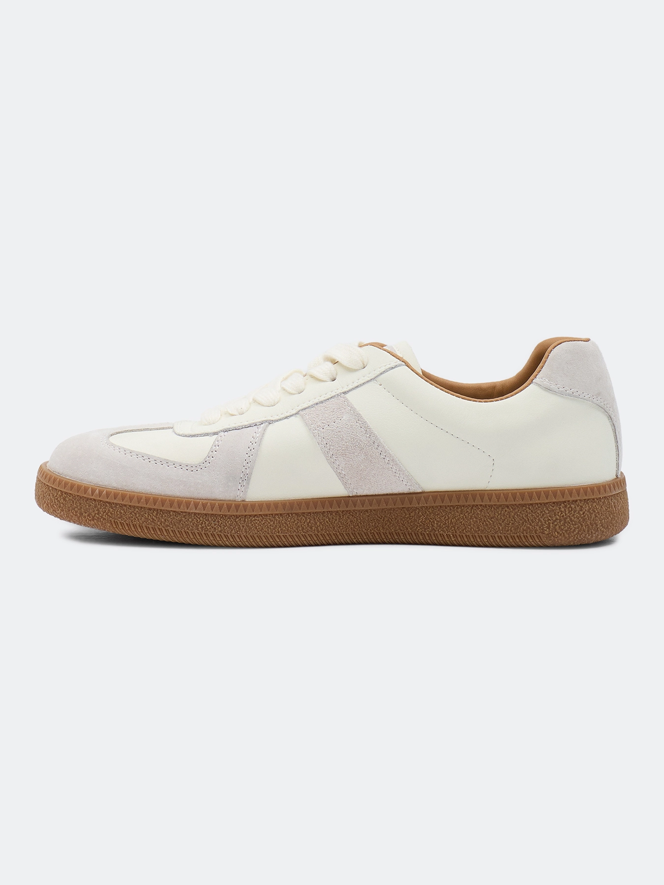 Спортивные кеды из натуральной кожи и замши. Закругленный мыс. Фиксация на шнуровку. Стелька из натуральной кожи. Подошва из термопластичной резины.