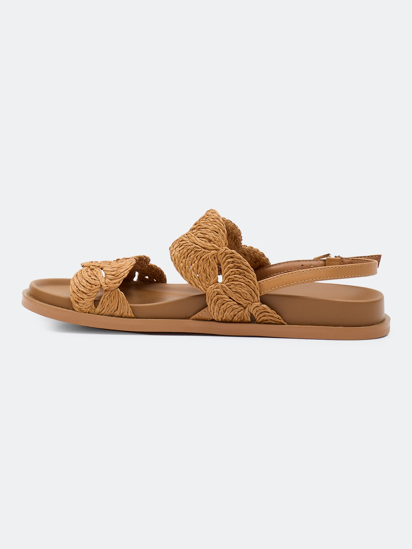 Босоножки из натуральной кожи с акцентным плетением. Закругленный мыс. Фиксация на ремешок. Подкладка и стелька из искусственной кожи. Подошва из резины.