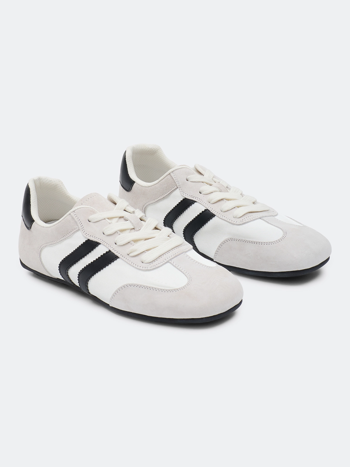 Кроссовки из комбинации натуральной замши, микрофибры и текстиля. Закруглённый мыс. Фиксация на шнуровку. Стелька из натуральной кожи. Подошва из резины.