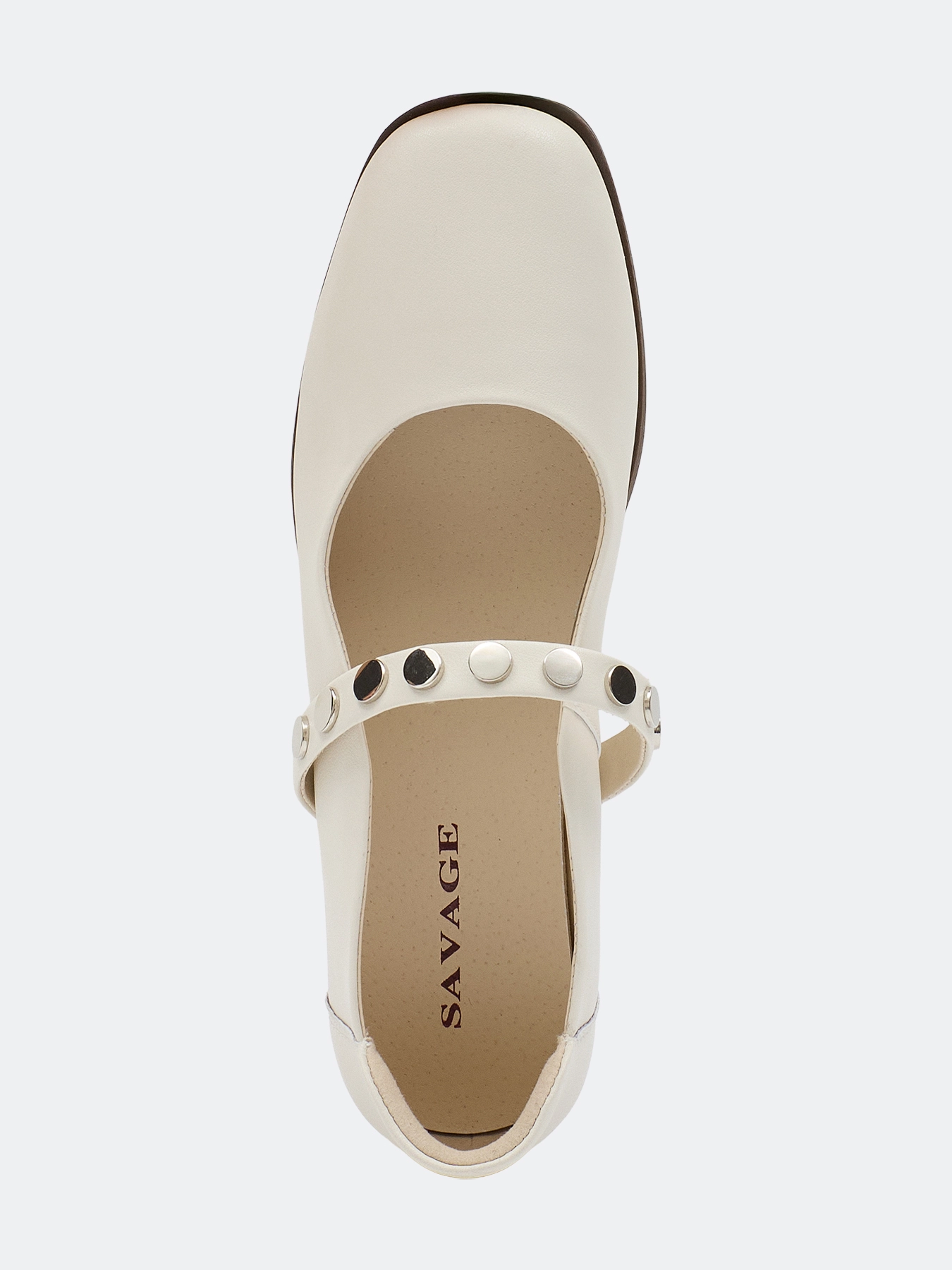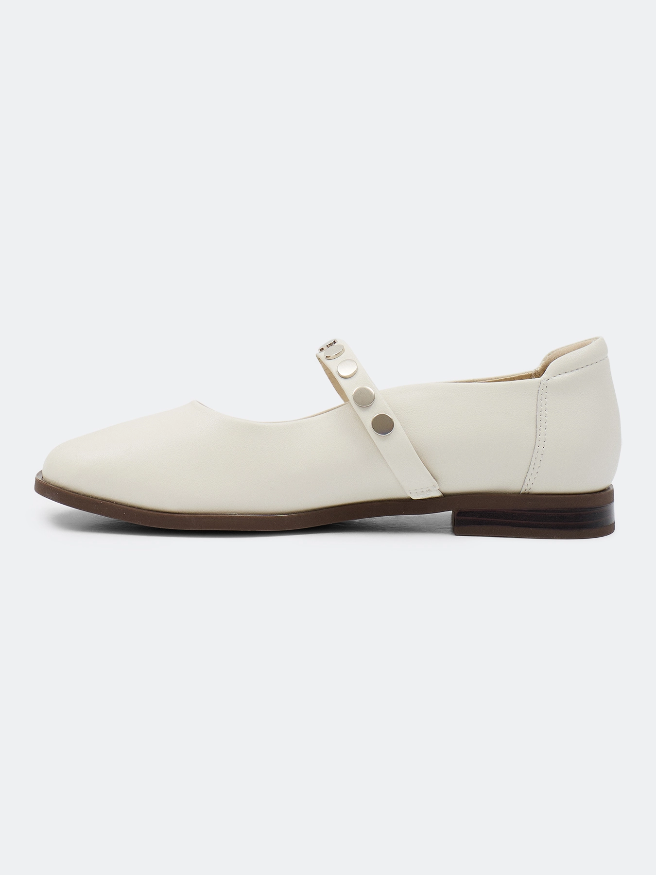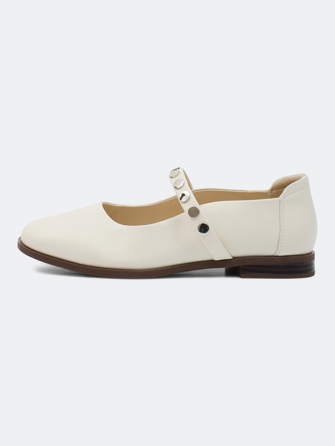 Балетки из натуральной кожи с контрастным декором. Круглый мыс. Фиксация на ремешок. Подкладка и стелька из натуральной кожи. Подошва из термопластичной резины.