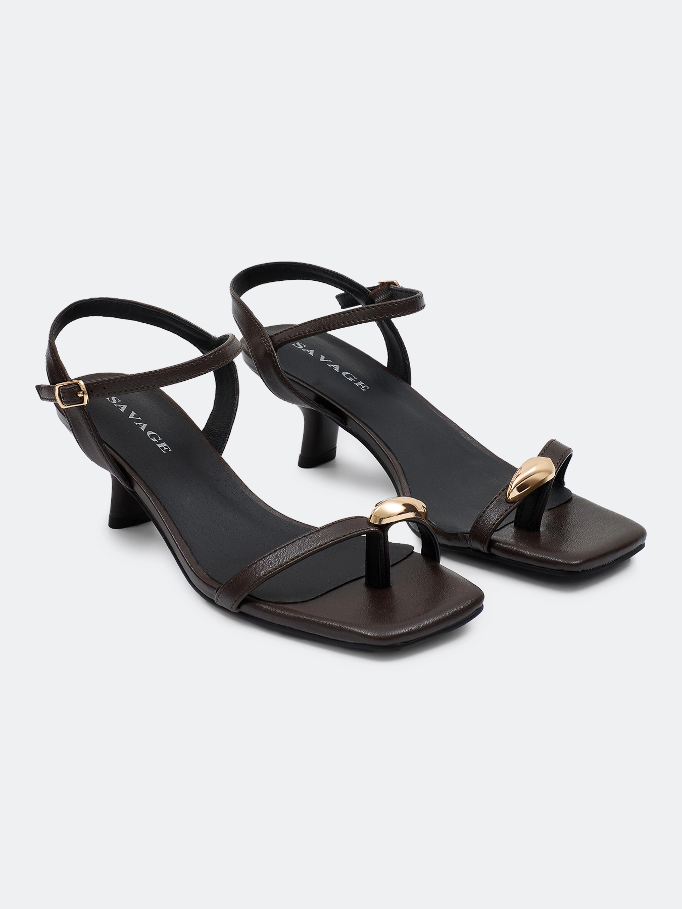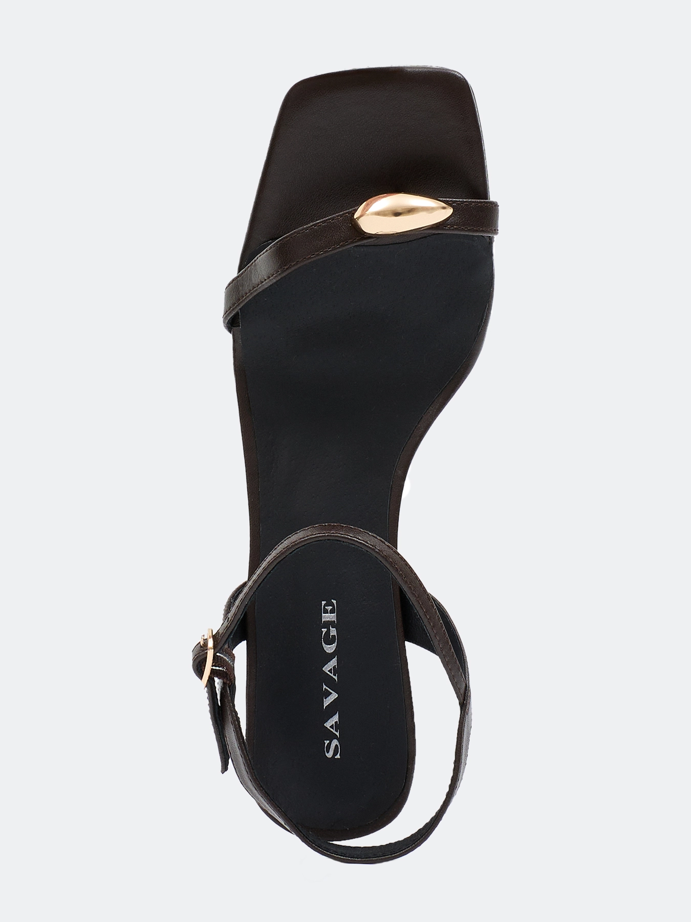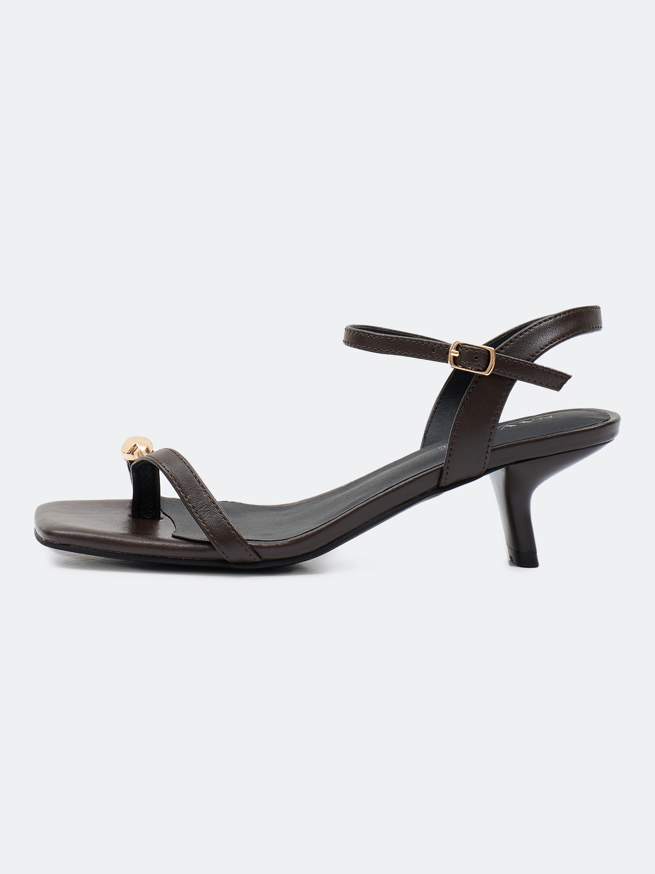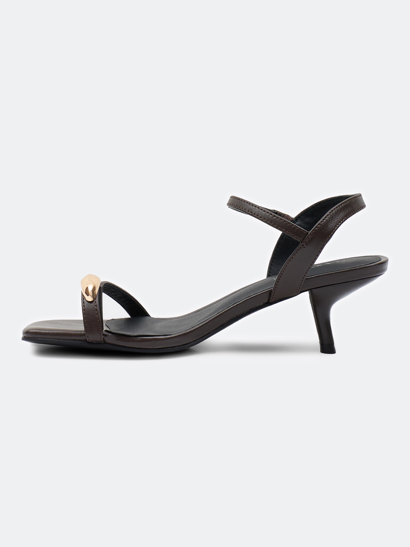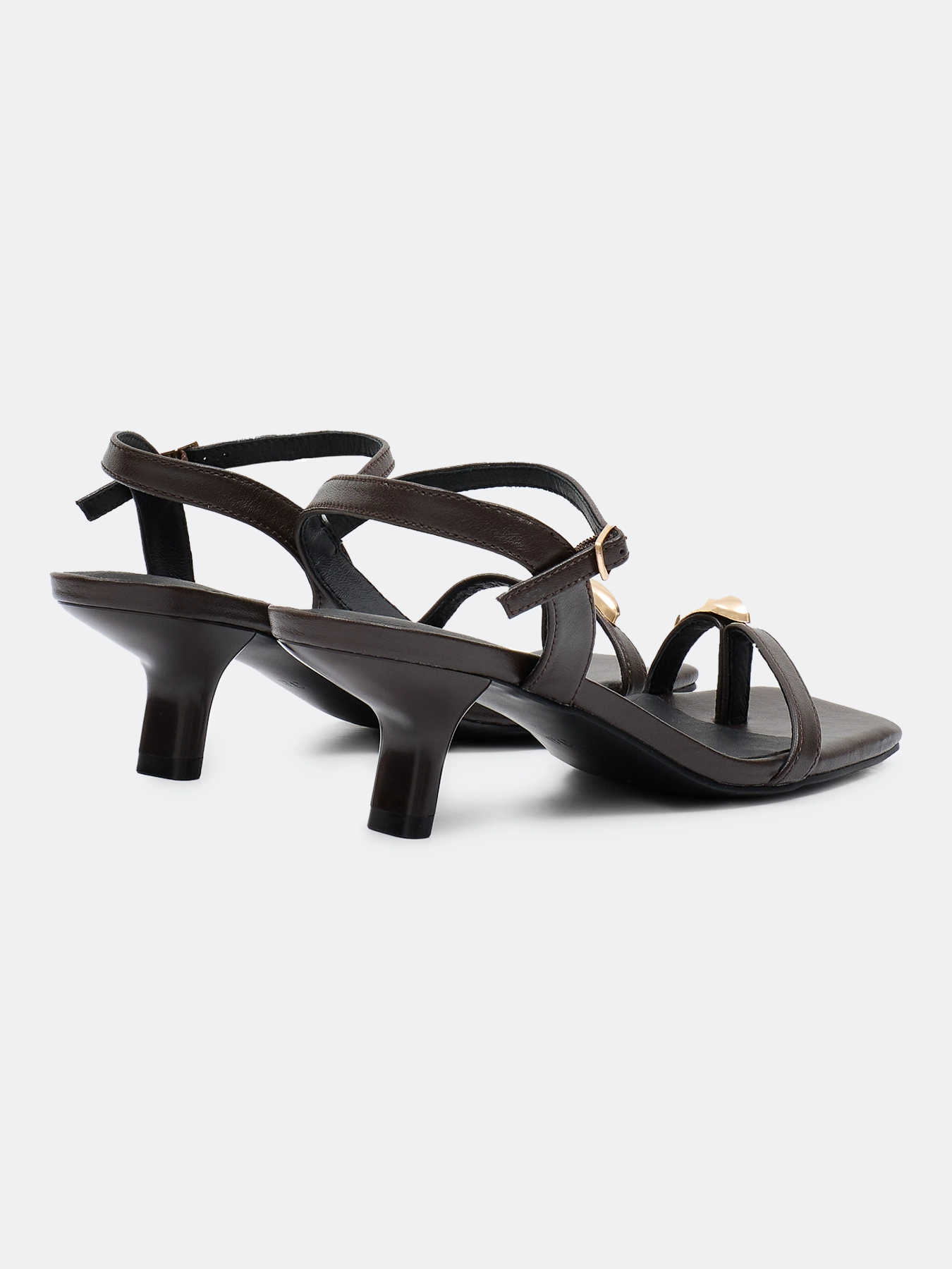 Босоножки с тонкими ремешками из натуральной кожи с металлическим декором. Квадратный мыс. Фиксация на ремешок с пряжкой. Средний устойчивый каблук. Подкладка и стелька из натуральной кожи. Подошва из термопластичной резины.