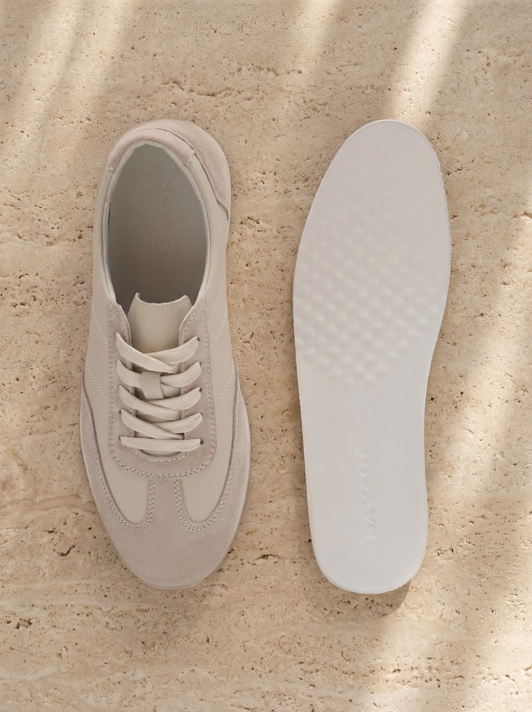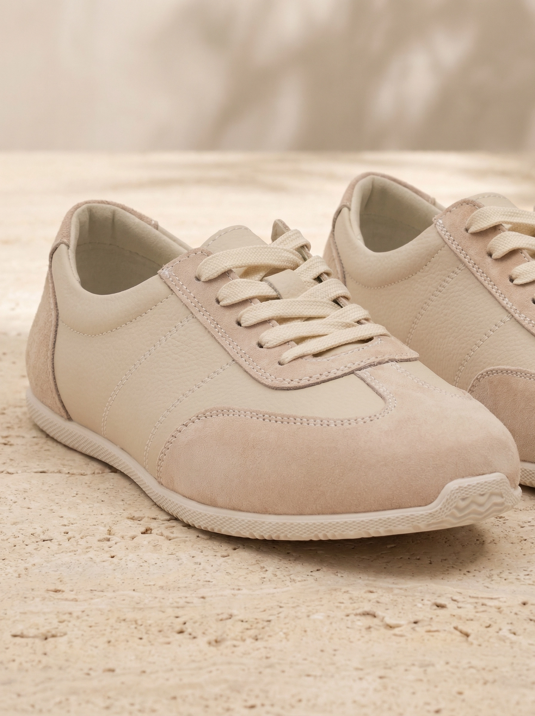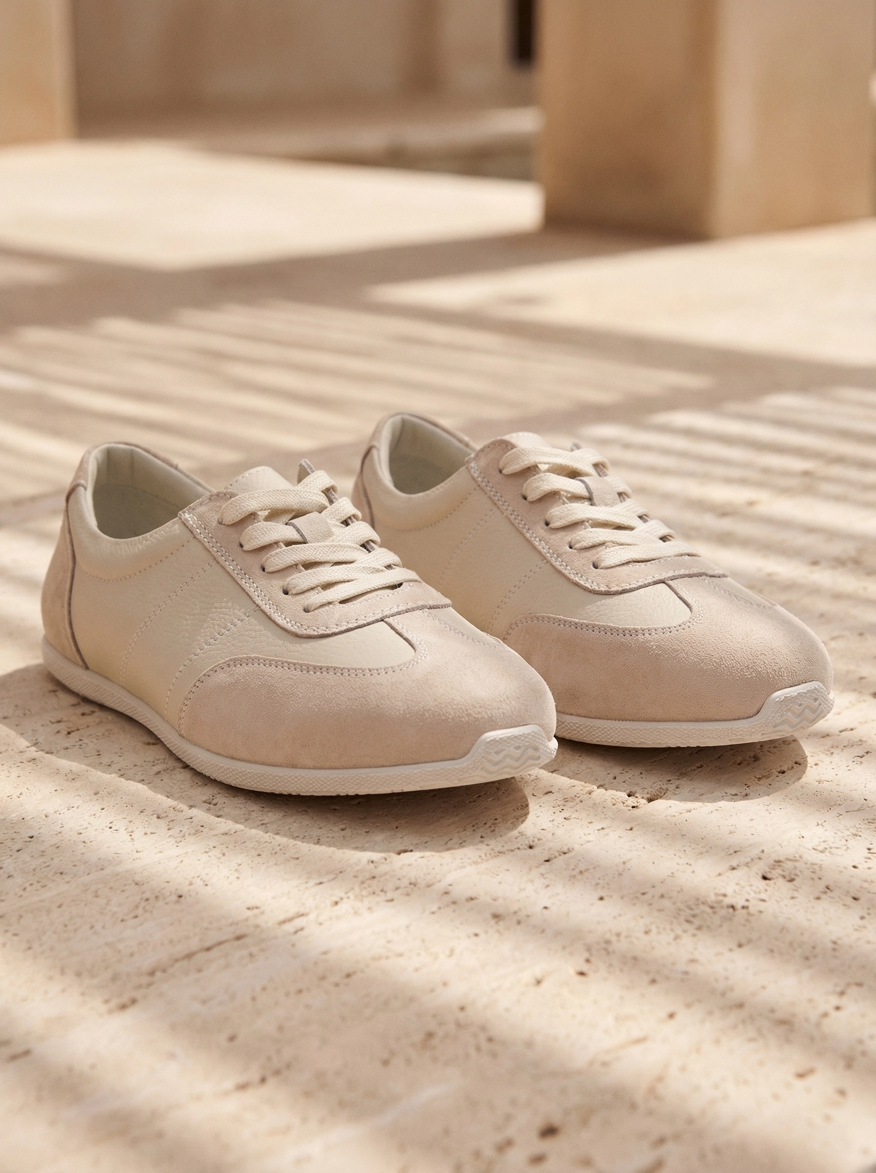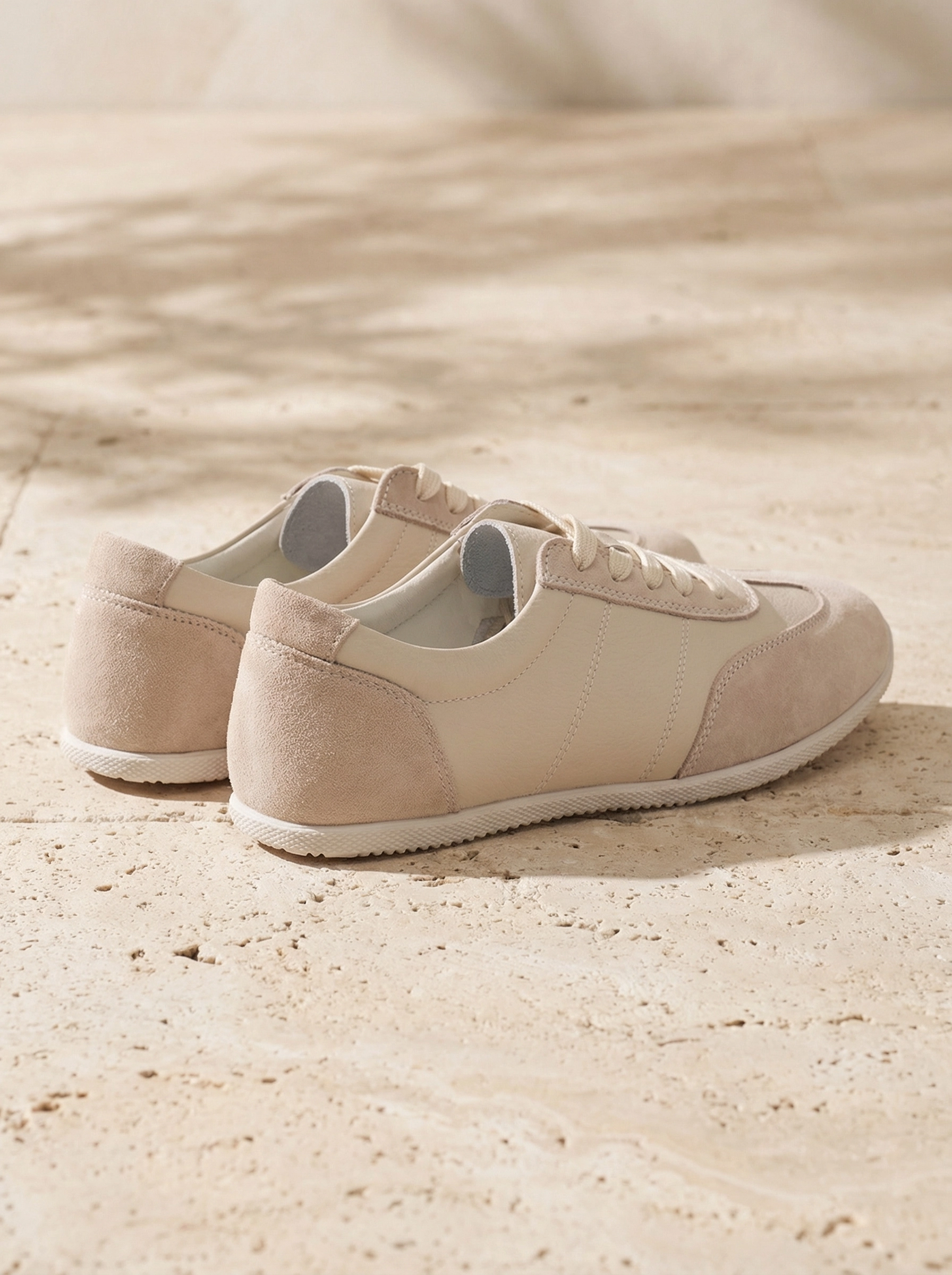 Легкие комбинированные кроссовки из натуральной кожи. Заостренный мыс. Фиксация на шнуровку. Тонкая подошва из термопластичной резины.