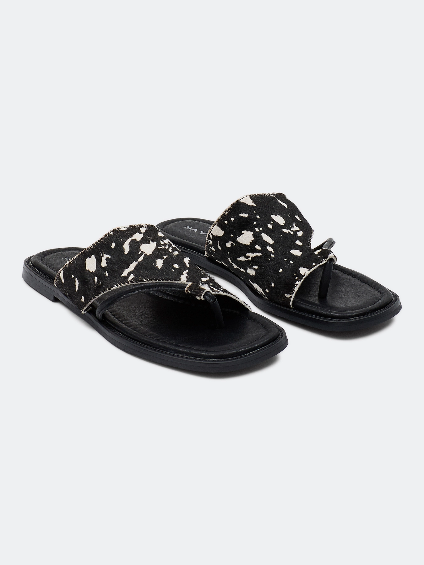Сабо вьетнамки из фактурной натуральной кожи с ремешком вокруг пальца. Квадратный мыс. Подошва из термопластичной резины.