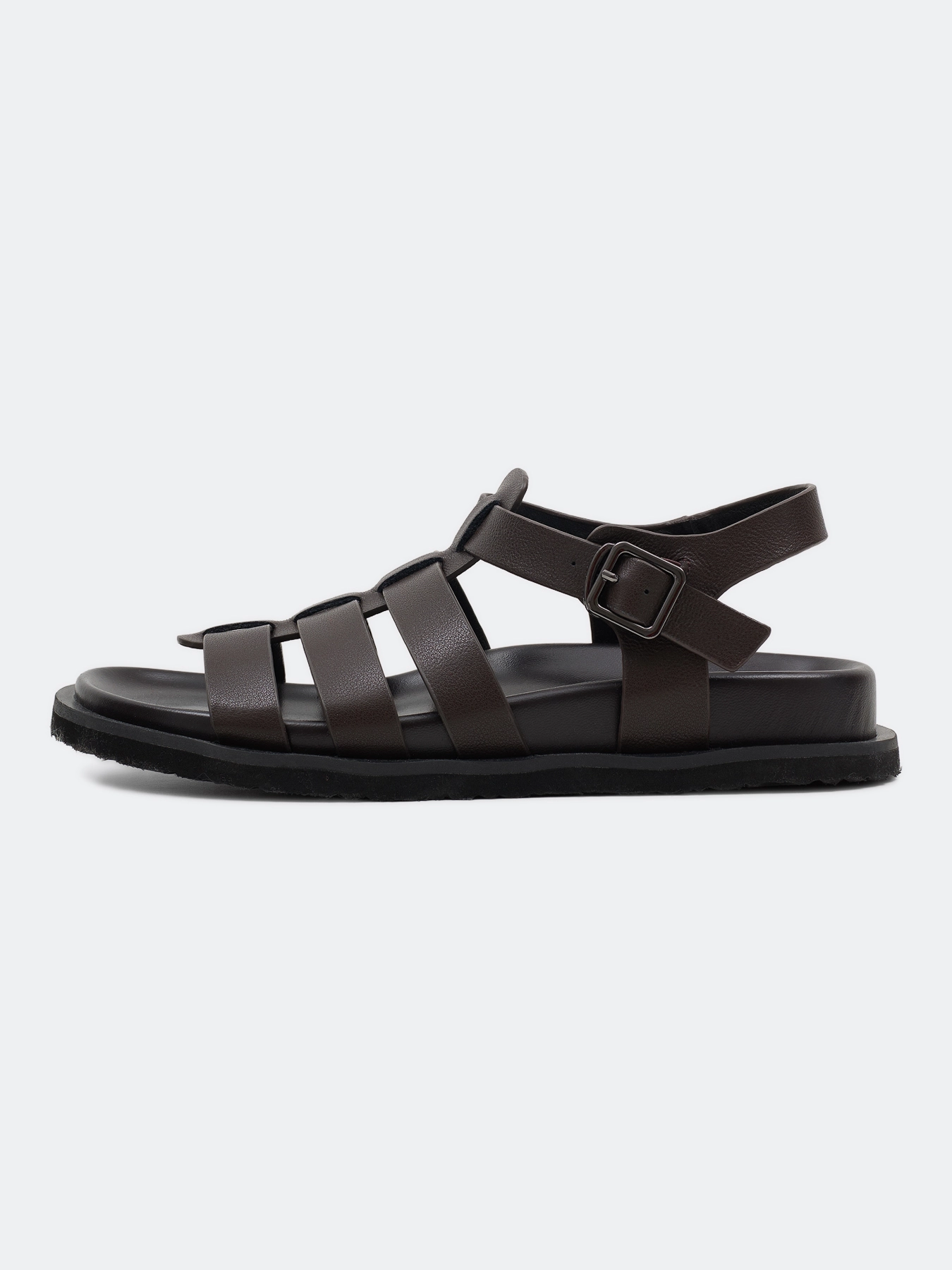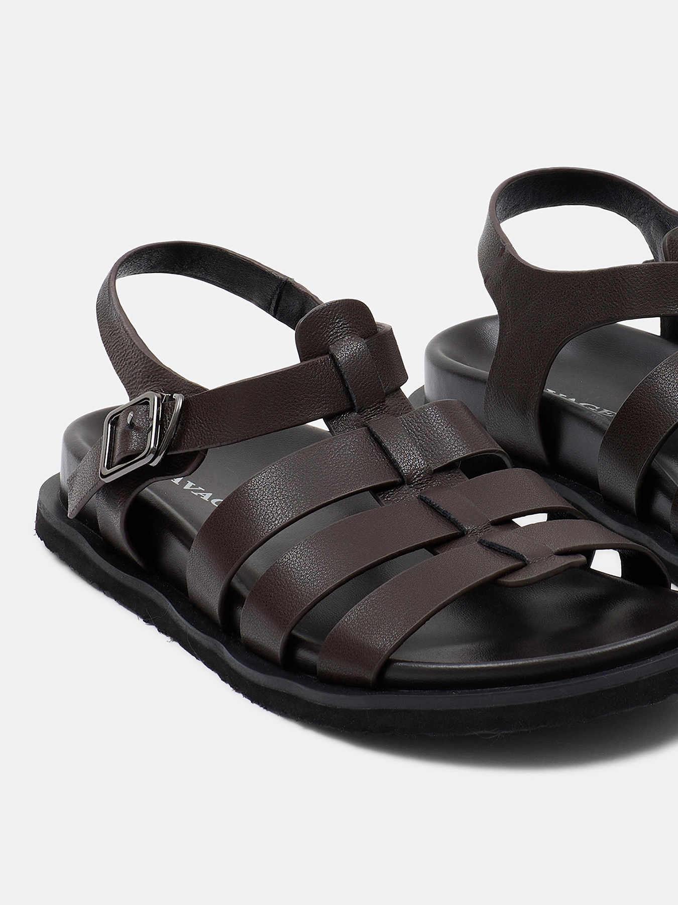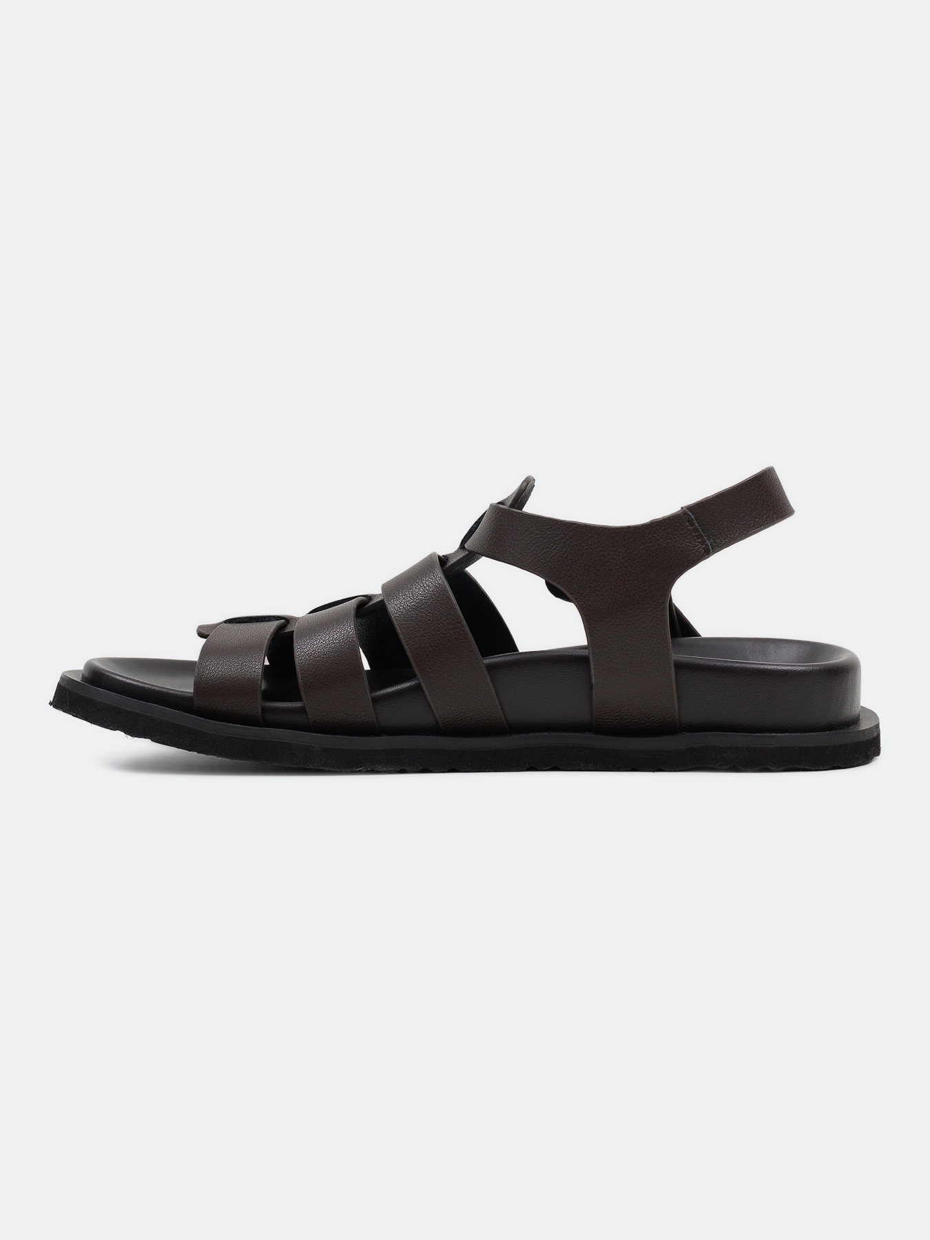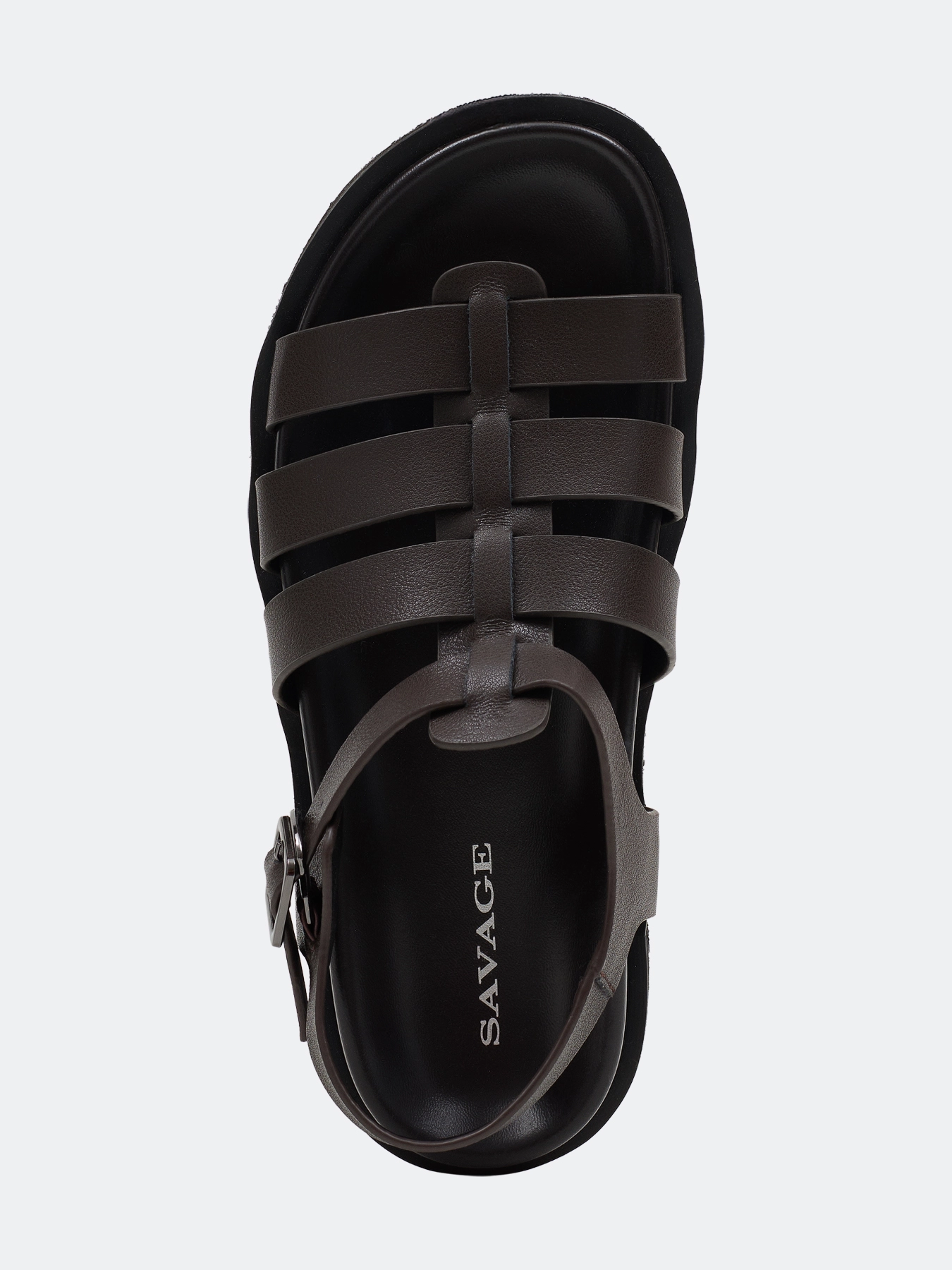 Сандалии из микрофибры на высокой подошве. Закругленный мыс. Фиксация на ремешок. Высокая подошва из термопластичной резины.