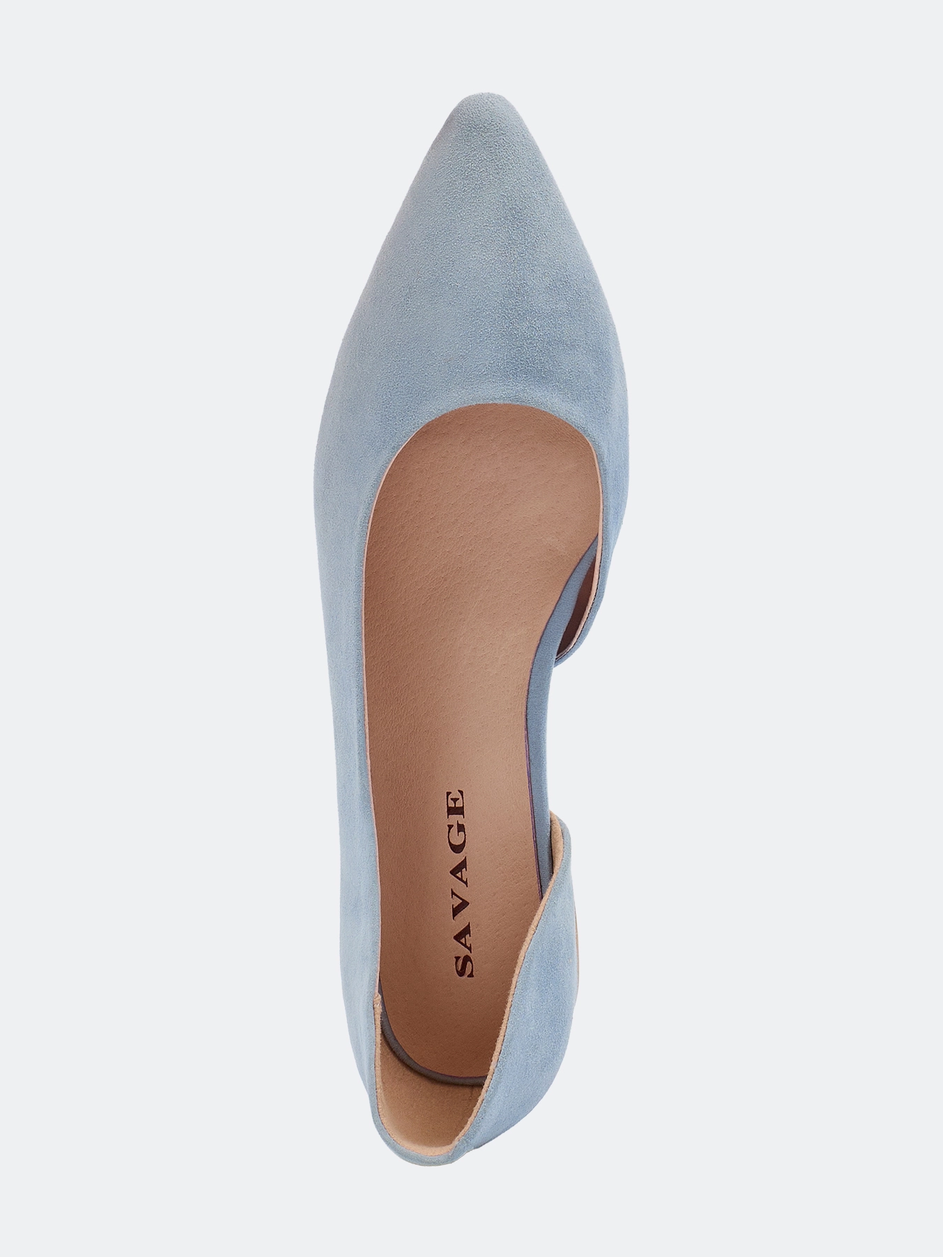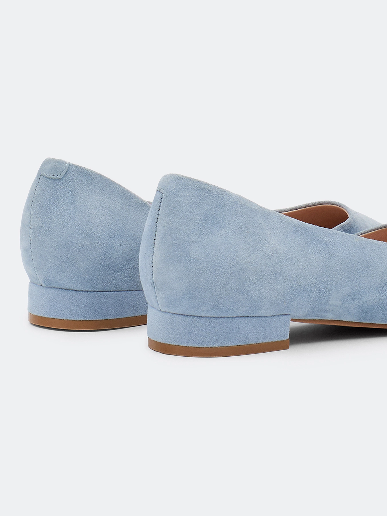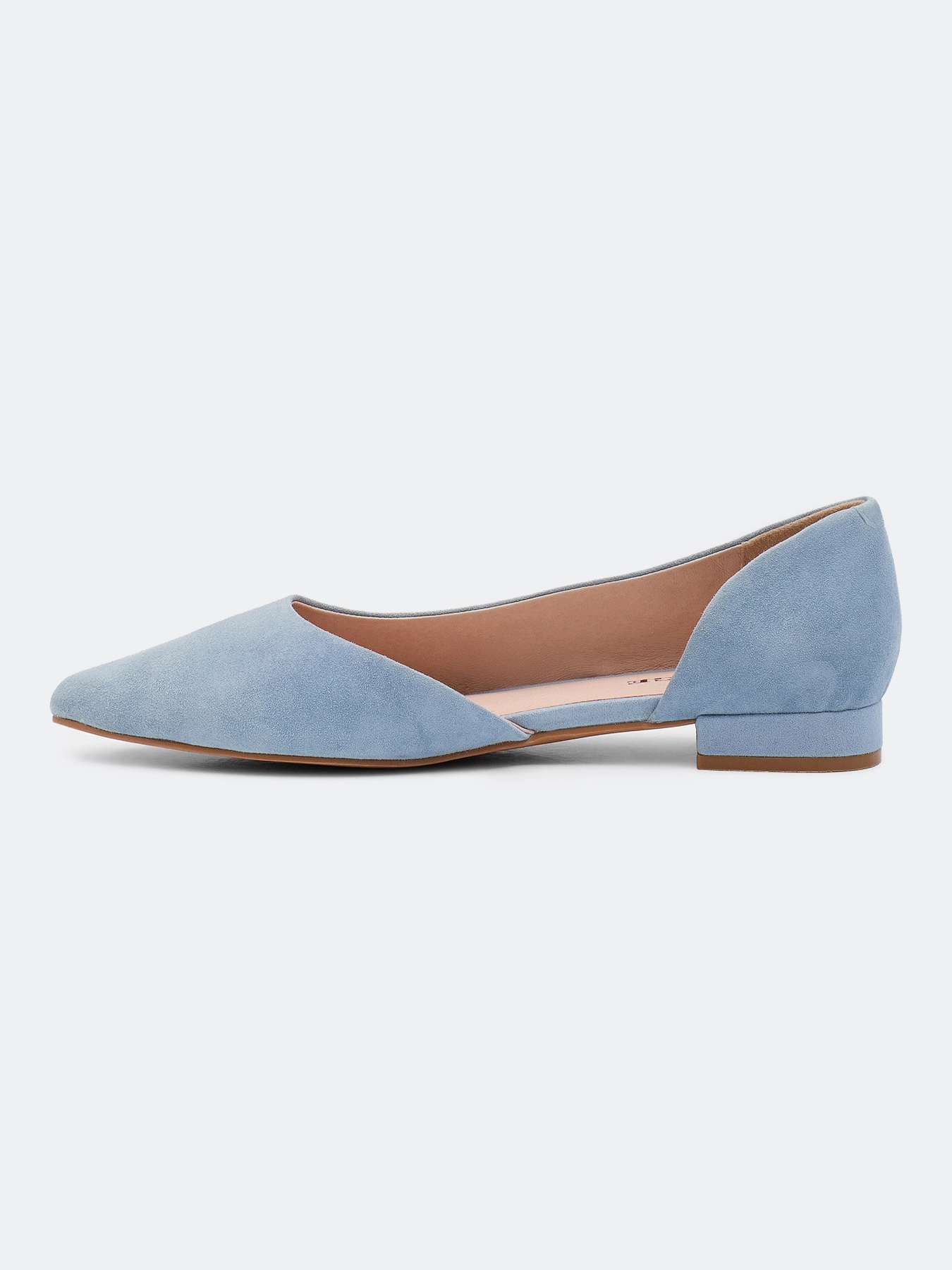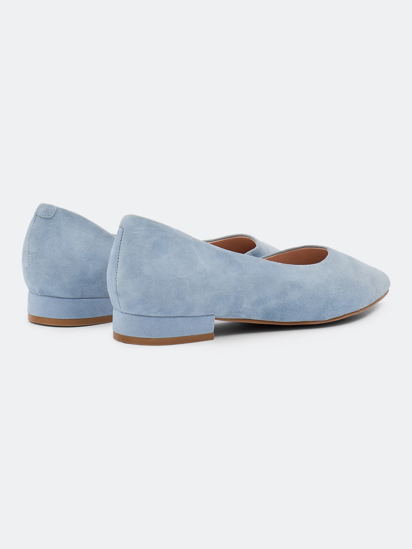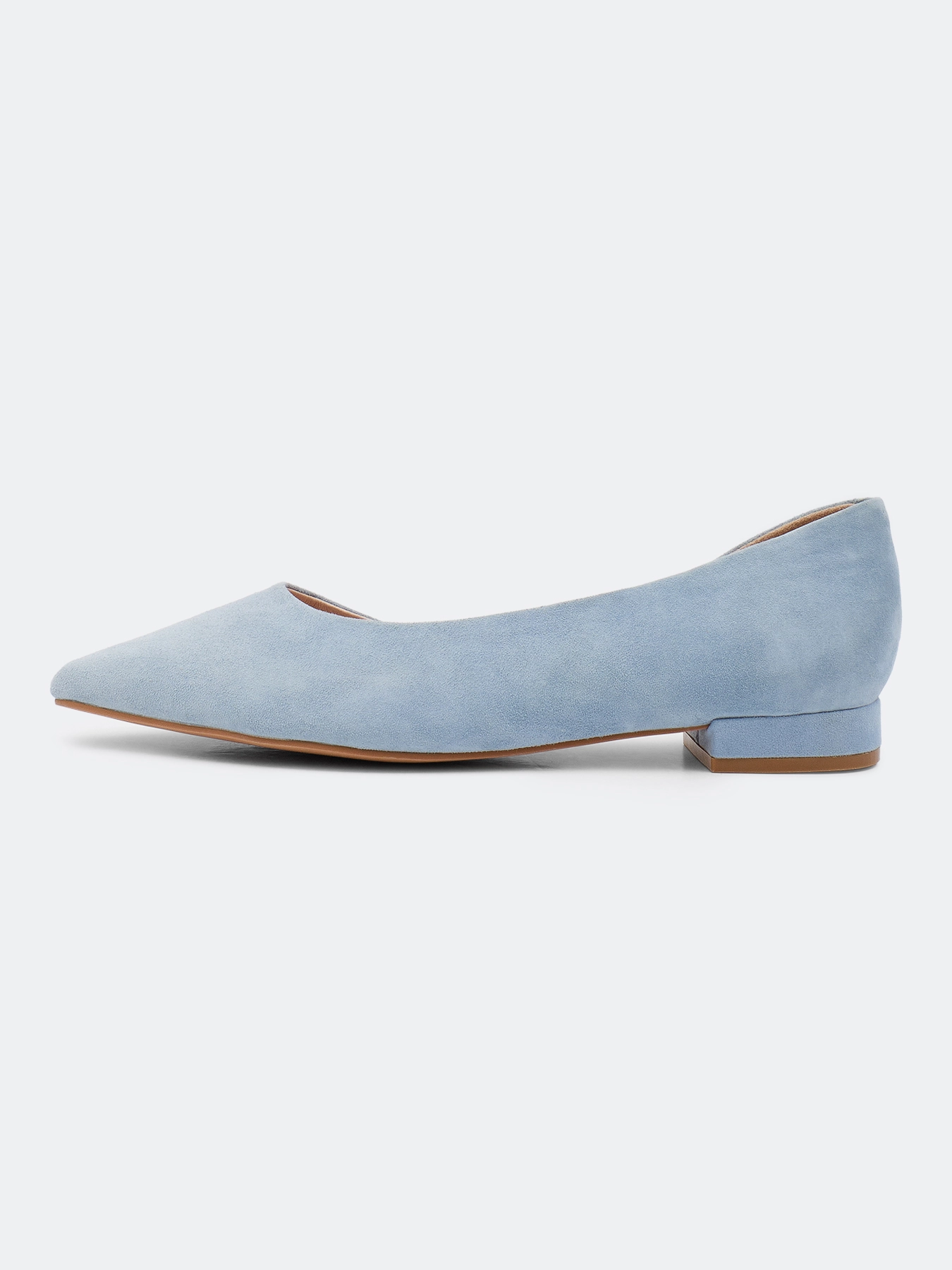 Базовые туфли лодочки из натуральной замши. Заостренный мыс. Низкий устойчивый каблук. Подкладка и стелька из натуральной кожи. Подошва из термопластичной резины.