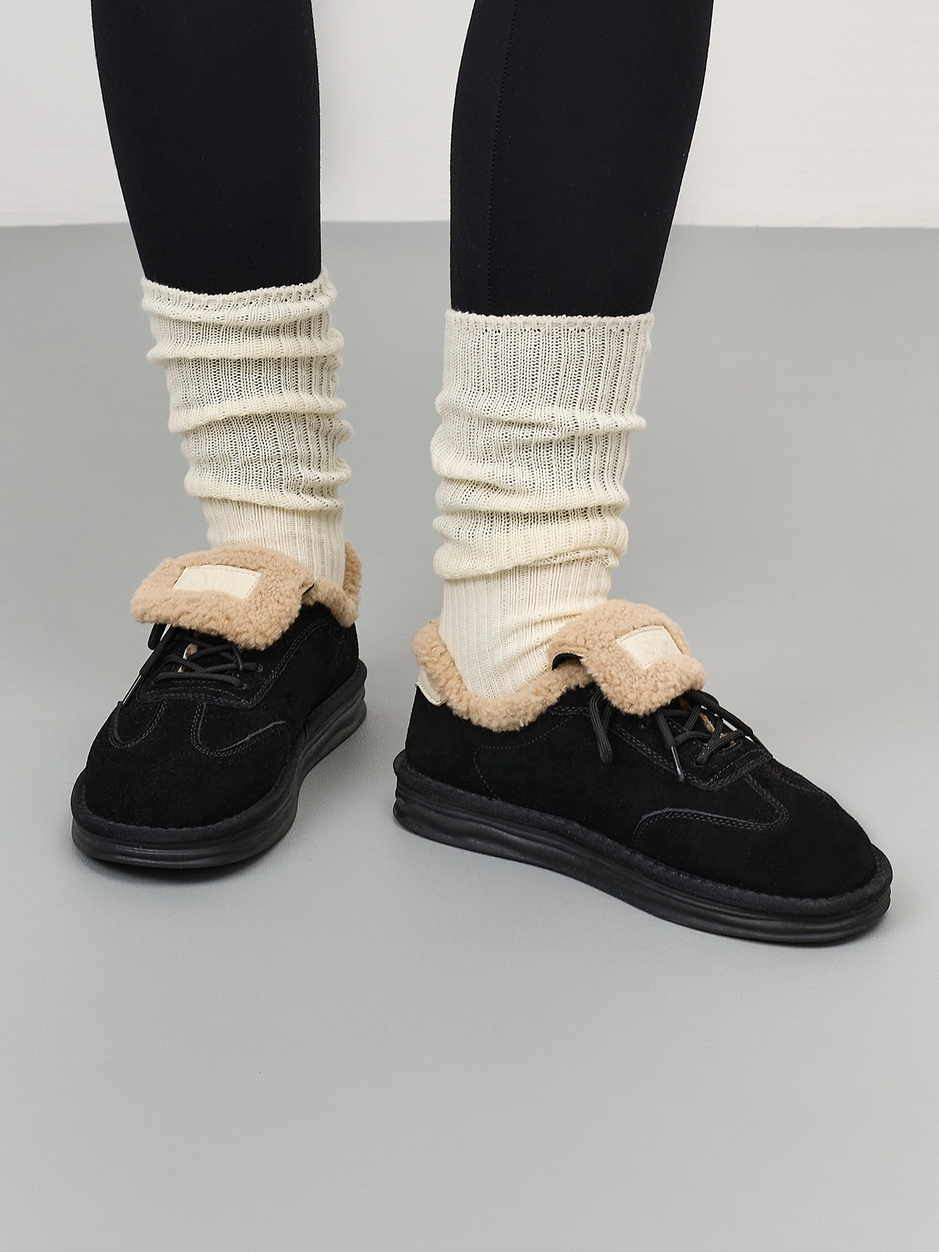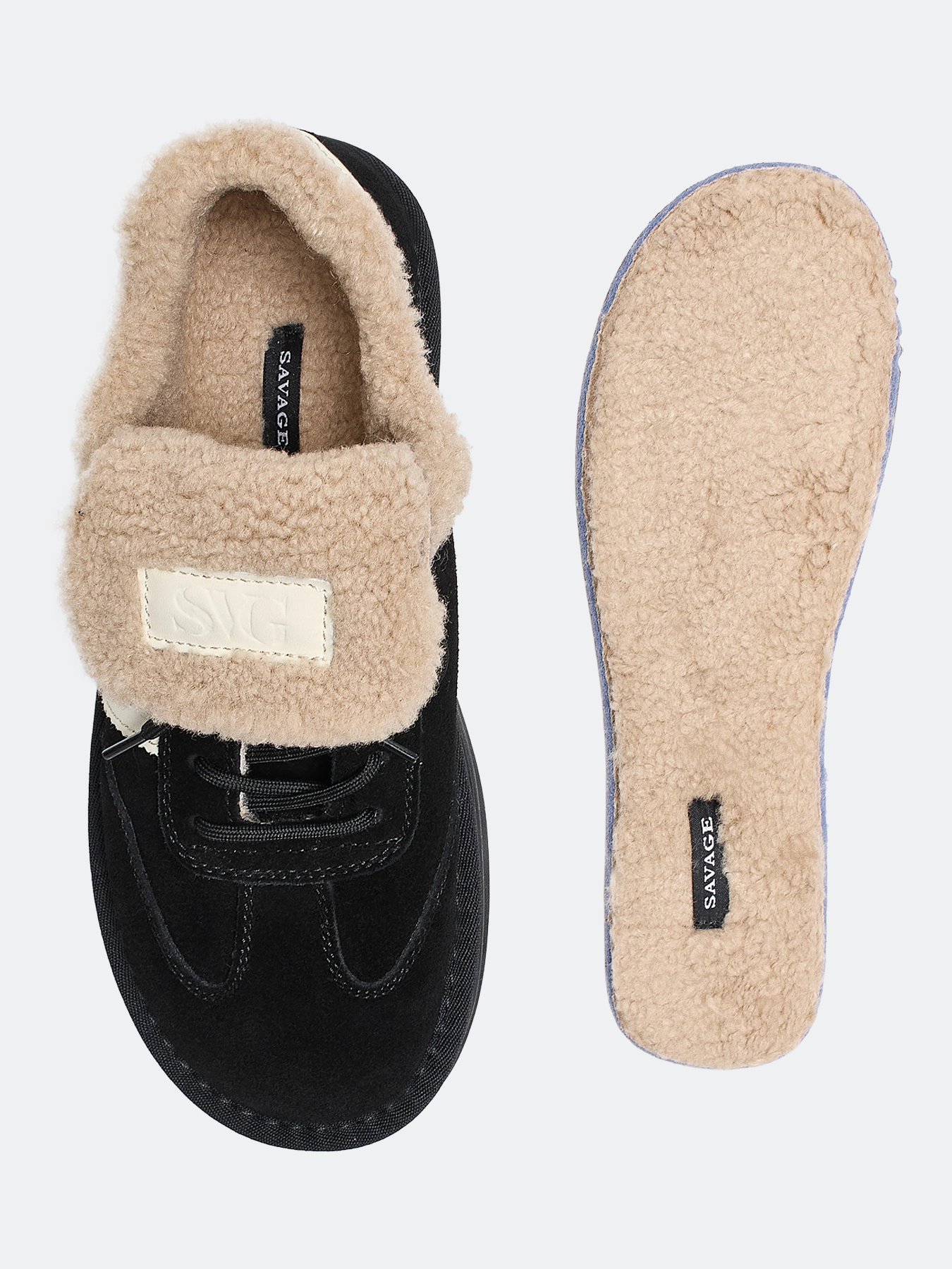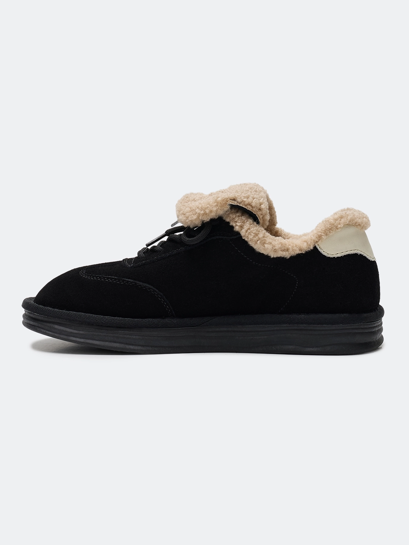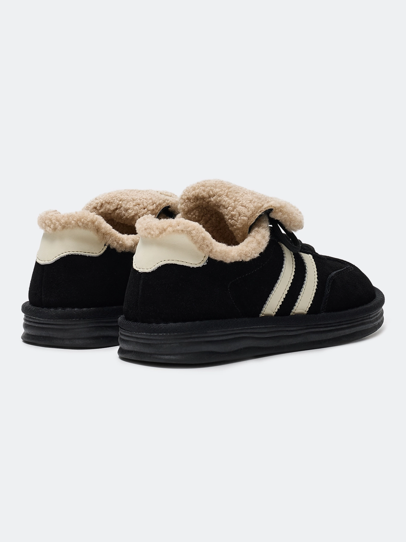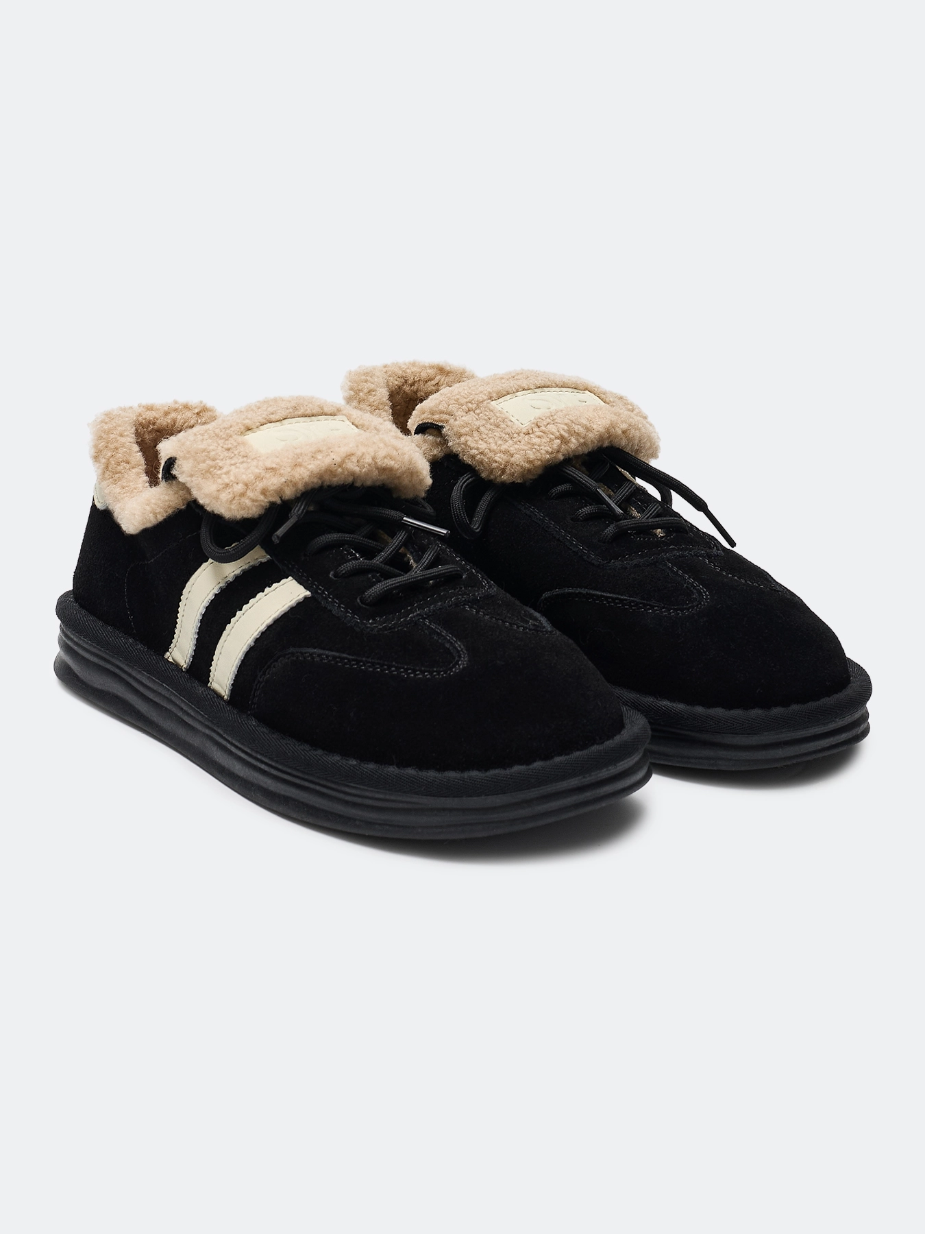 Утепленные кеды из натуральной замши с искусственным мехом. Закругленный мыс. Фиксация на шнурки. Подкладка и стелька из искусственного меха. Легкая подошва из термопластичной резины.