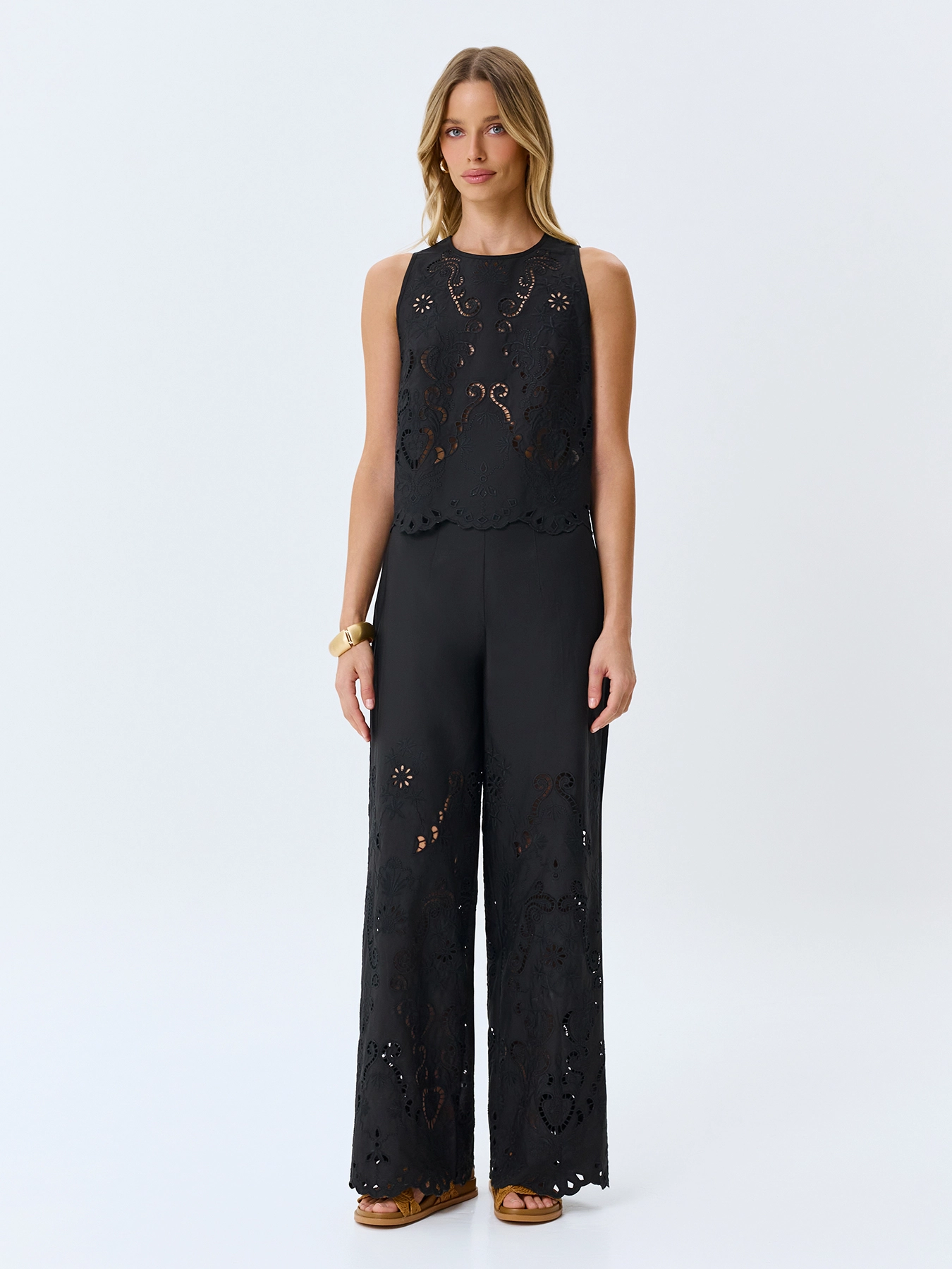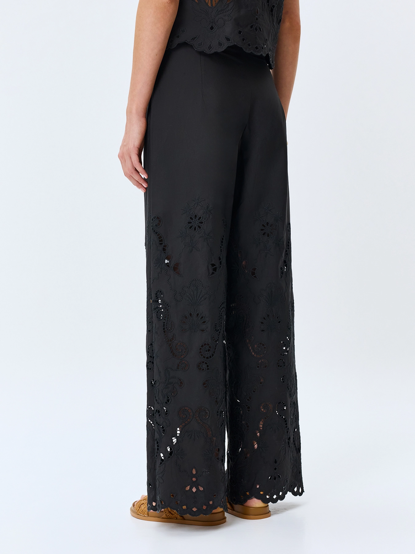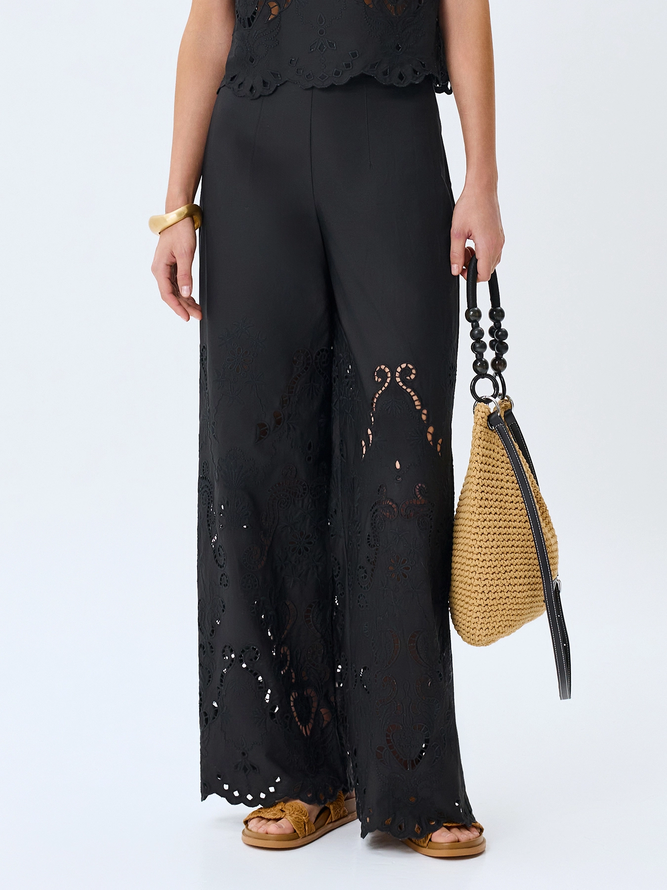Ажурные брюки с купонной вышивкой ришелье. Свободный силуэт. Застежка на молнию. В составе 100% хлопок. Комплект с 63336.