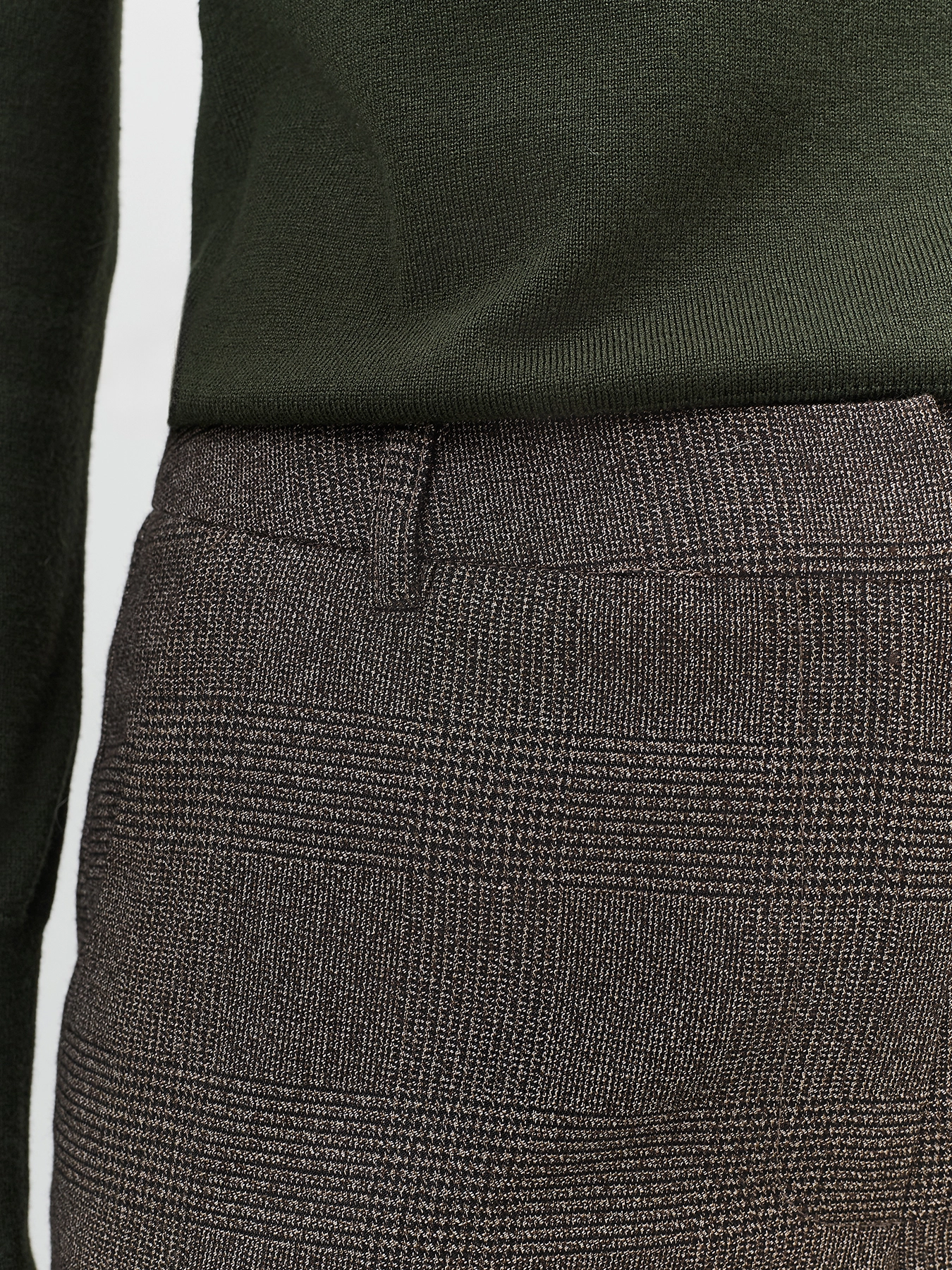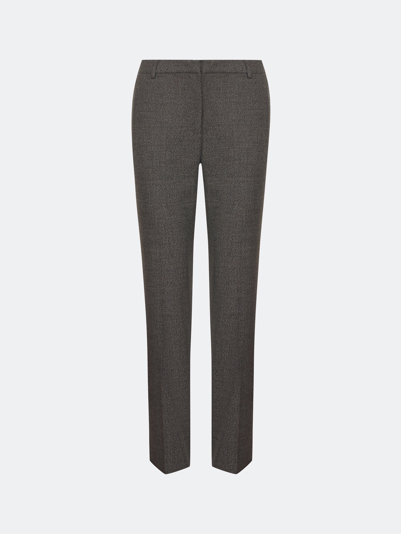 Базовые брюки в деликатную клетку. Прямой силуэт заужен к низу. Боковые карманы в швах. Застежка на молнию и крючок. Дополнены мягкими стрелками. В составе вискоза.