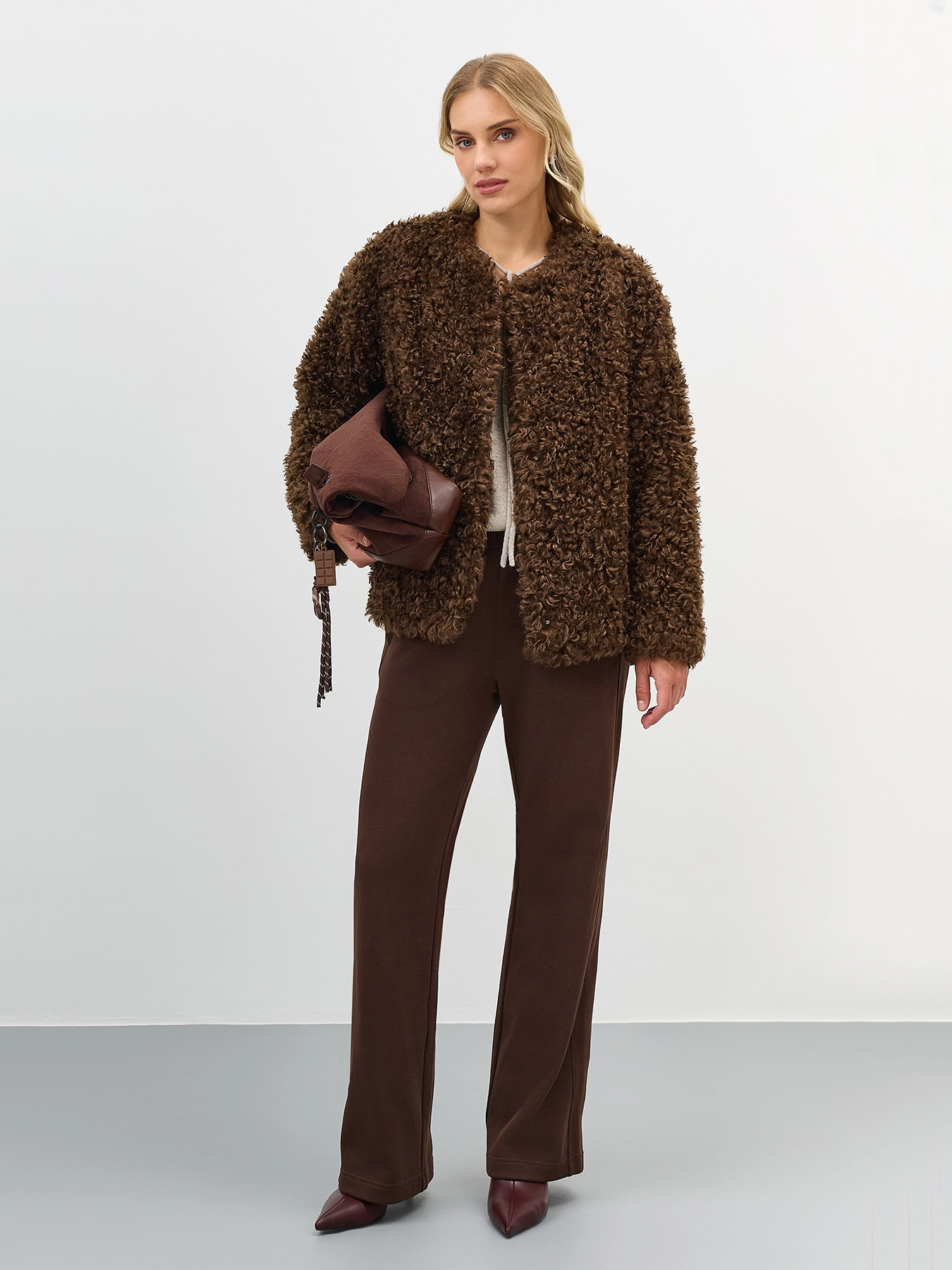 Брюки из смесового трикотажного хлопка. Прямой силуэт. Резинка по линии талии. Боковые карманы в швах. Дополнены одним задним карманом. Комплект с арт. 60817.