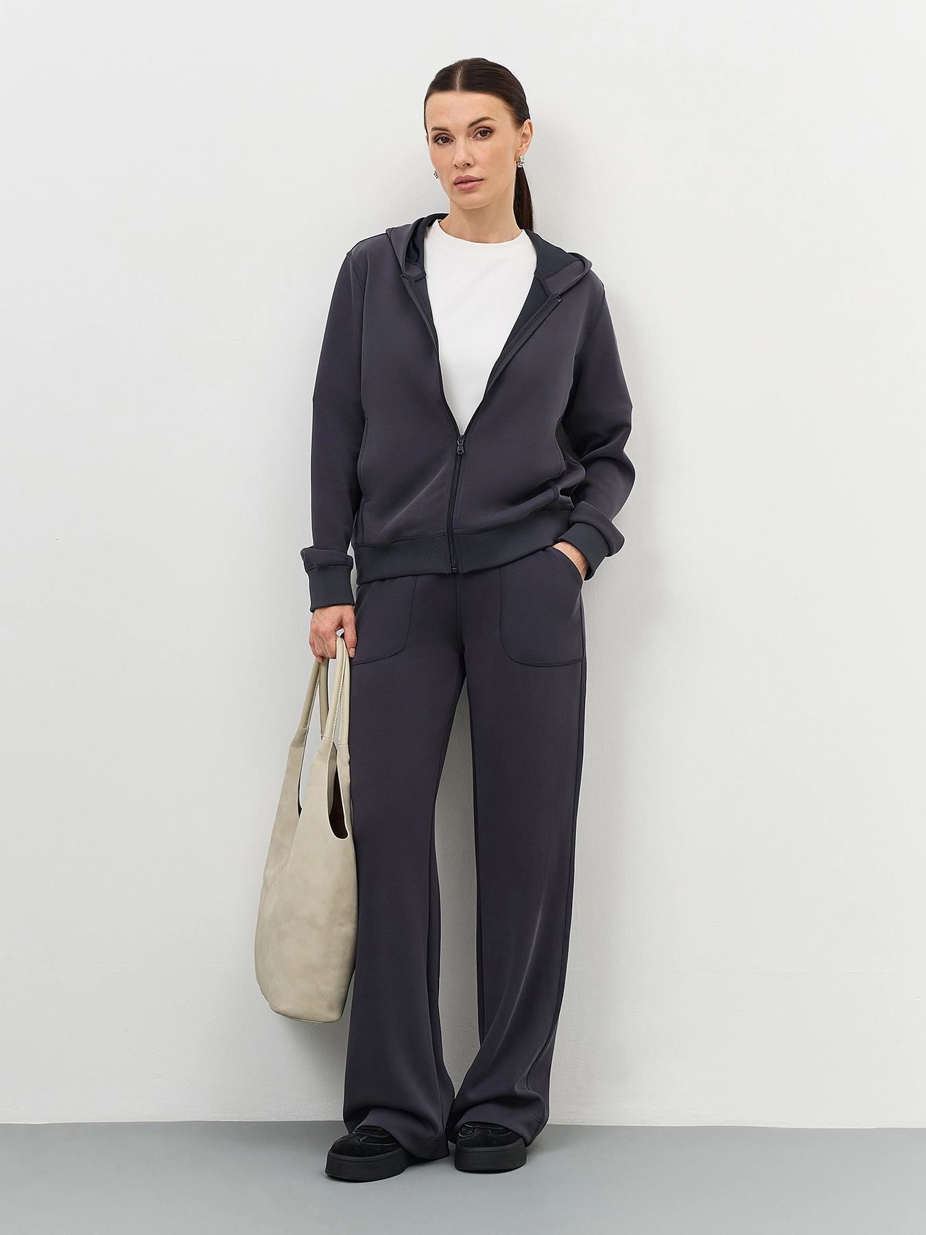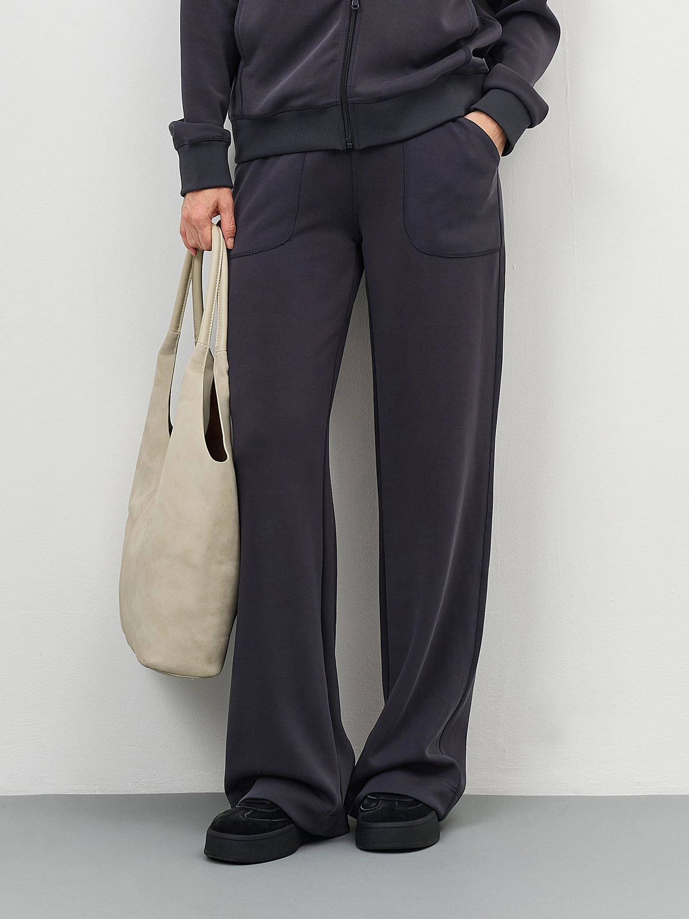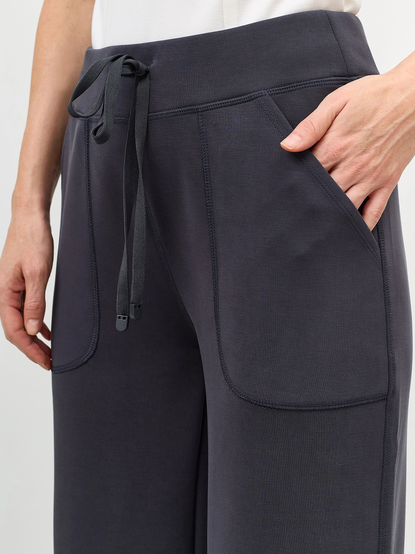 Трикотажные брюки из смесового модала с широким поясом. Прямой силуэт. Резинка и шнурок по линии талии. Боковые карманы в швах с отстрочкрй в тон. Комплект с арт. 60866.