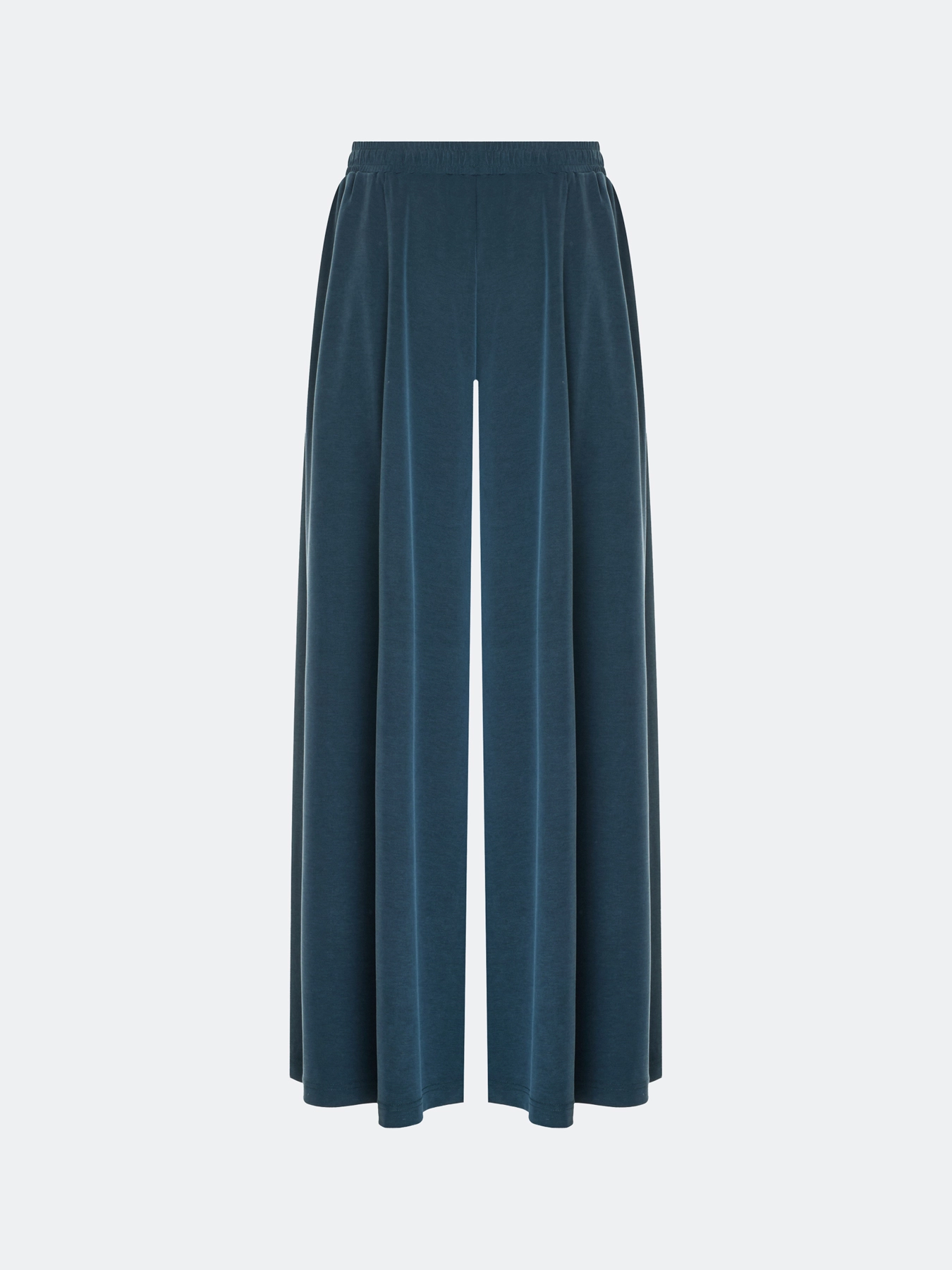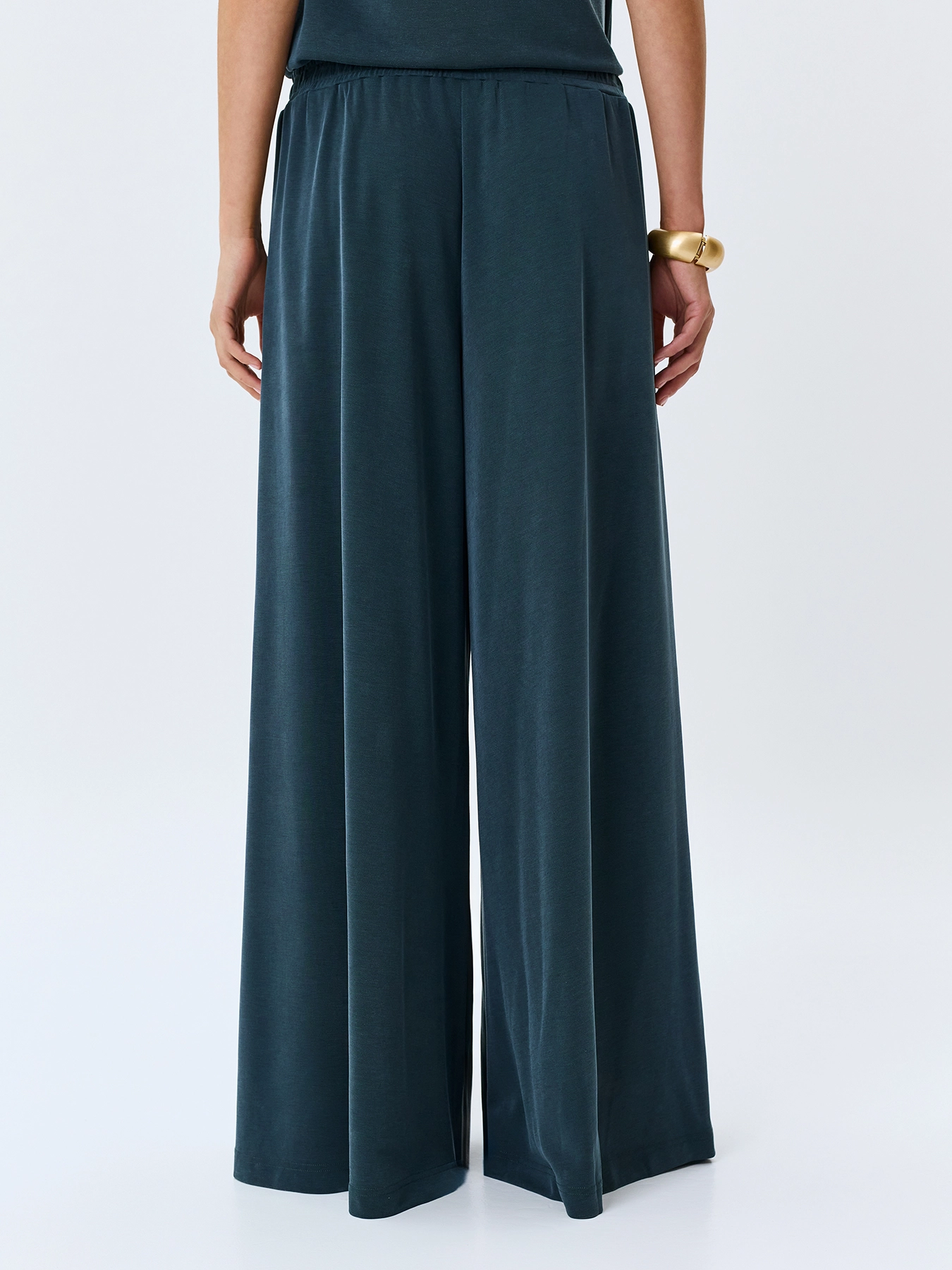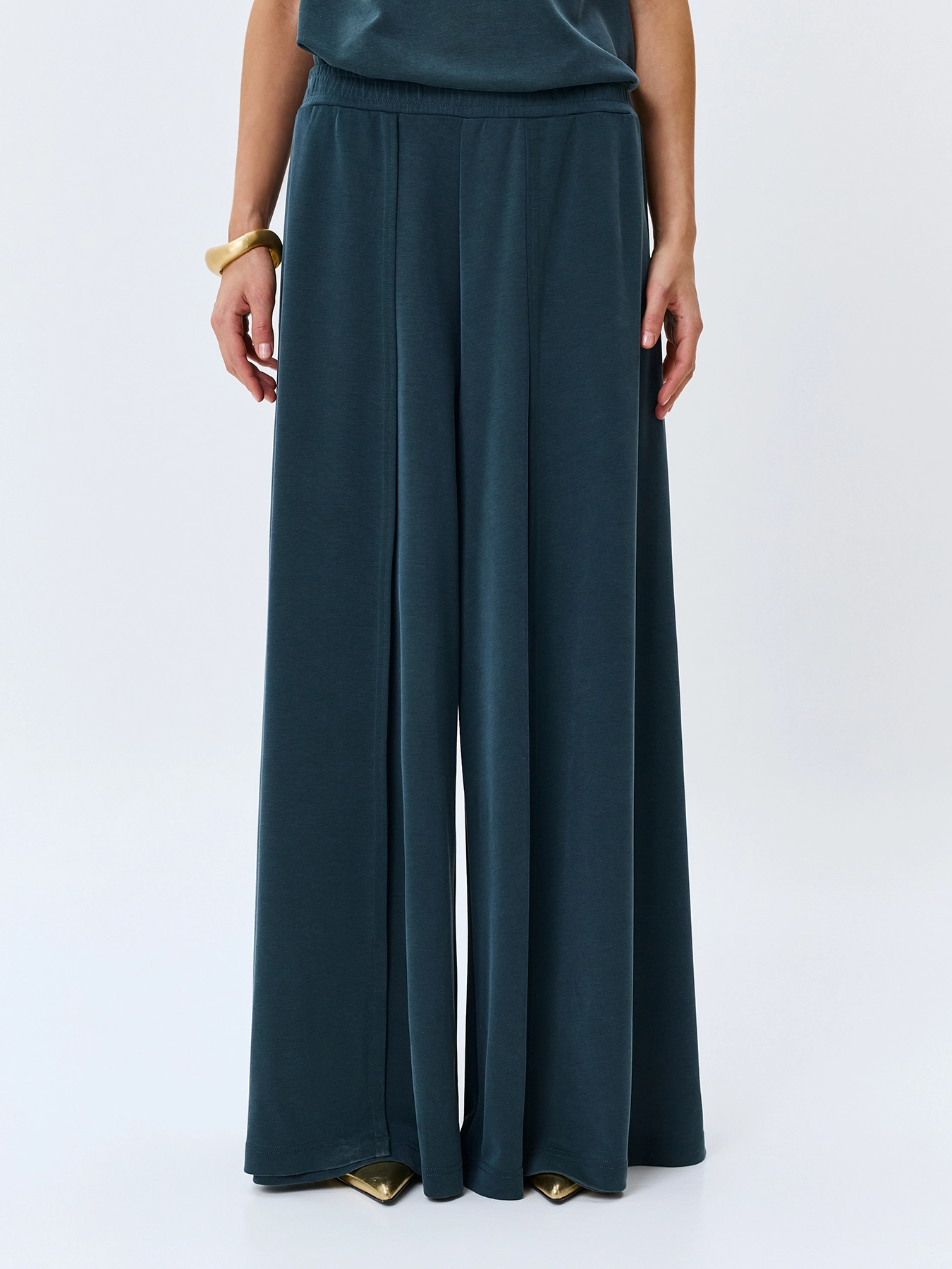 Широкие брюки палаццо из модала. Резинка по линии талии. Дополнены мягкими глубокими складками и высокими разрезами. Комплект с 63853.