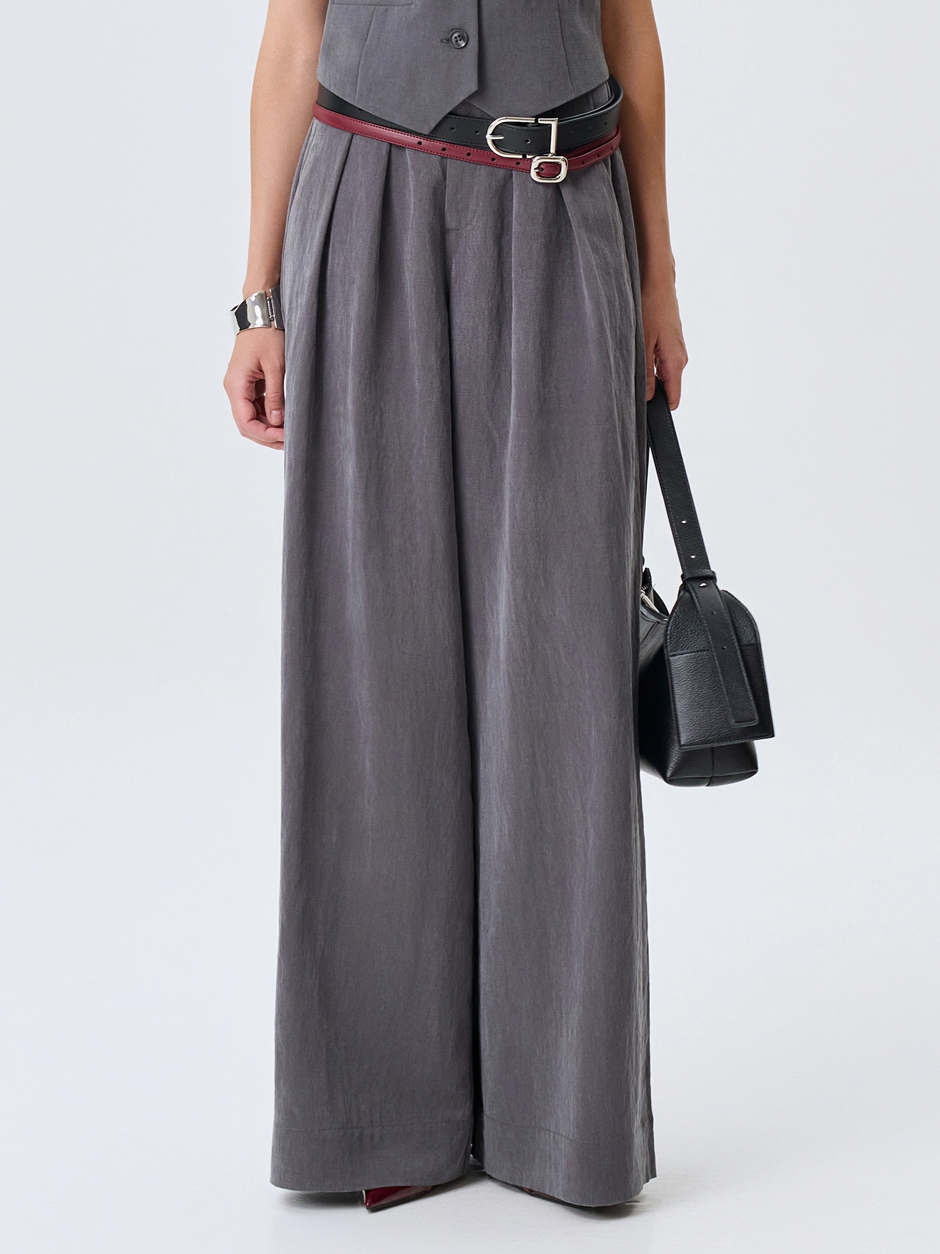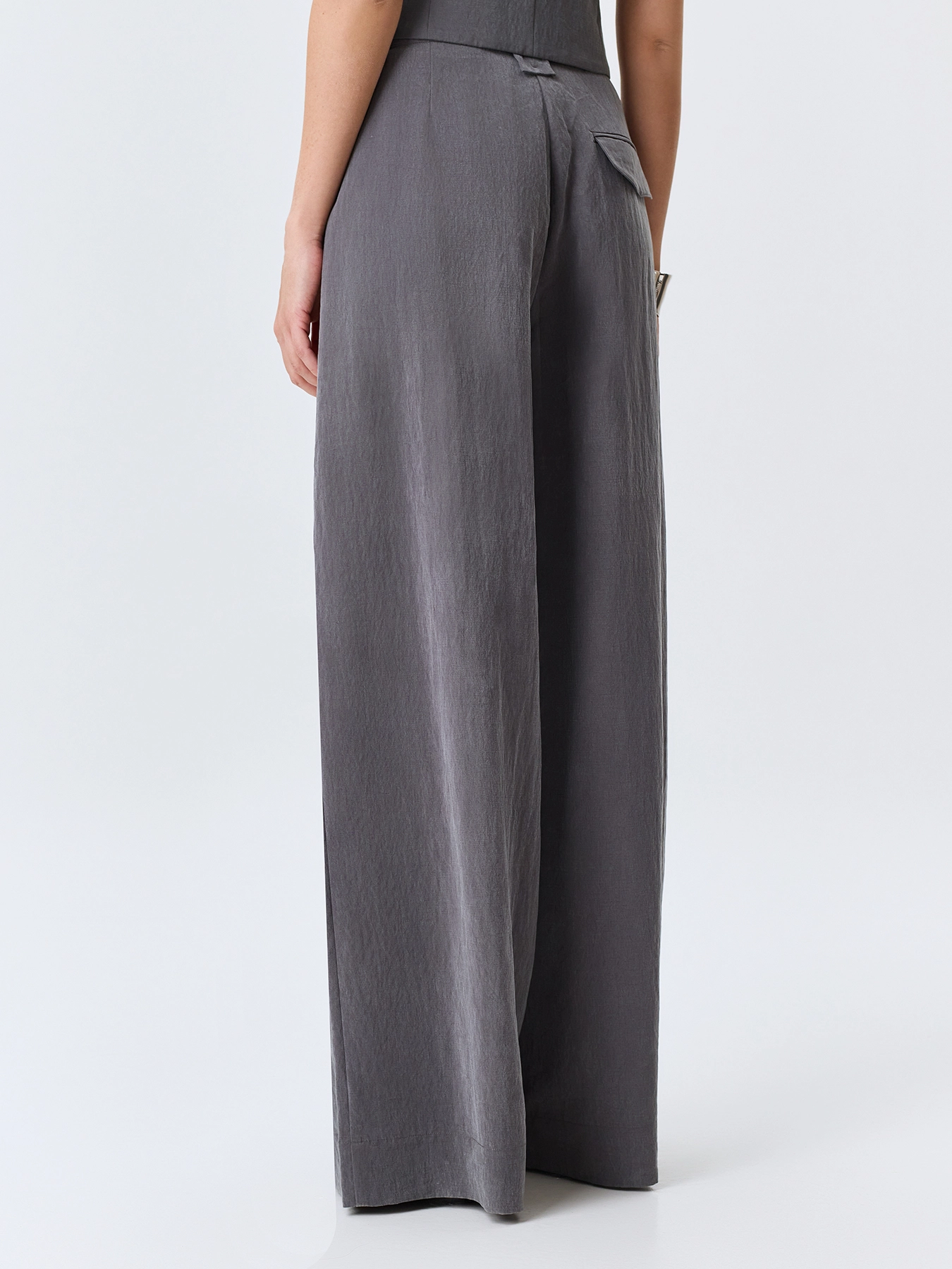 Широки брюки из лиоцелла. Свободный силуэт. Застежка на молнию и крючок. Боковые карманы в швах. Дополнены акцентными шлевками и складками. Задний карман с клапаном. Комплект с 63365.