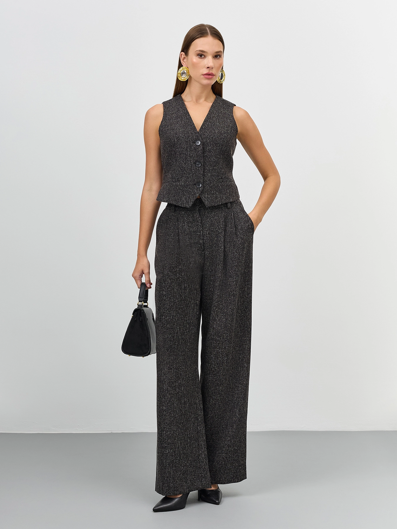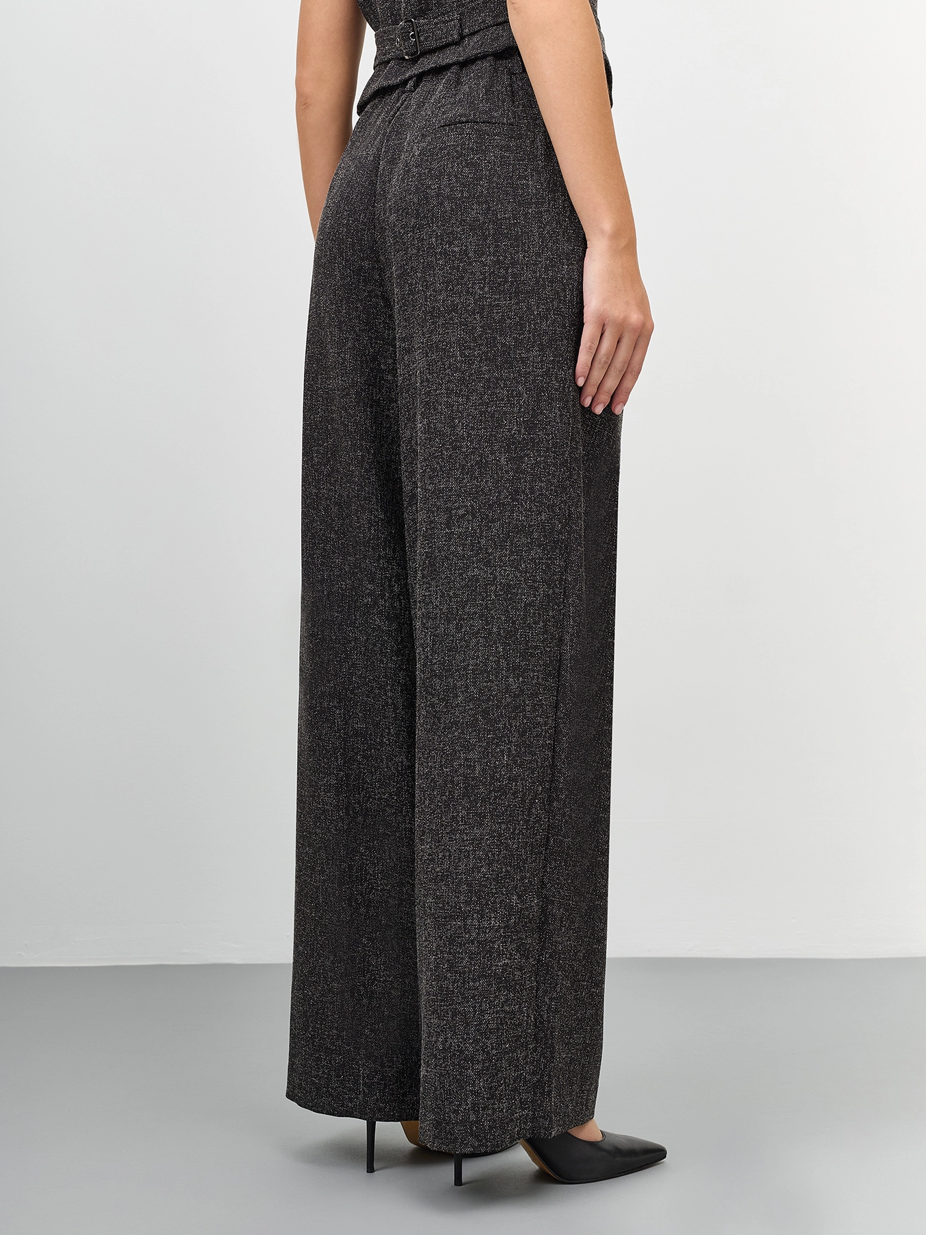 Брюки с мягкими складками из смесовой вискозы. Свободный силуэт. Застежка на молнию и пуговицу. Боковые карманы в швах. Высокая посадка. Комплект с арт. 60331.