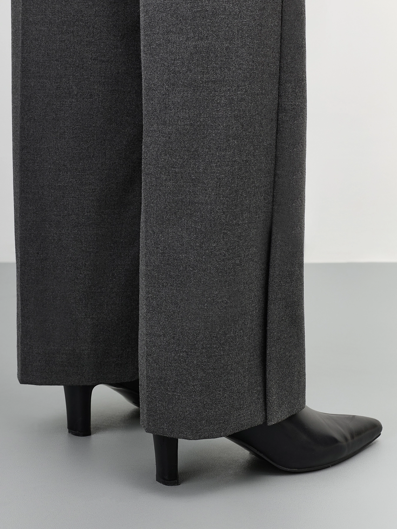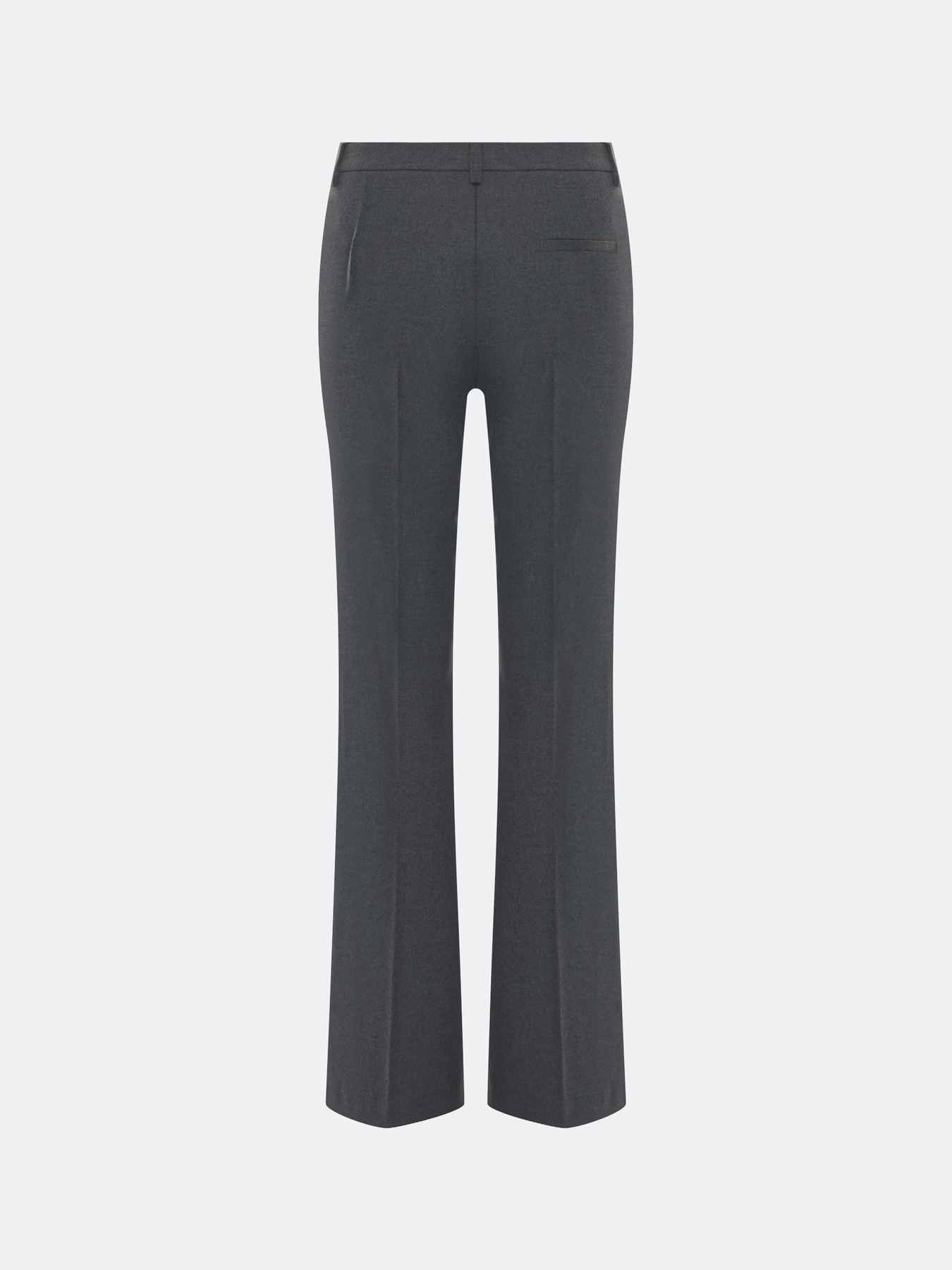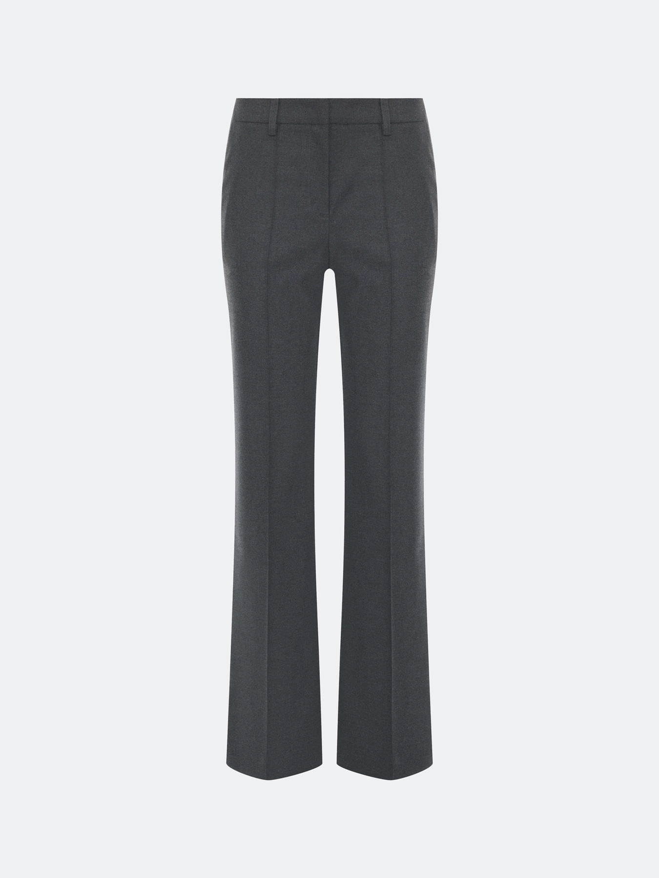Меланжевые брюки со стрелками. Прямой силуэт расширен к низу. Застежка на молнию и крючок. Боковые карманы в швах. Дополнены разрезами-шлицами по низу. В составе вискоза.