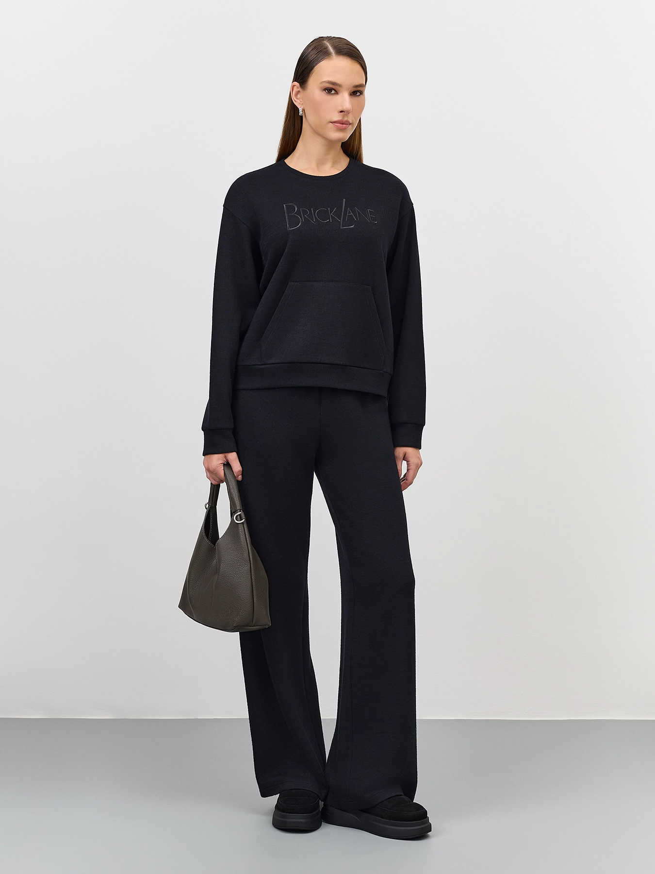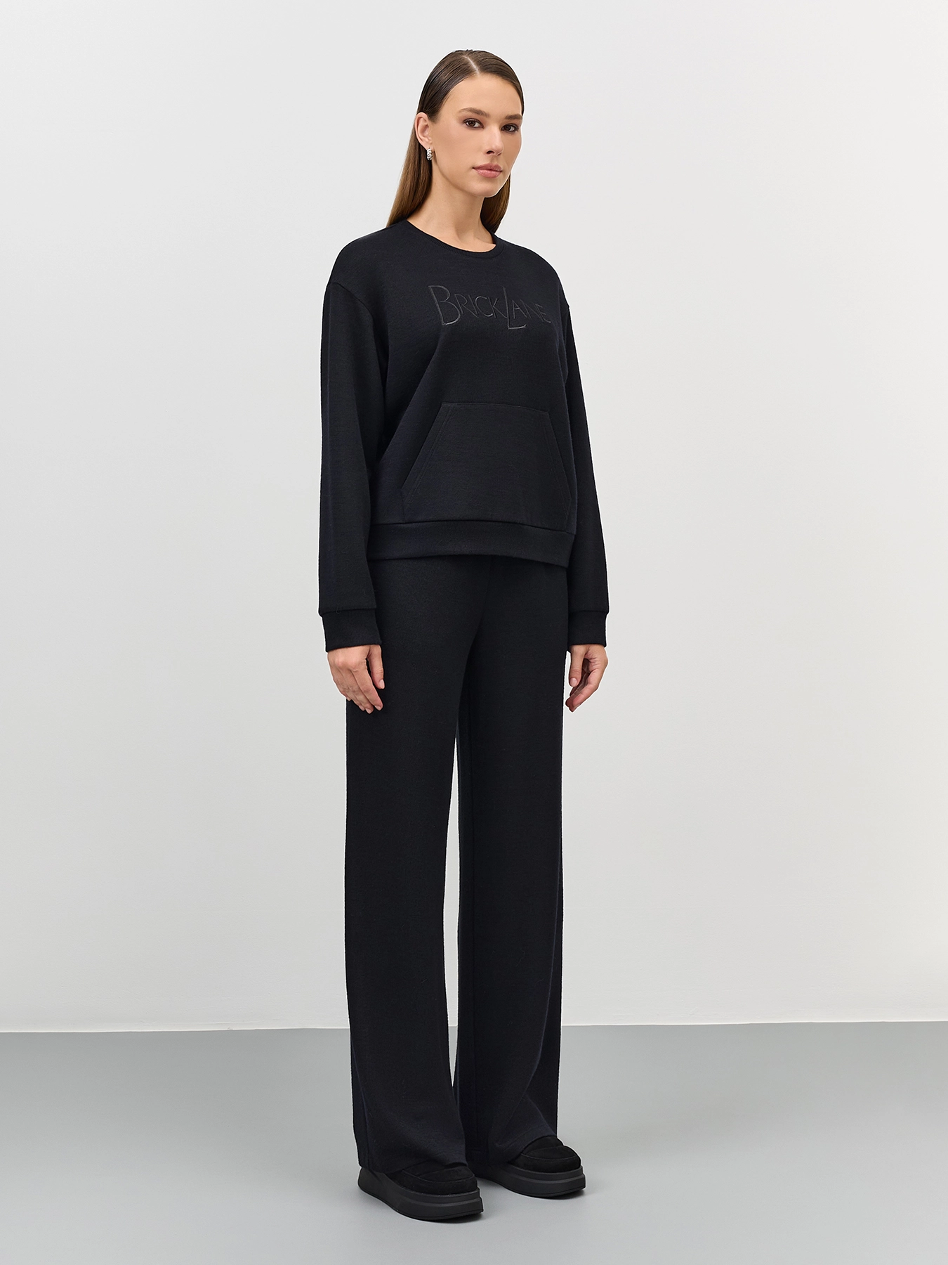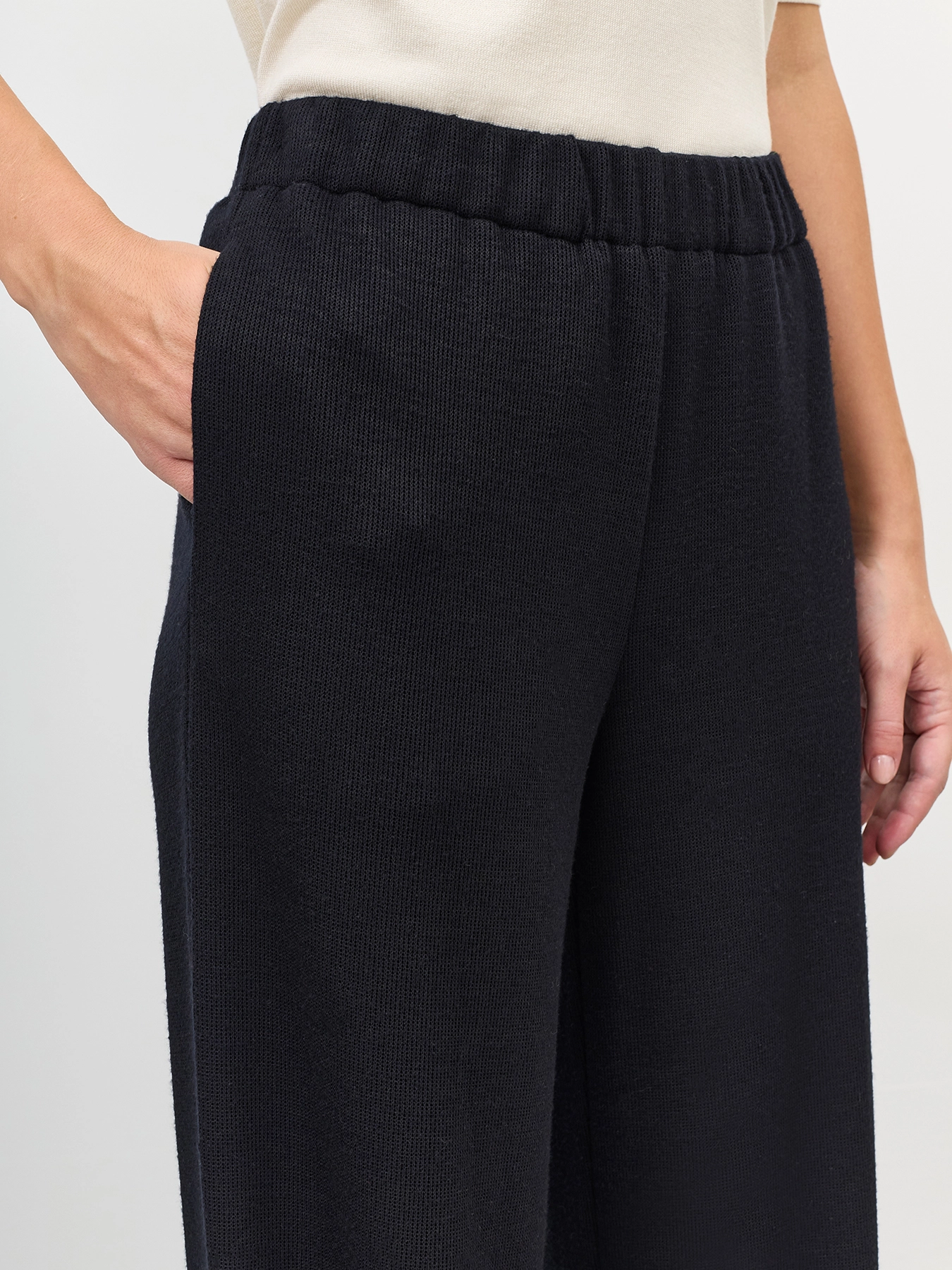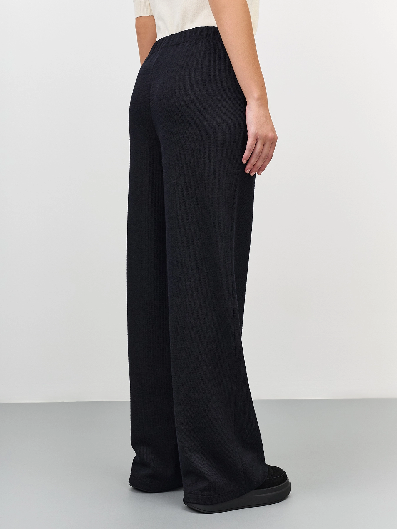 Свободные трикотажные широкие брюки из смесовой вискозы. Резинка по линии талии. Боковые карманы в швах. Комплект с арт. 60839.