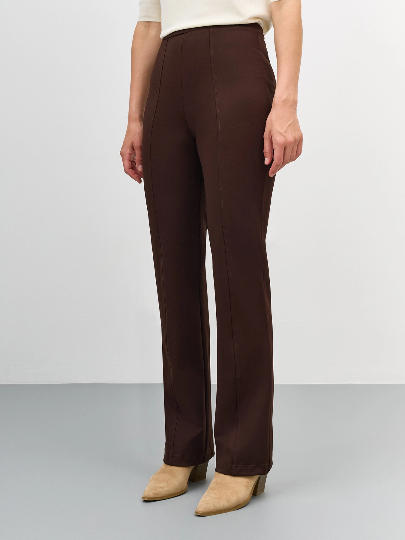 Брюки из трикотажной вискозы с акцентными рельефами. Облегающий силуэт. Резинка по линии талии. В составе спандекс.
