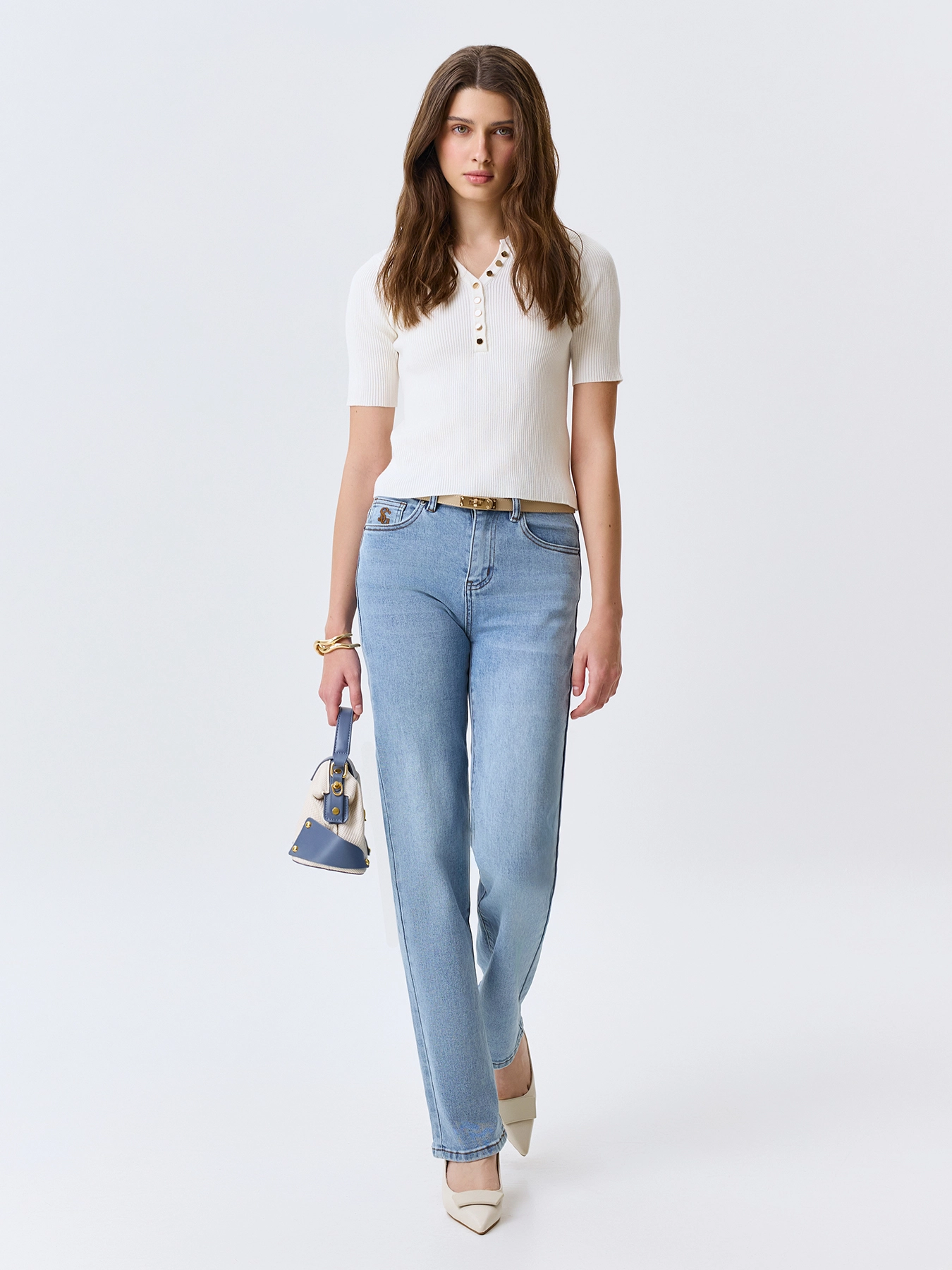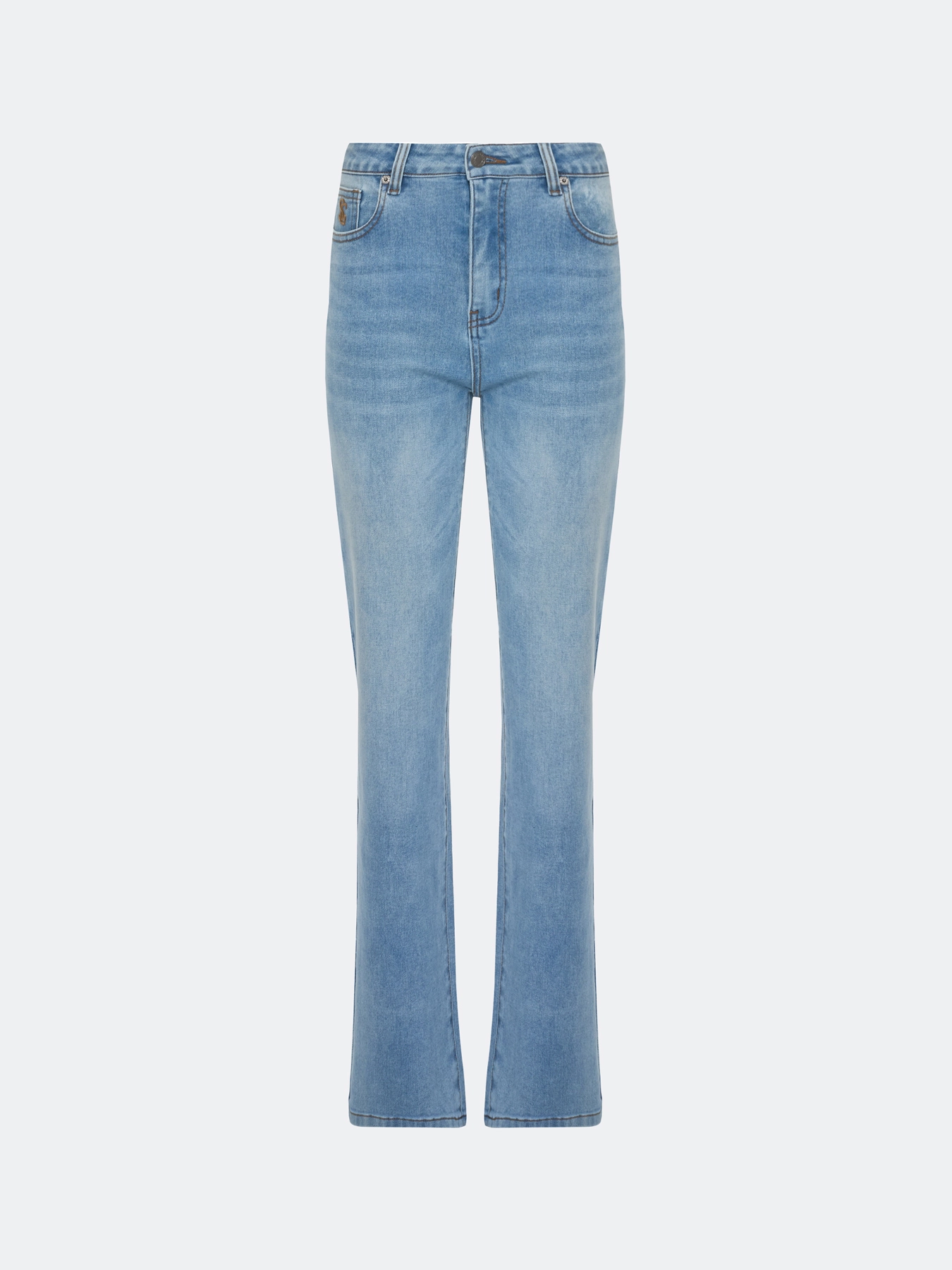 Базовые джинсы Straight fit средней посадки. Классическая застежка на молнию и металлическую пуговицу. Пять карманов. В составе спандекс.