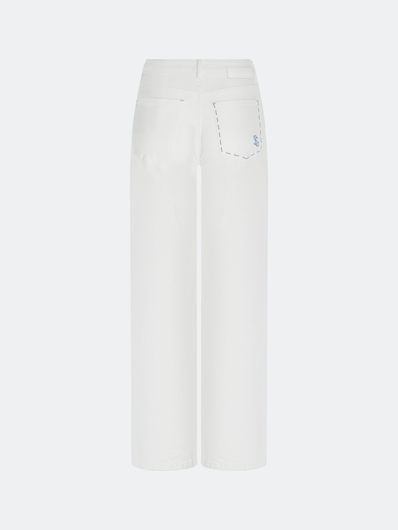 Белые джинсы с вышивкой на заднем кармане. Прямой силуэт. Застежка на молнию и металлическую пуговицу. Пять карманов. Дополнены яркой фурнитурой. В составе спандекс.