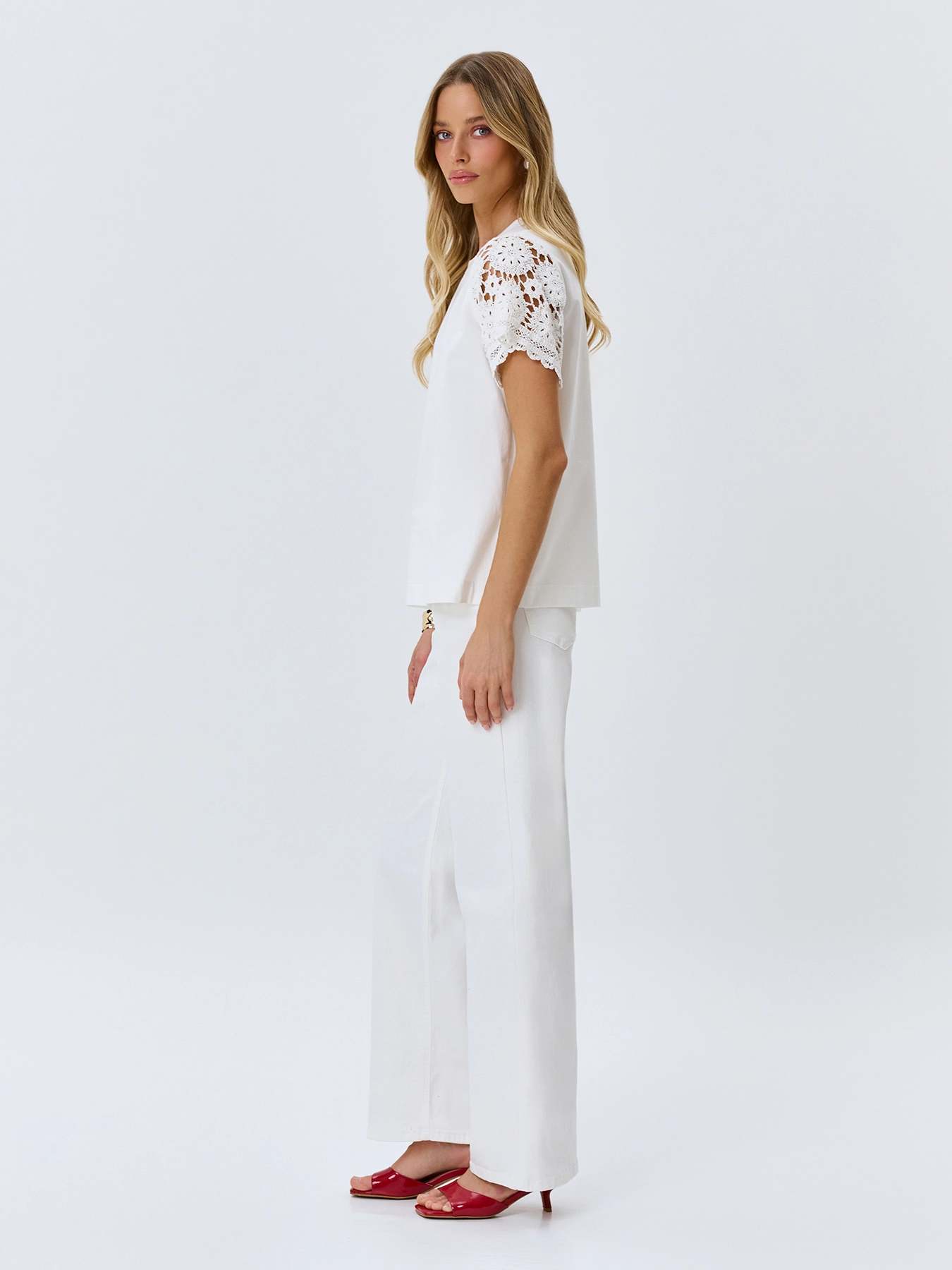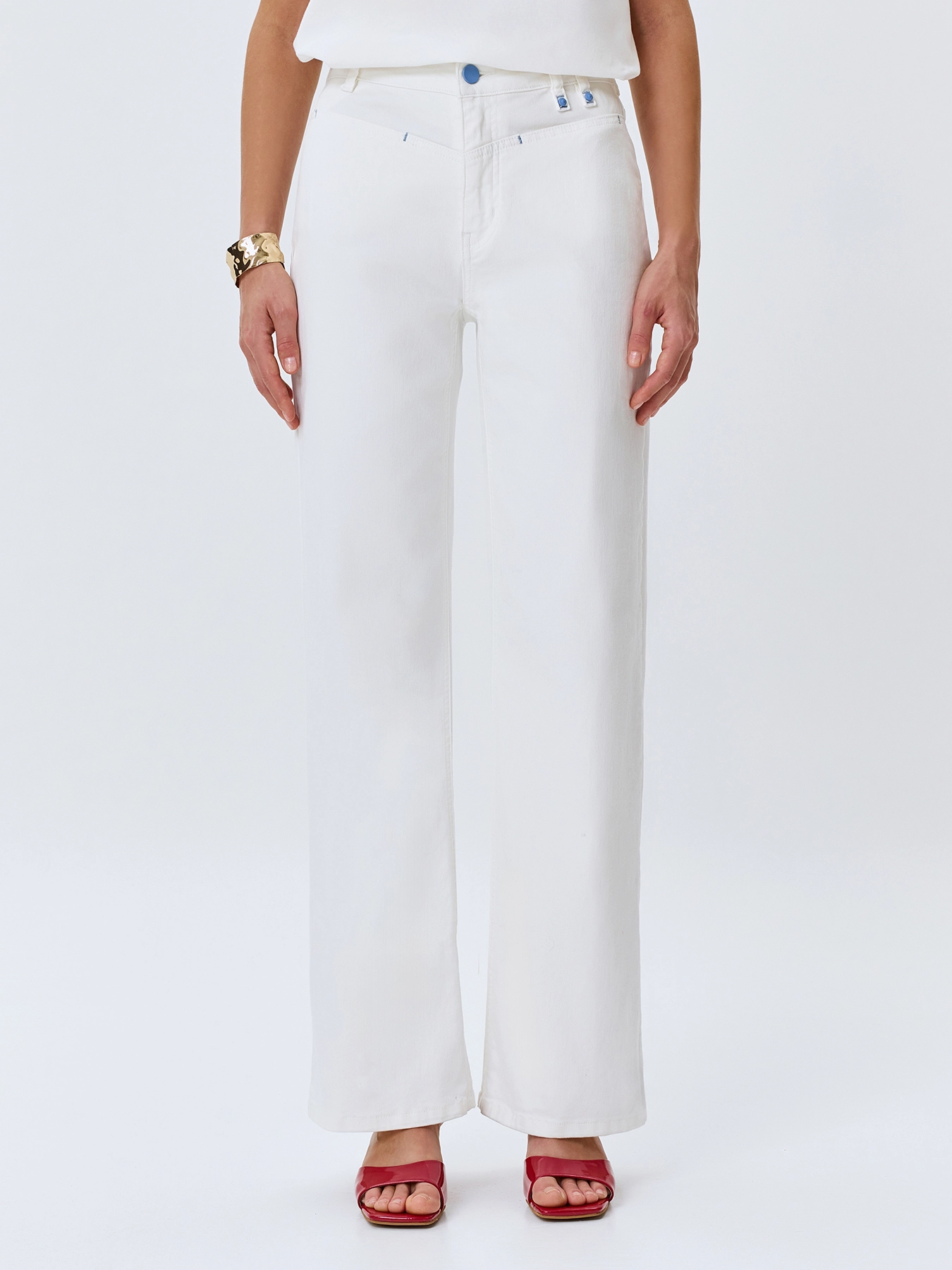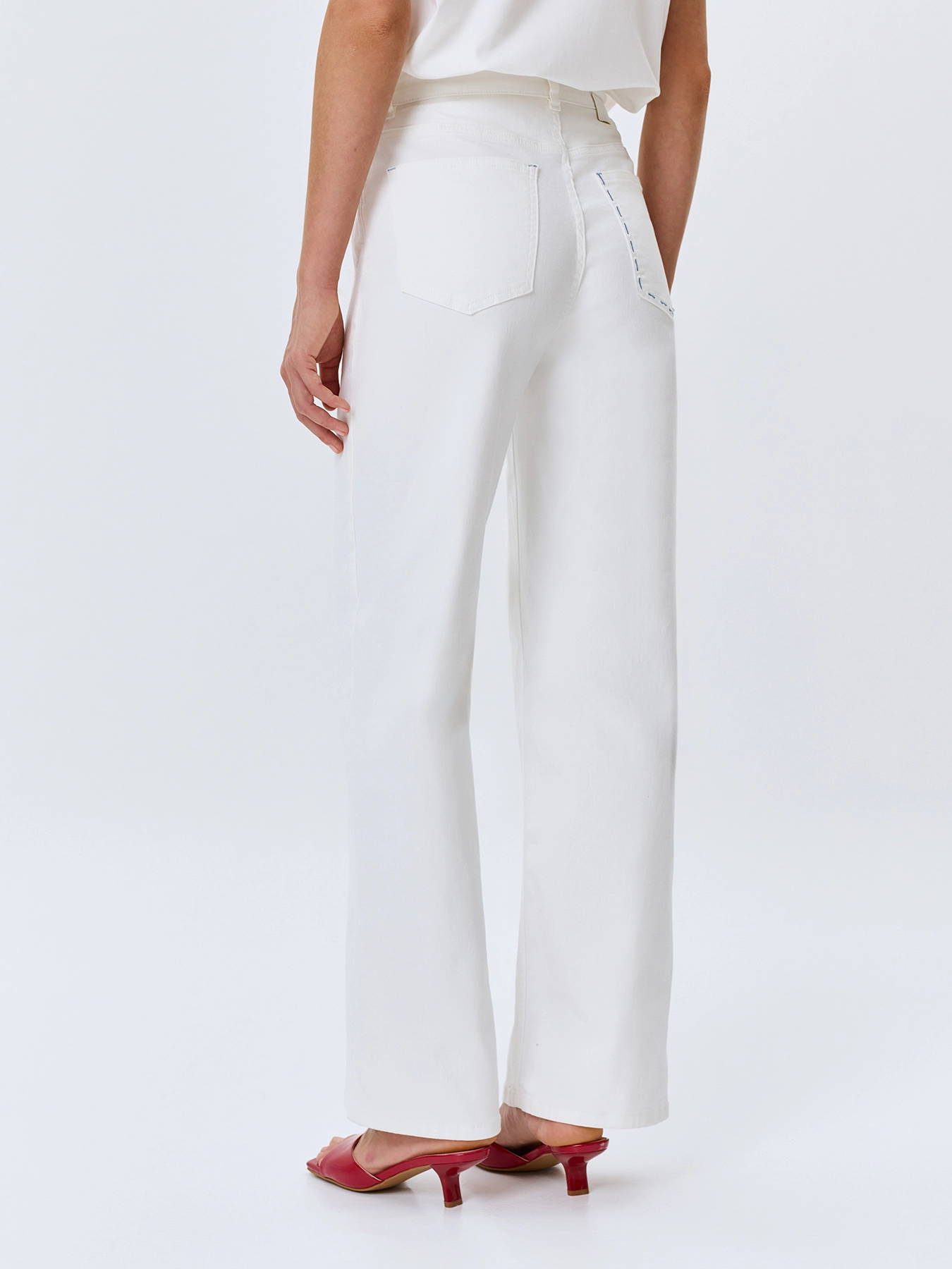 Белые джинсы с вышивкой и цветной фурнитурой