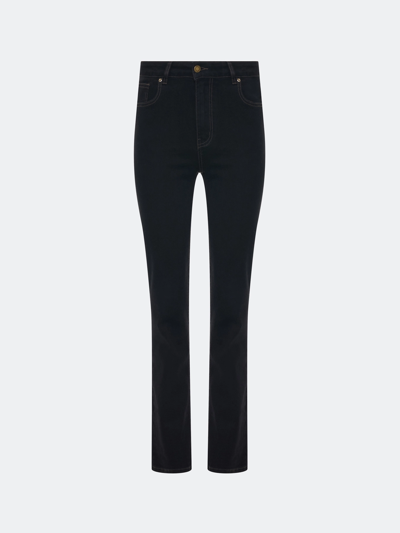 Базовые черные джинсы зауженного силуэта. Средняя посадка. Застежка на молнию и металлические пуговицы. Пять карманов. В составе спандекс.