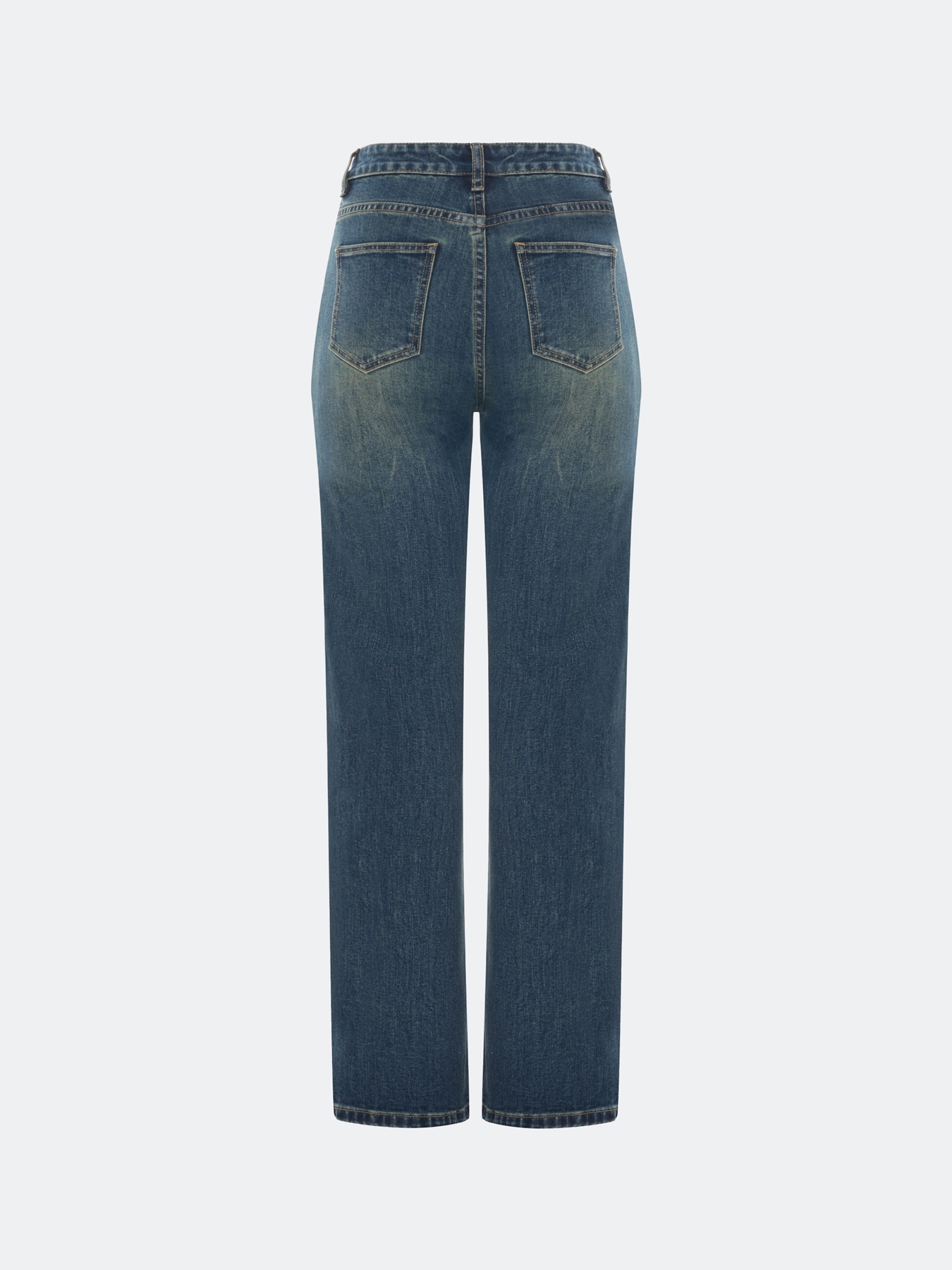 Джинсы с винтажной варкой и застроченными стрелками. Силуэт Bootcut. Застежка на молнию и металлическую пуговицуу. Пять карманов. В составе спандекс.
