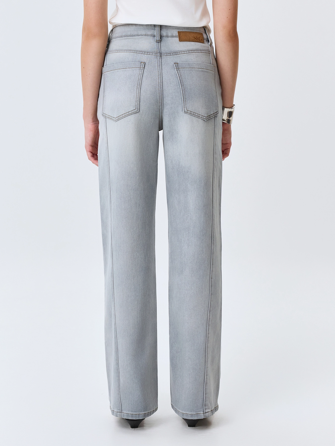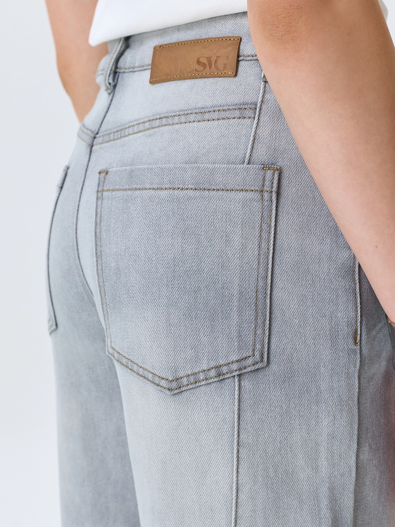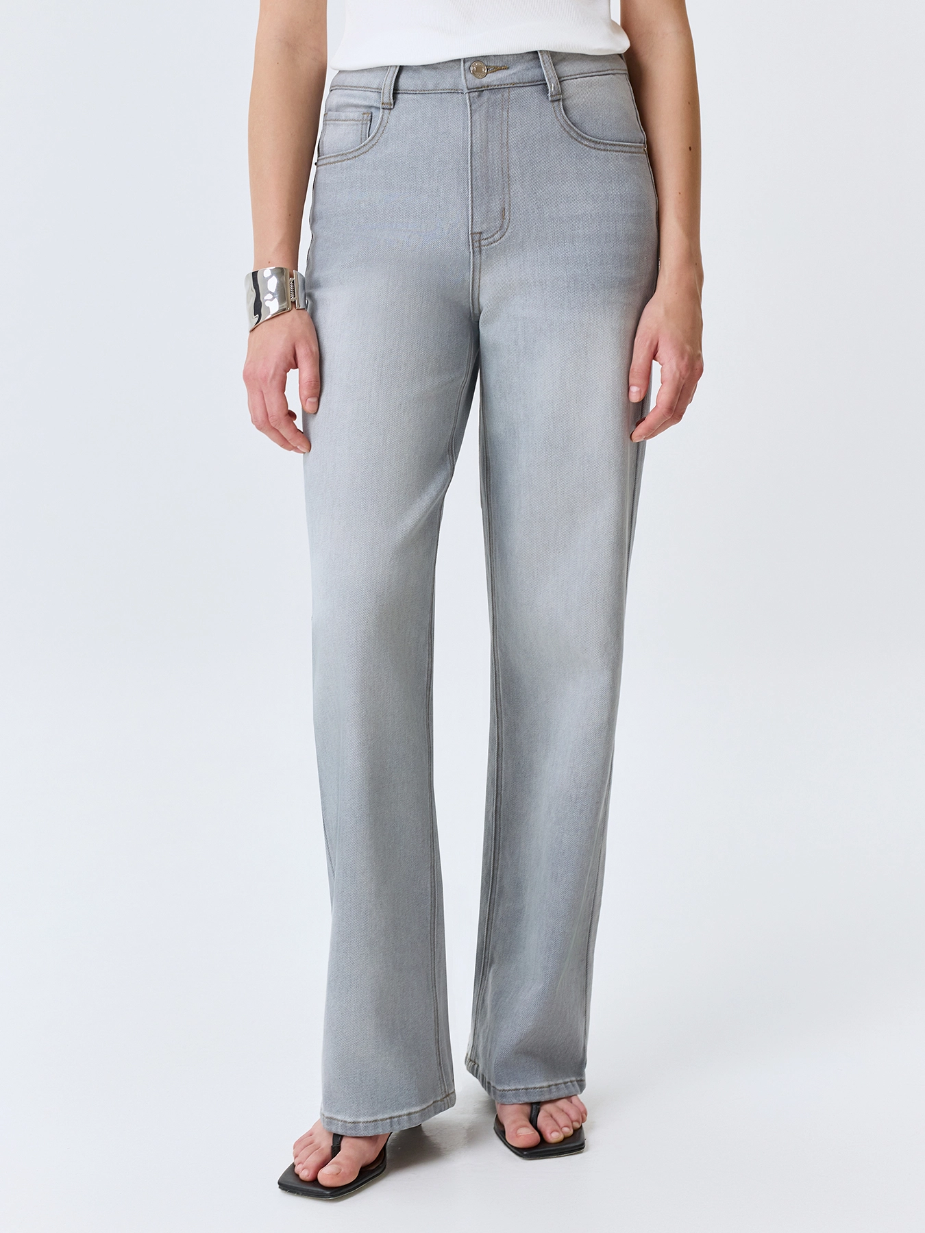 Джинсы прямого силуэта. Застежка на молнию и металлическую пуговицу. Пять карманов. Дополнены деликатной варкой. В составе спандекс.