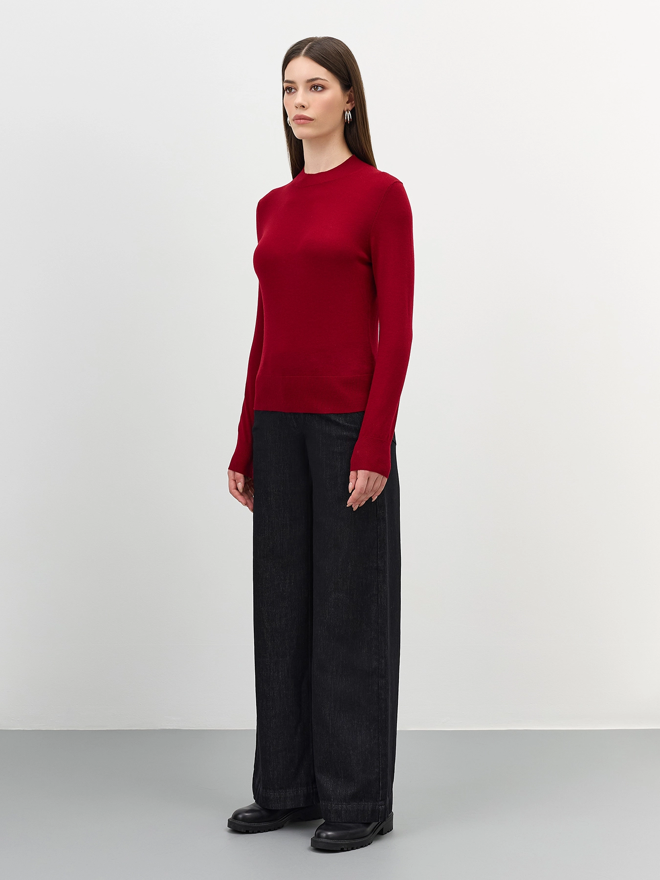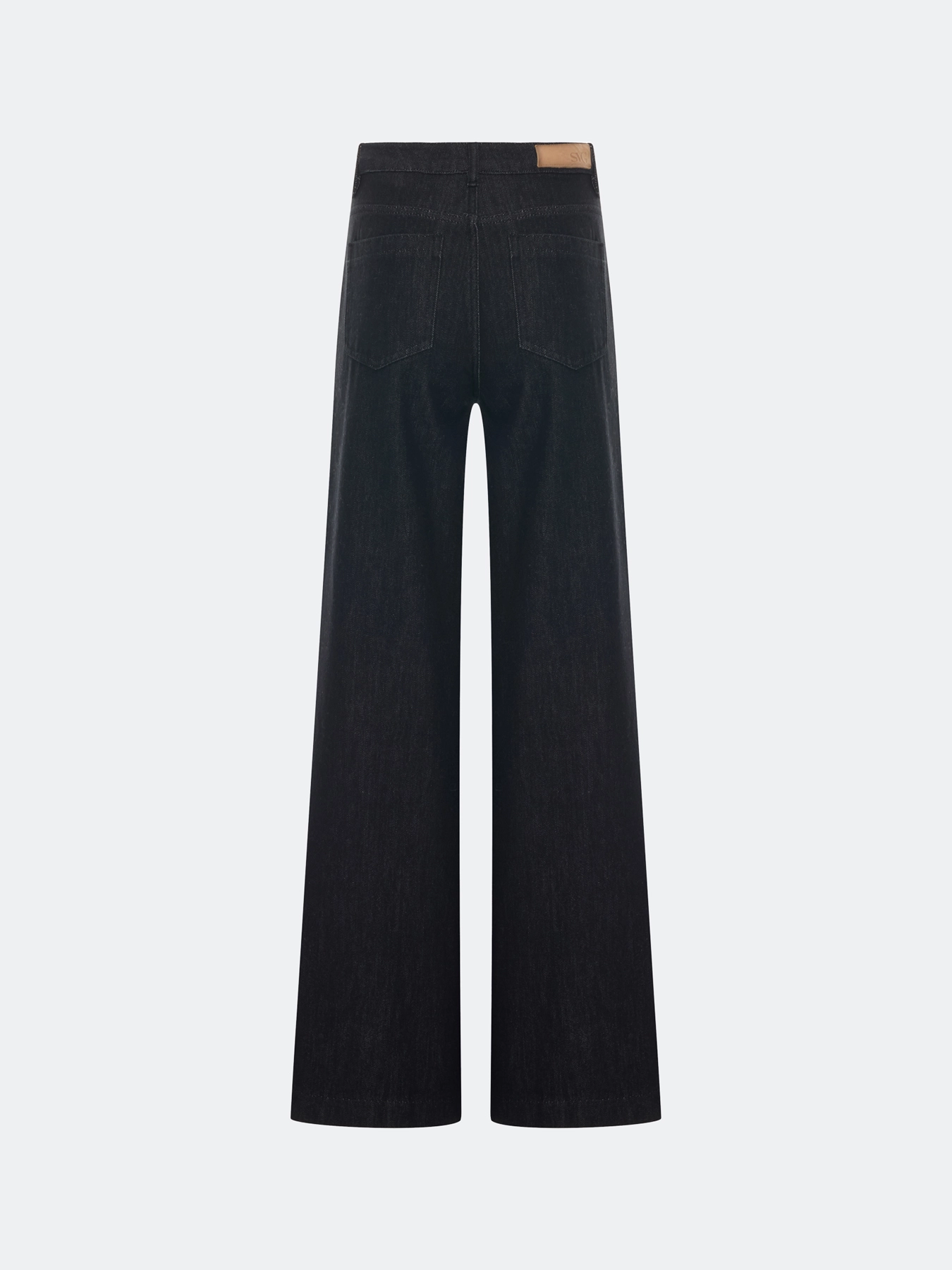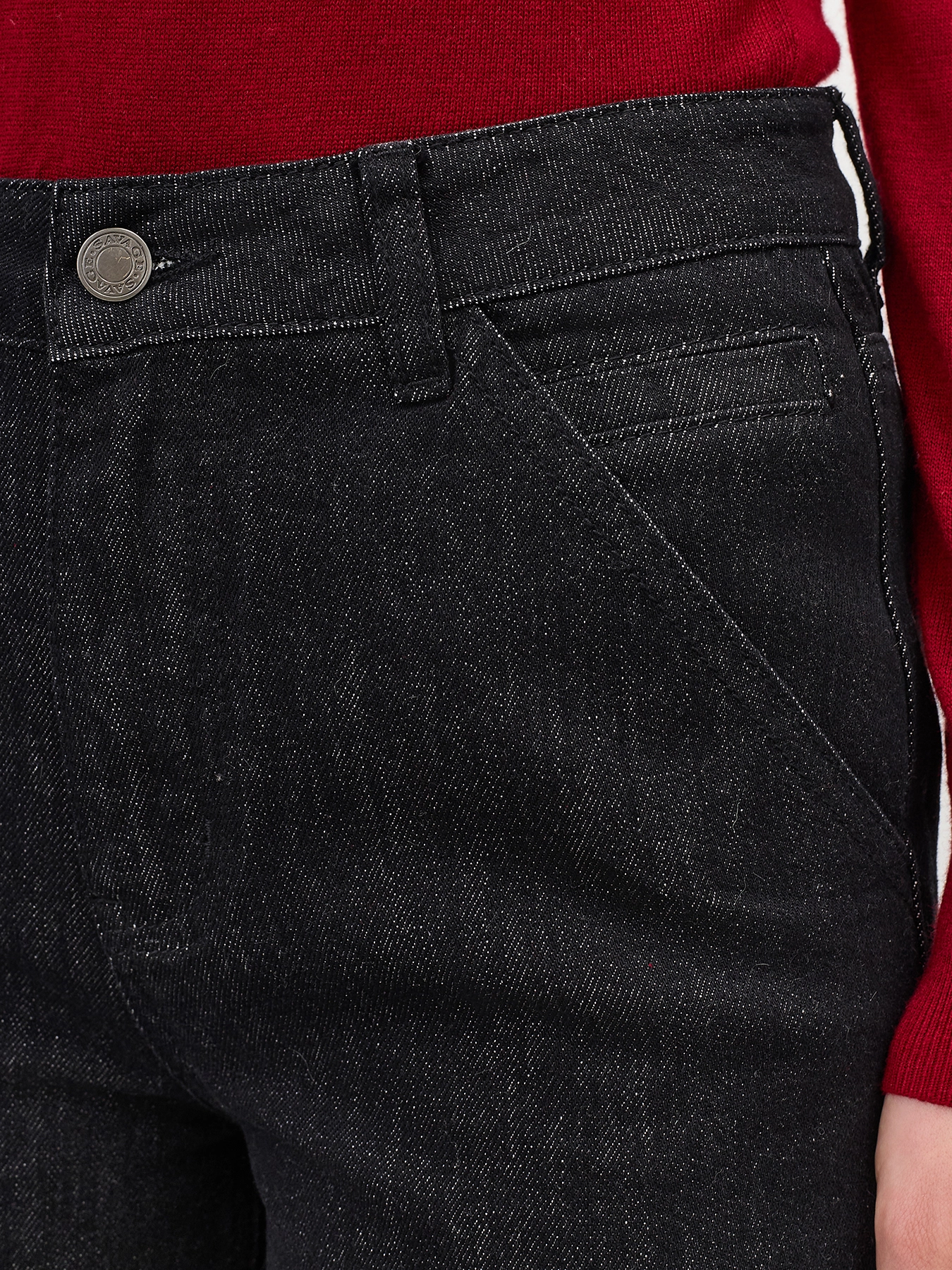 Широкие черные джинсы с деликатной варкой и имитацией потайных карманов. Прямой силуэт. Застежка на молнию и металлическую пуговицуу. Четыре кармана. В составе хлопок.