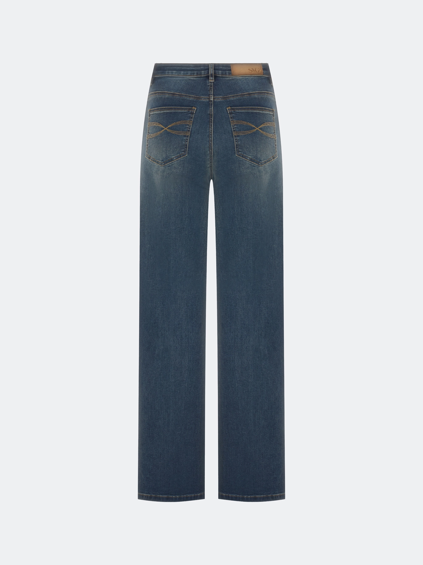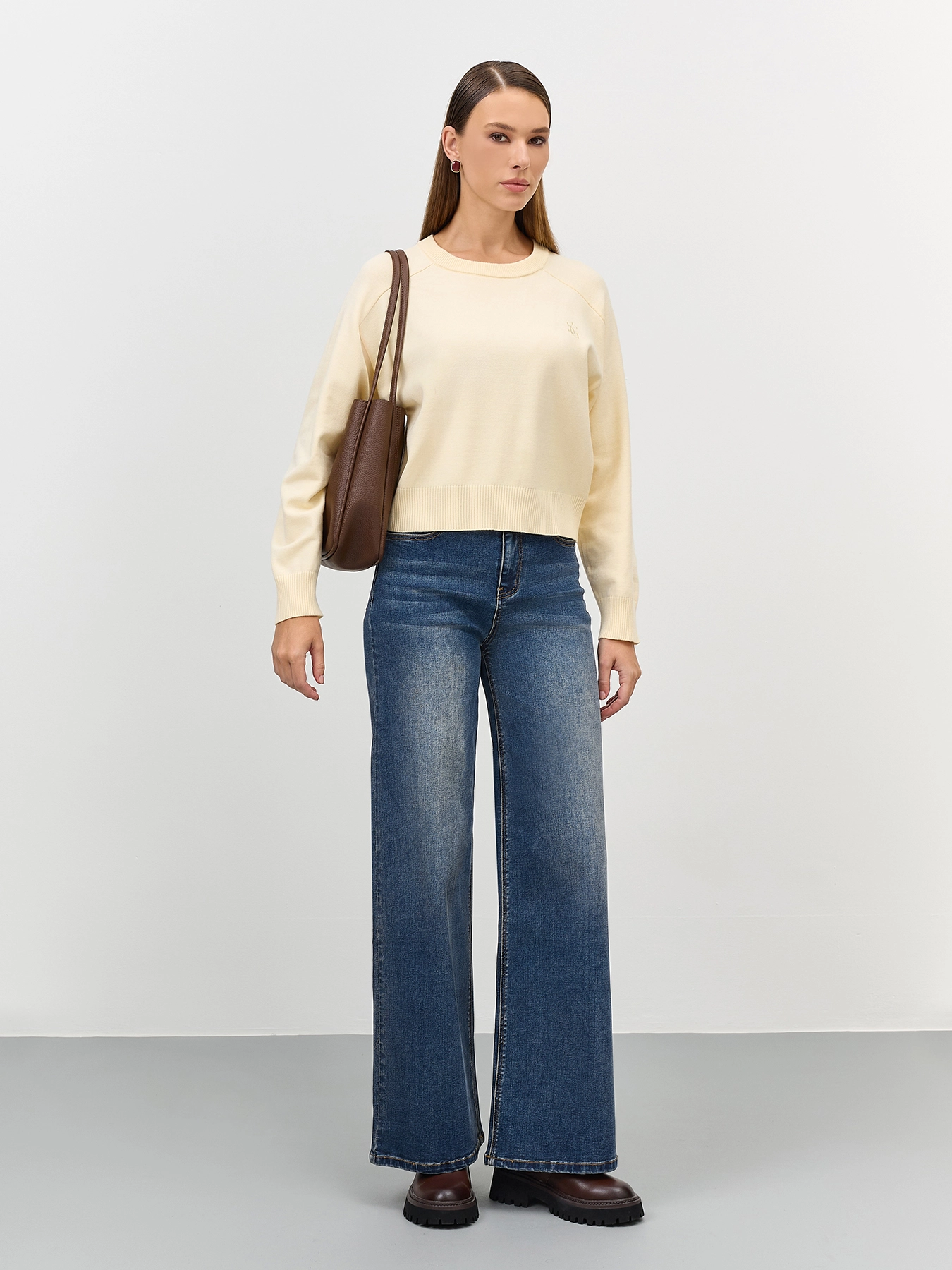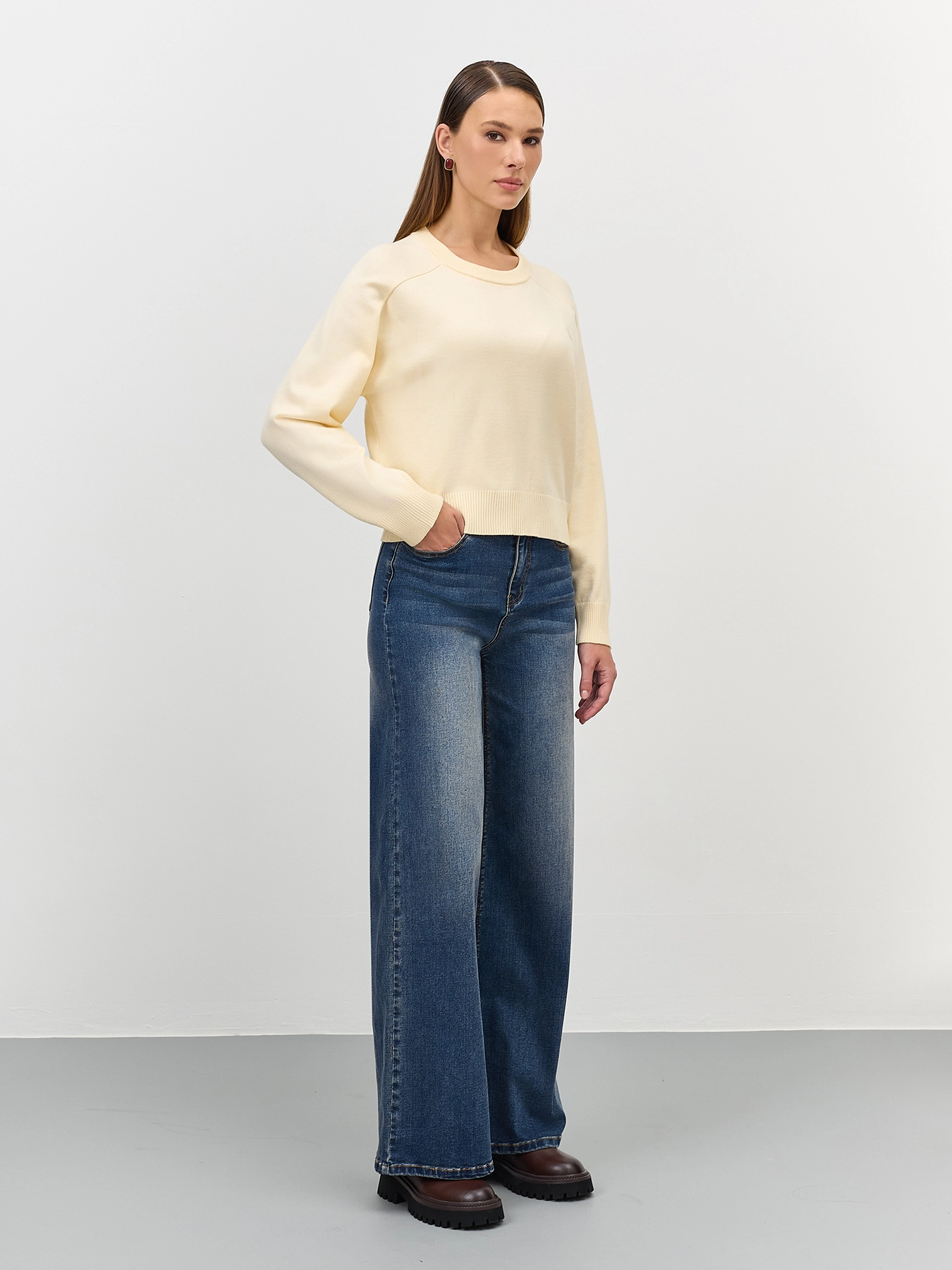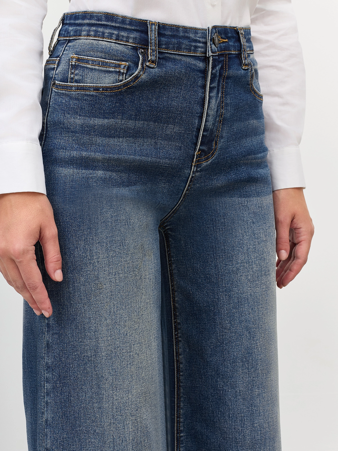 Широкие джинсы из эластичного денима с деликатной варкой. Свободный силуэт. Застежка на молнию и металлическую пуговицу. Пять карманов. В составе спандекс.