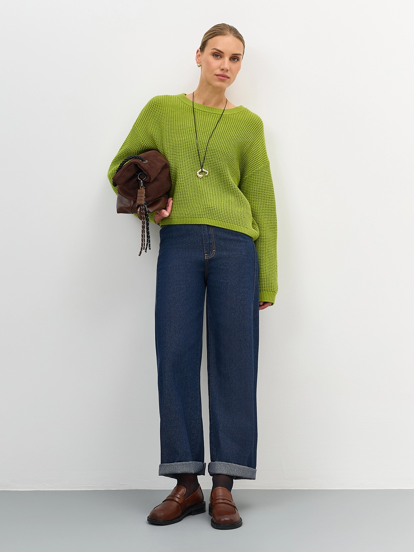 Широкие джинсы с узким поясом
