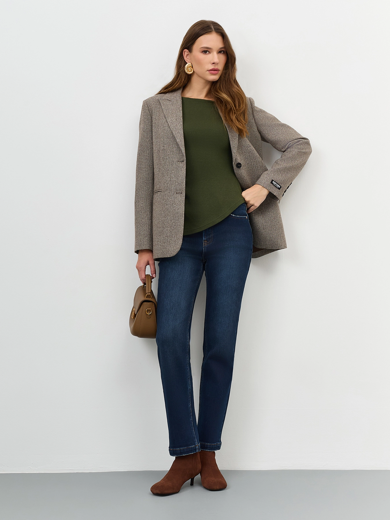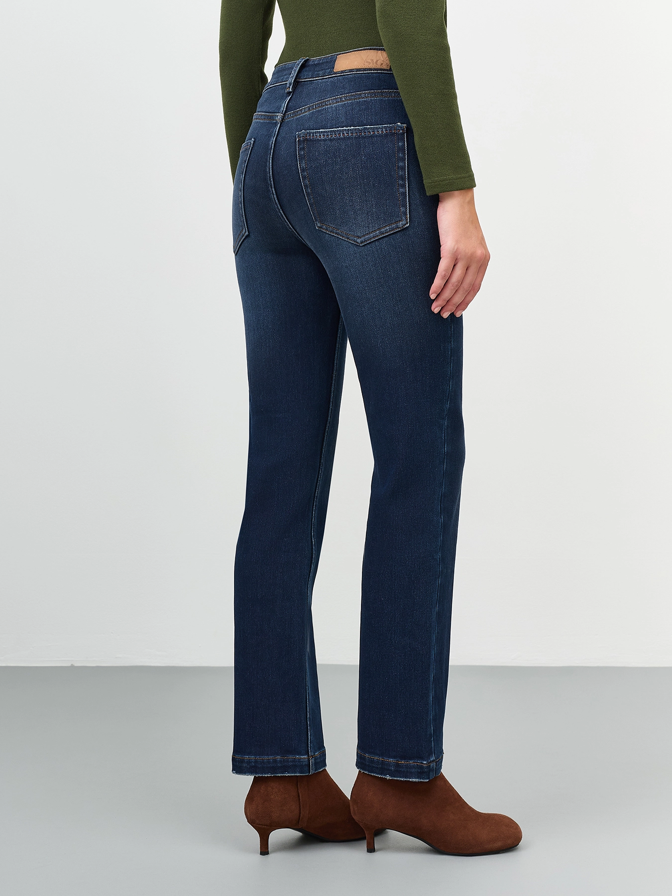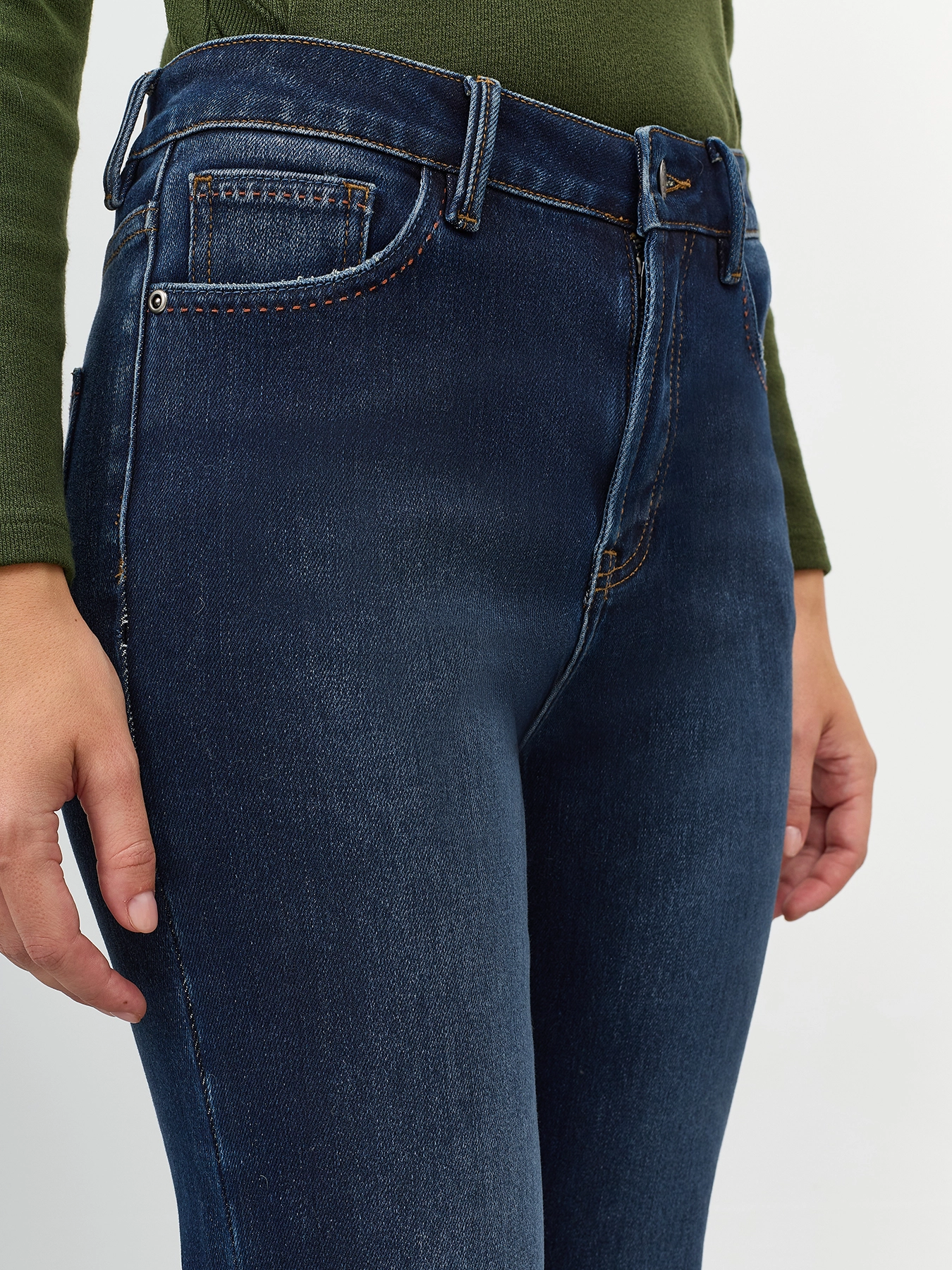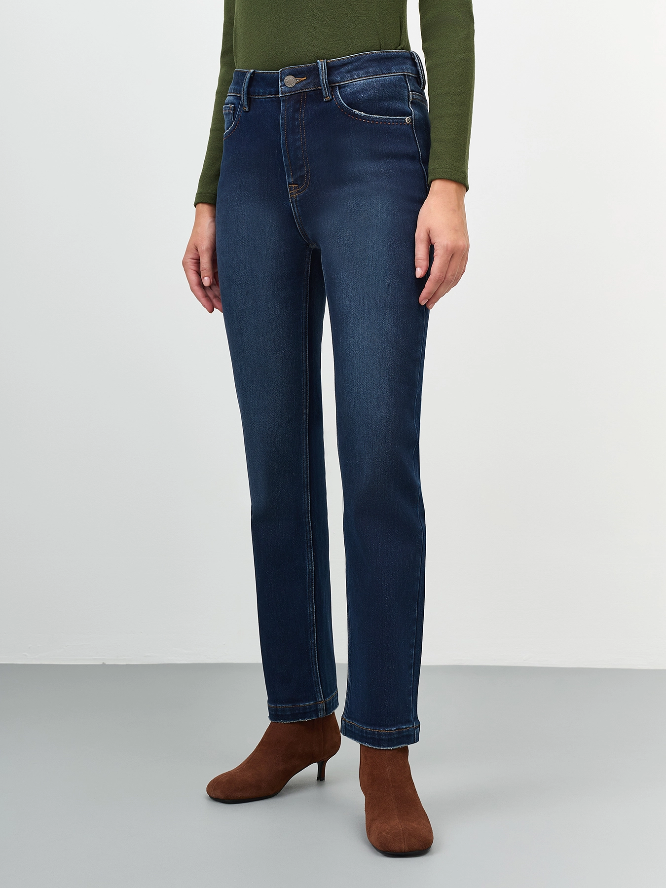 Утепленные джинсы с деликатной варкой. Прямой, слегка зауженный силуэт. Застежка на молнию и металлическую пуговицуу. Пять карманов. В составе спандекс.
